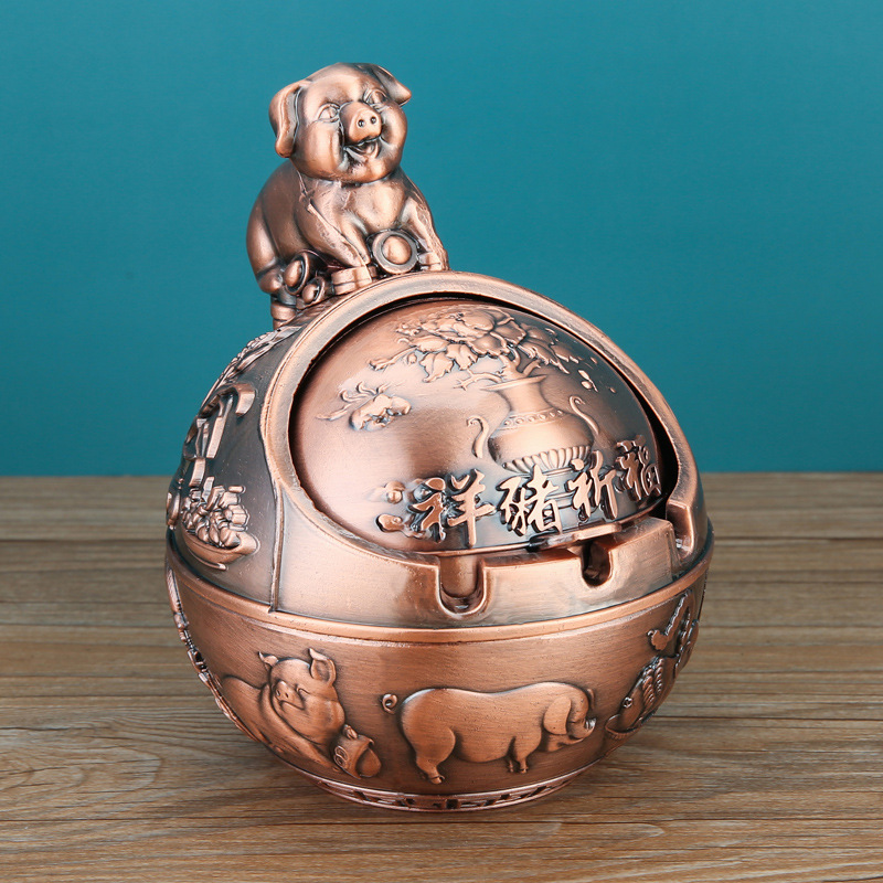 十二生肖烟灰缸创意个性潮流办公室家用客厅防飞灰带盖防摔摆件