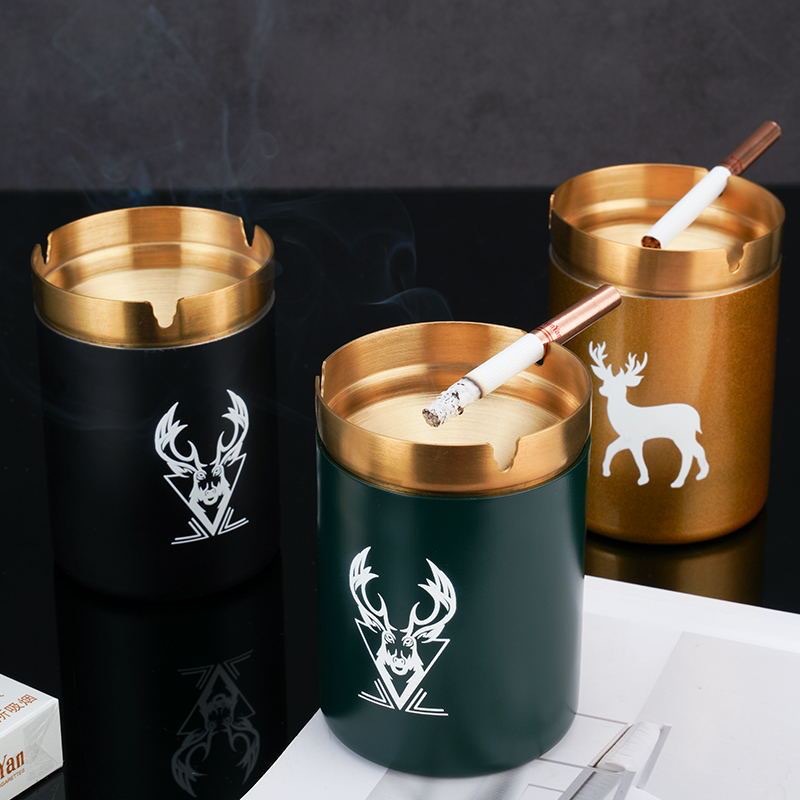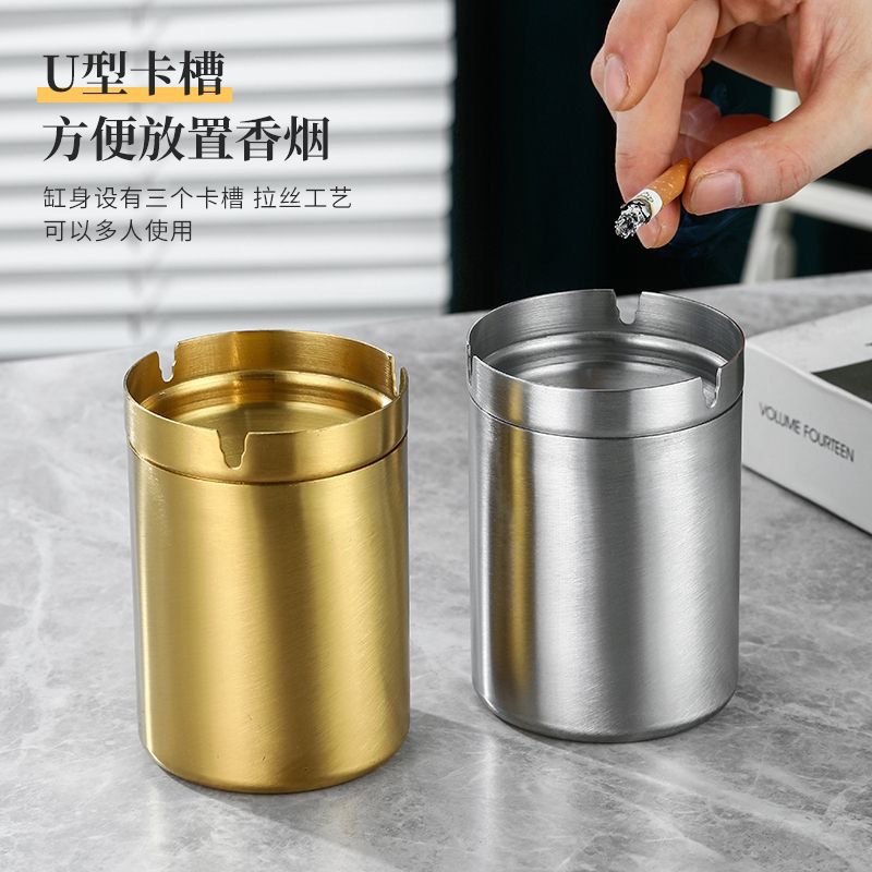 不锈钢烟灰缸家用轻奢带盖时尚创意防风飞烟缸桌球台球室车载