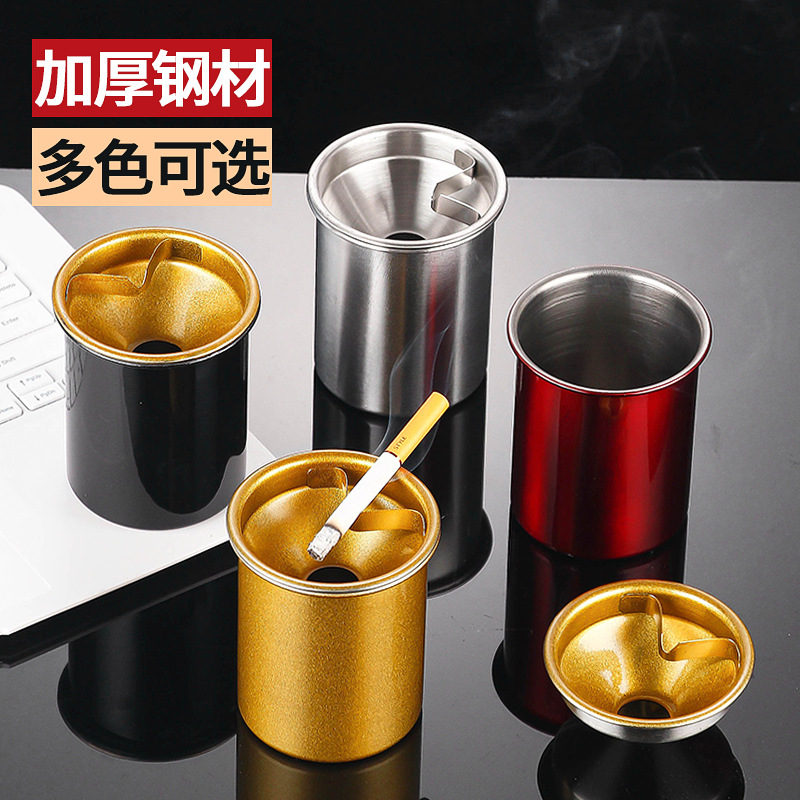 不锈钢烟灰缸防飞灰高颜值家用带盖防摔网咖酒吧车载创意烟缸
