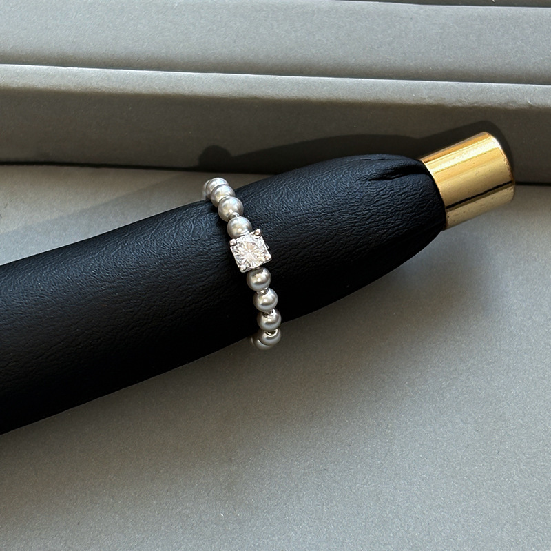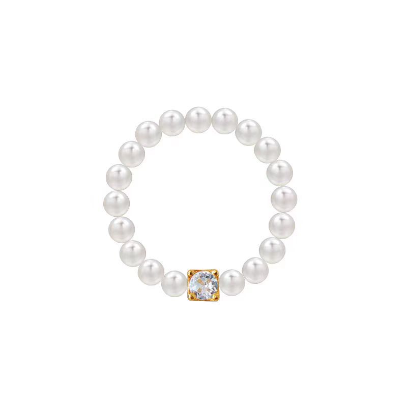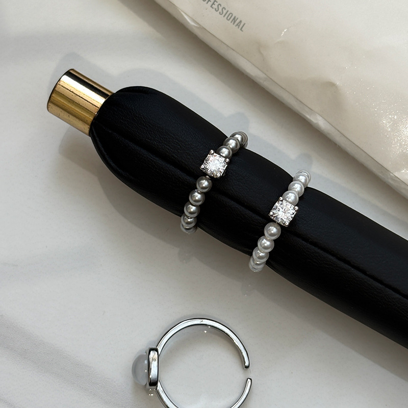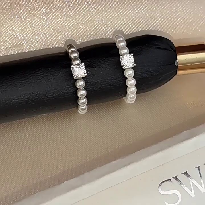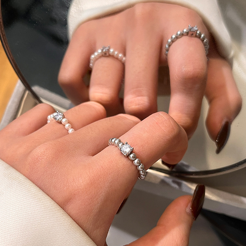 戒指饰品小众设计轻奢高级感气质S家极光火彩锆石弹力珍珠戒指女