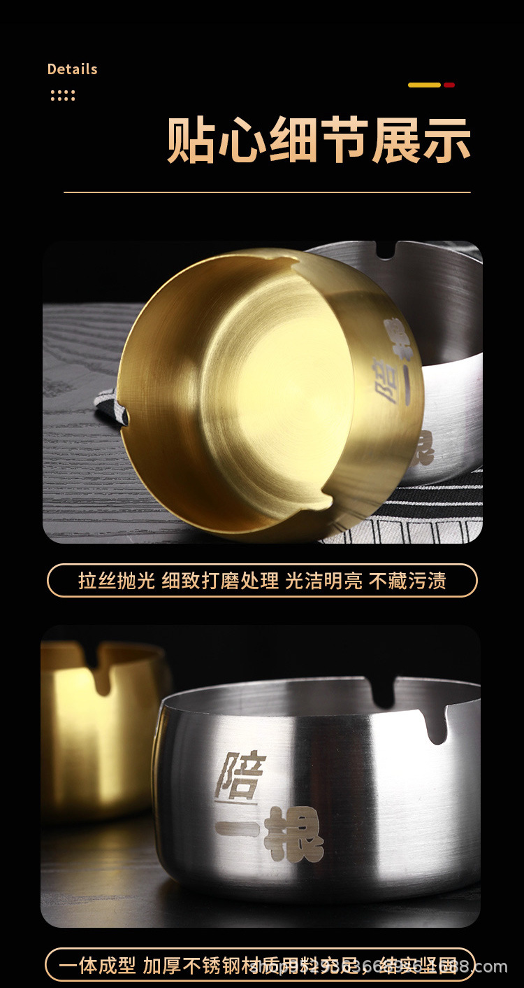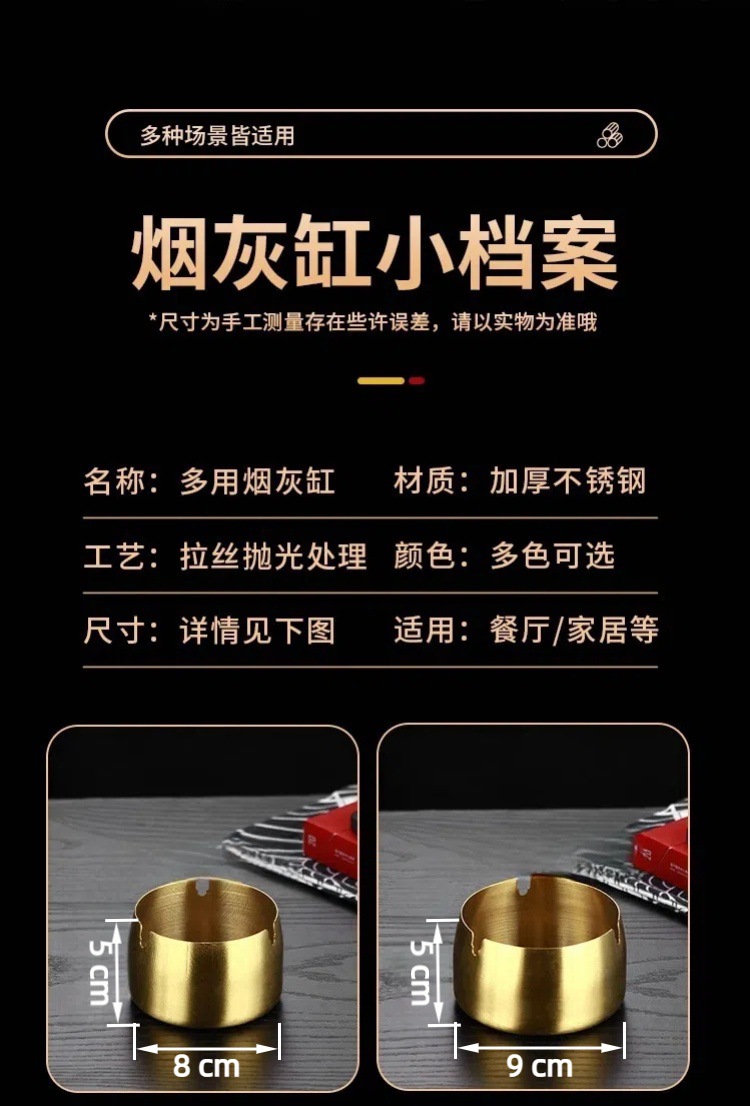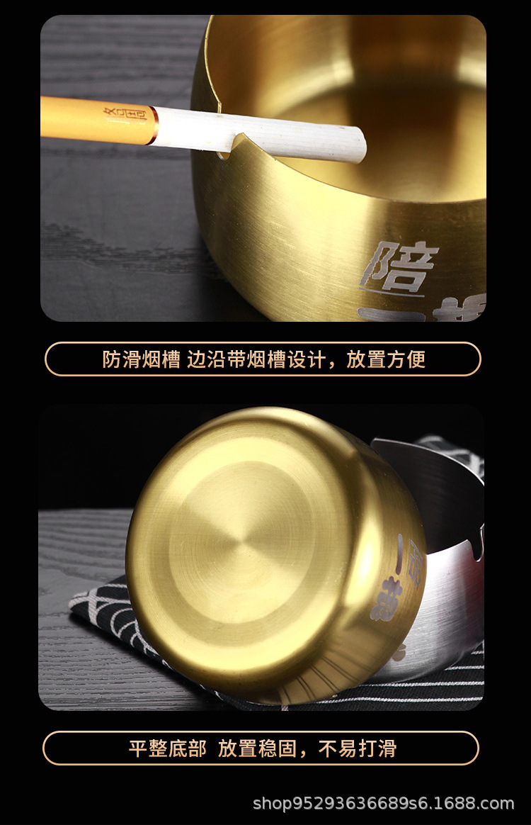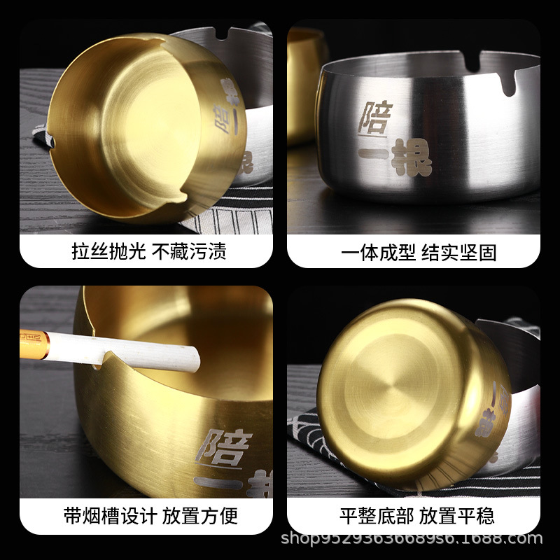 厂家直销不锈钢烟灰缸家居防风批发创意酒店家用金色礼品广告