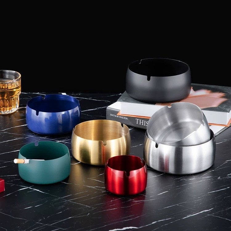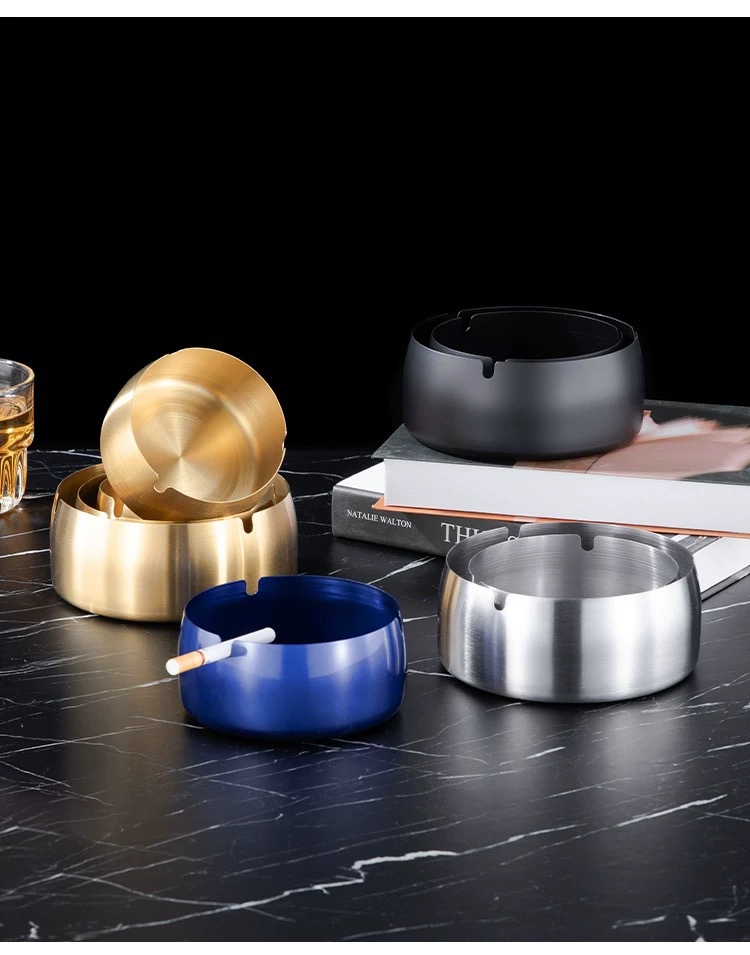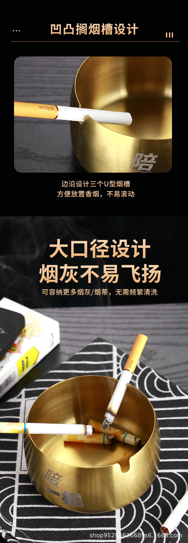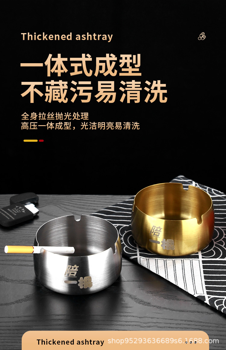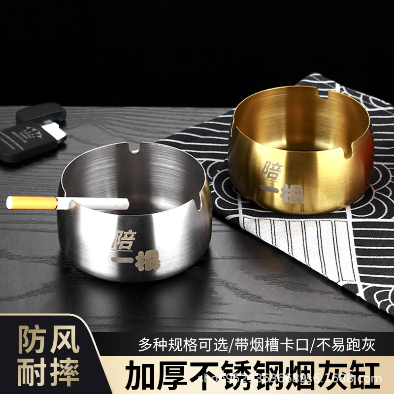 厂家直销不锈钢烟灰缸家居防风批发创意酒店家用金色礼品广告