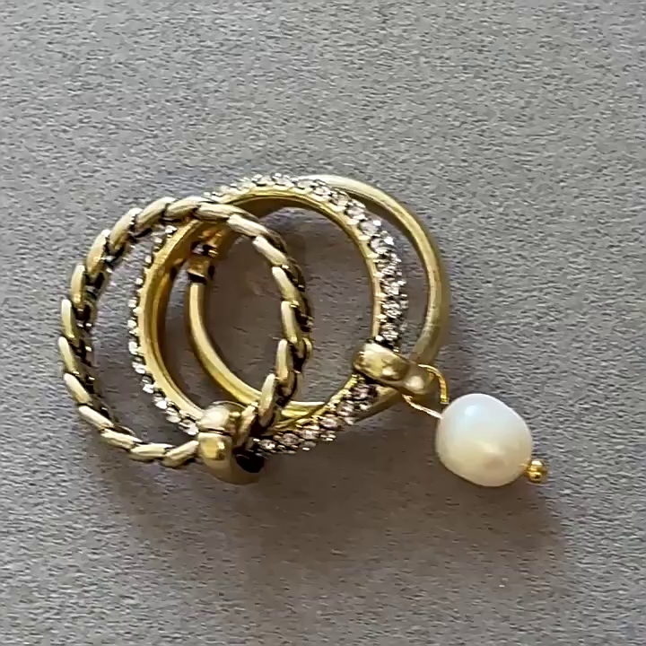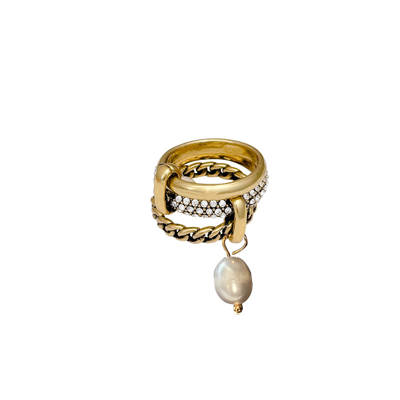 戒指小众设计轻奢时尚个性金色食指指环复古多层巴洛克珍珠戒指女