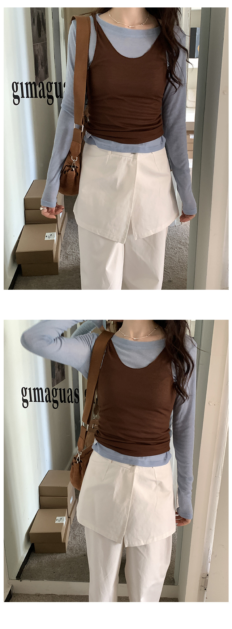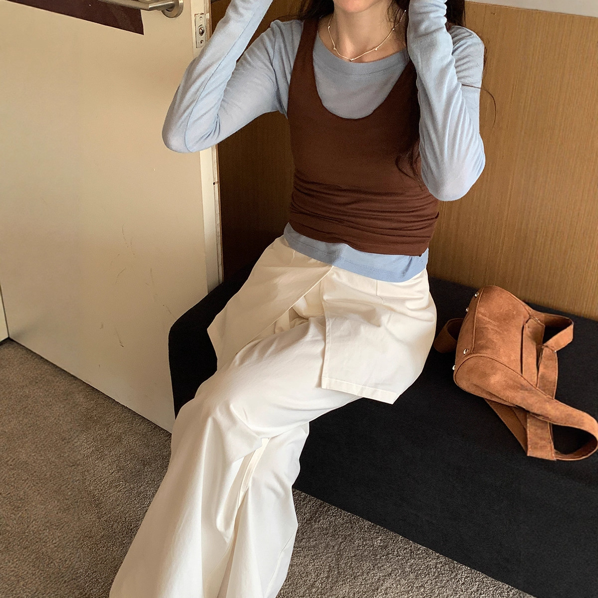 韩国东大门早秋款修身显瘦撞色背心长袖t恤上衣百搭叠穿真两件