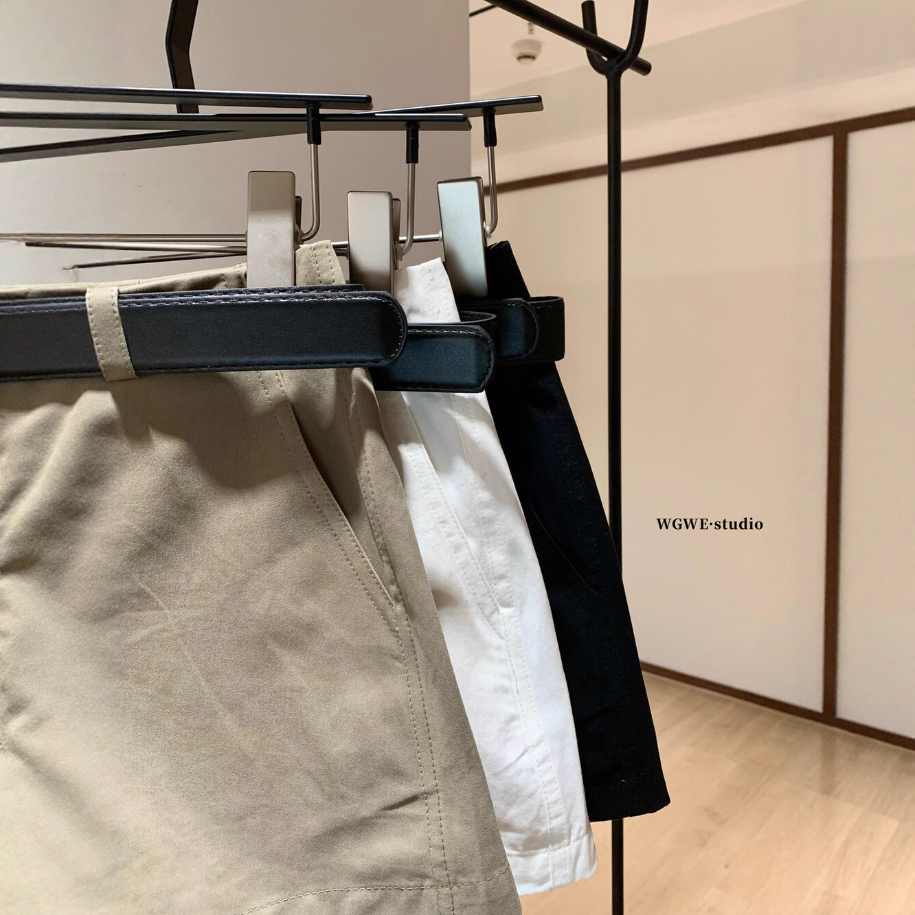 WGWE早秋新款时髦百搭宽松显瘦高腰直筒阔腿休闲短裤W6585配皮带
