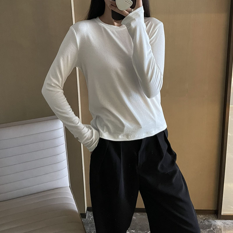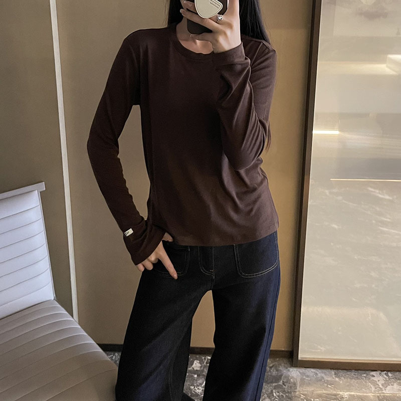 egg羊毛天丝打底衫2025新款秋冬百搭圆领柔软垂感醋酸长袖上衣女