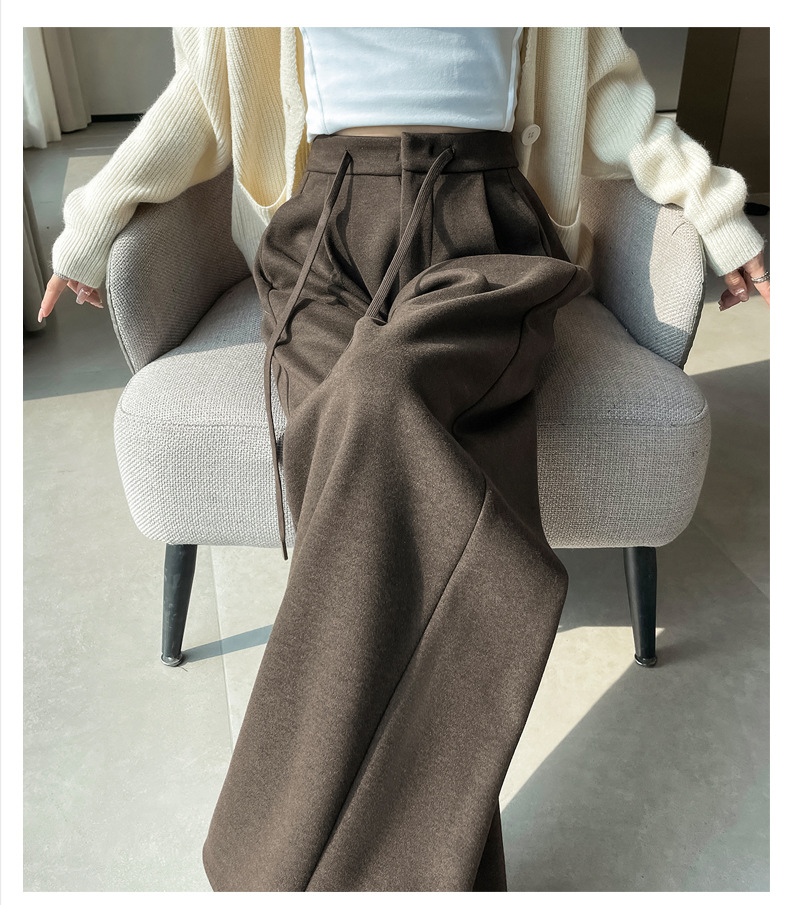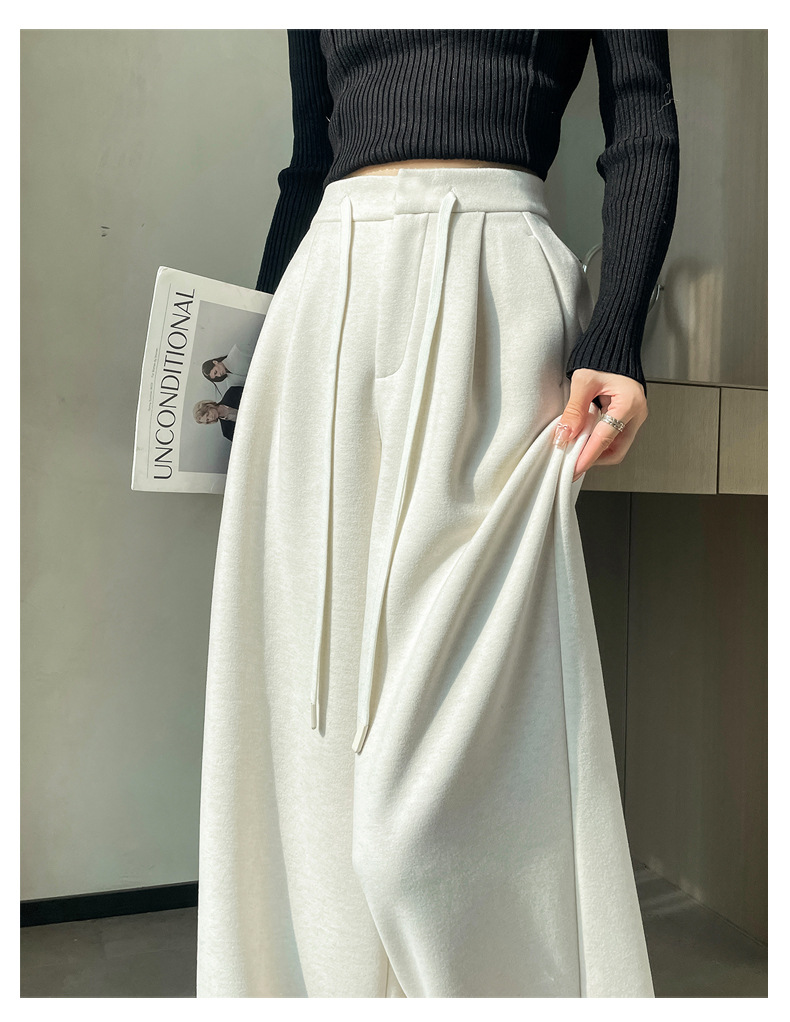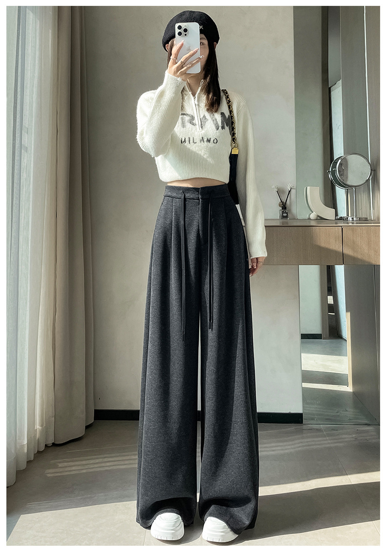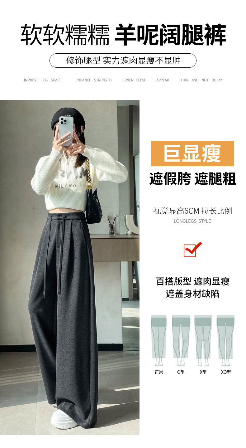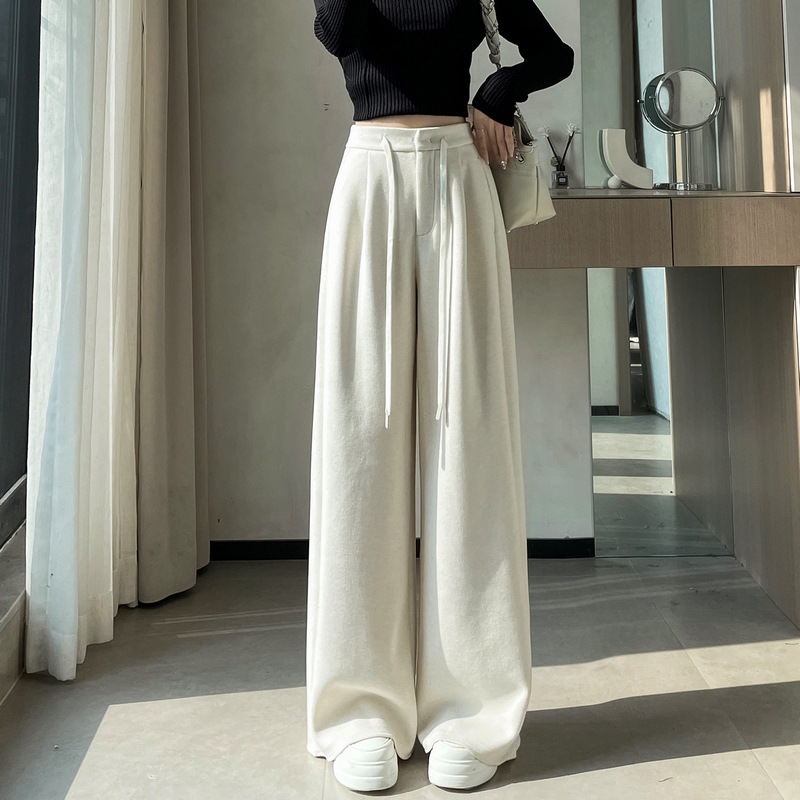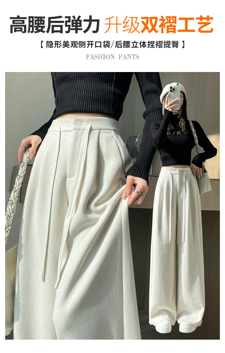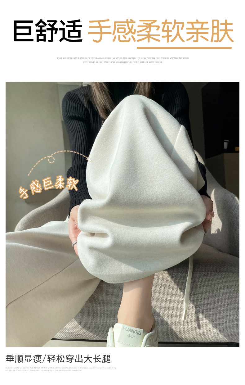 糯米羊绒阔腿裤女2025秋冬加绒加厚高腰垂坠感慵懒显高糯米休闲裤