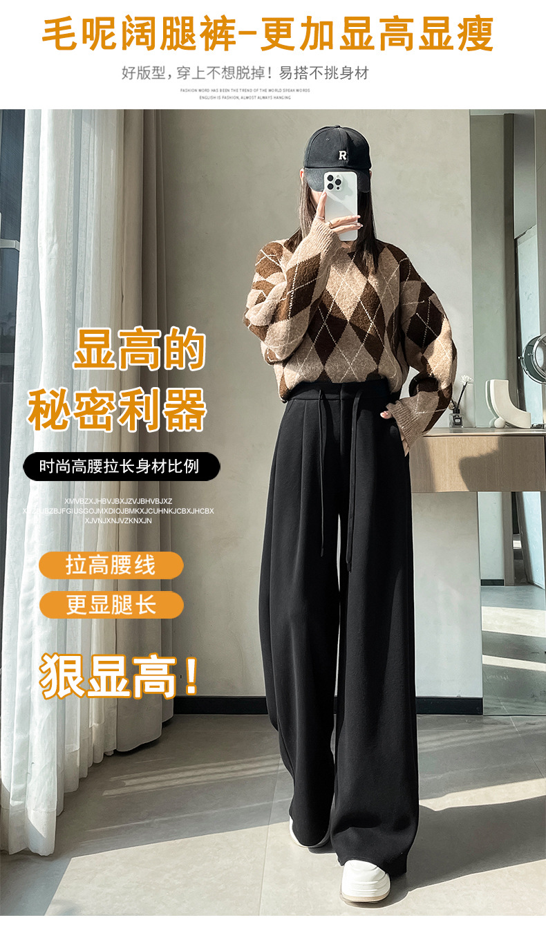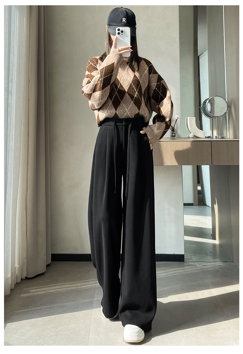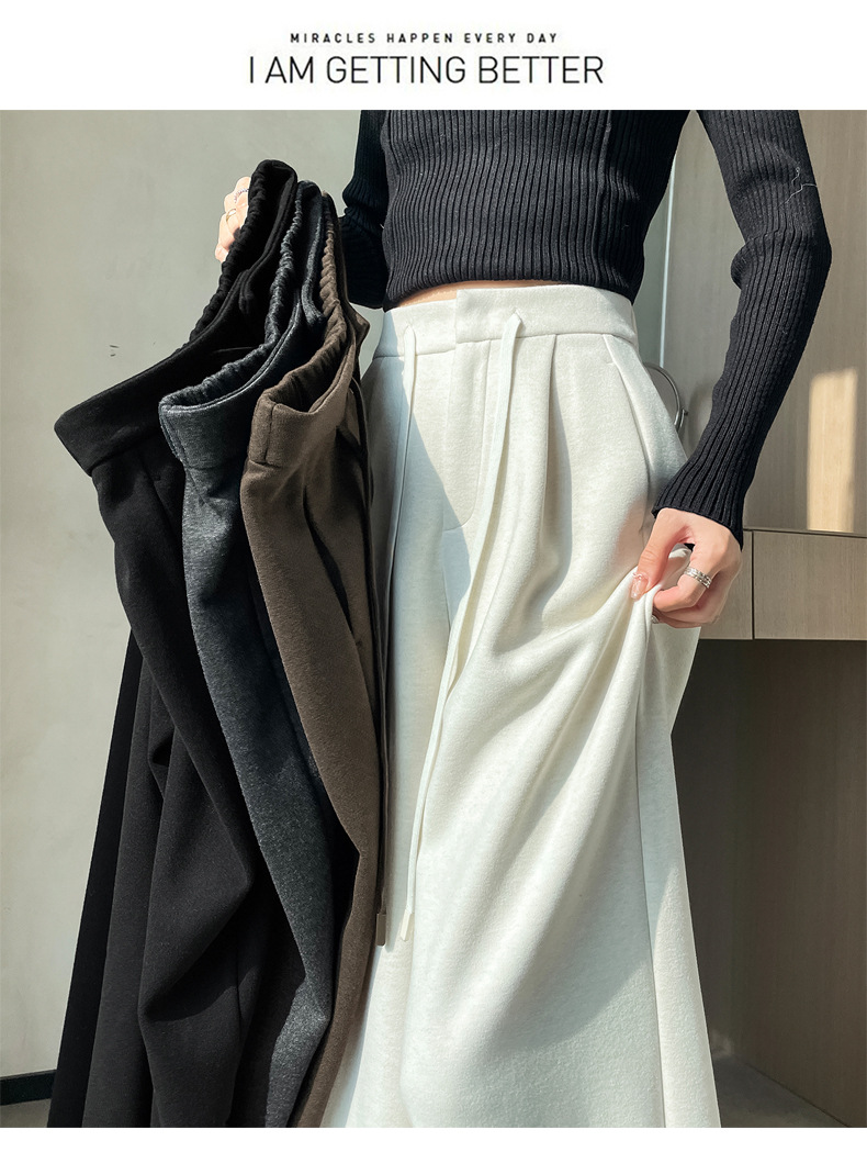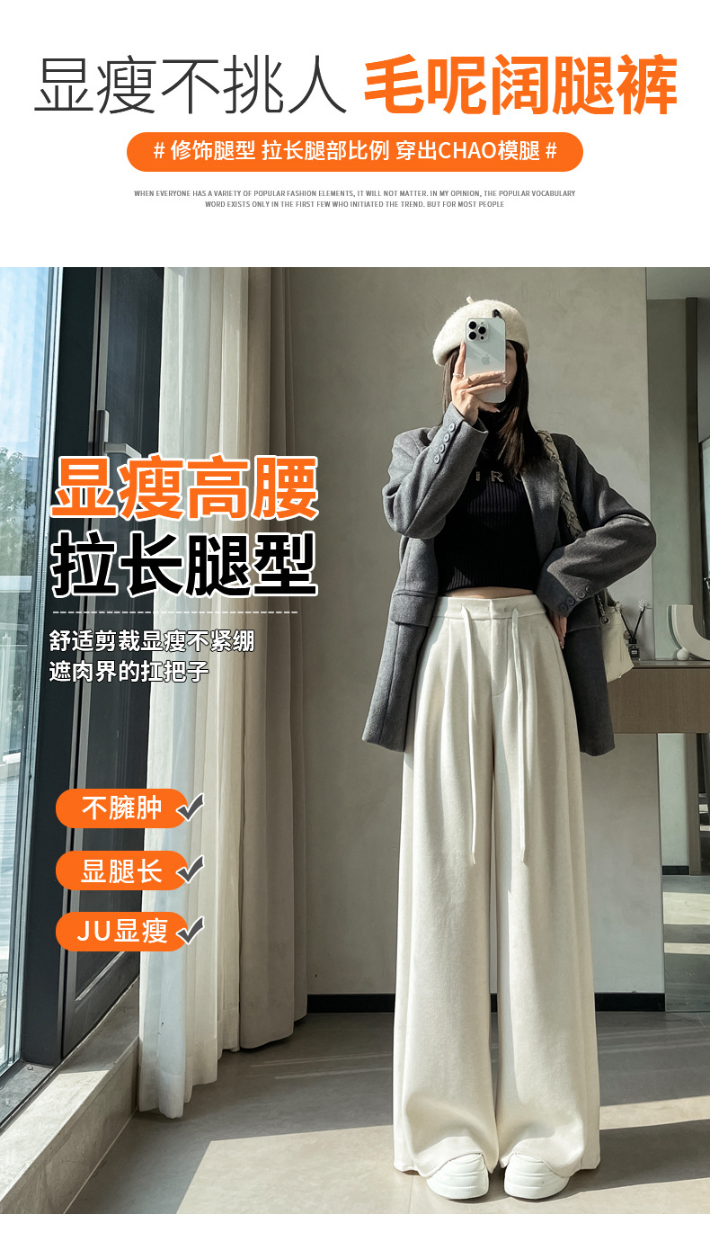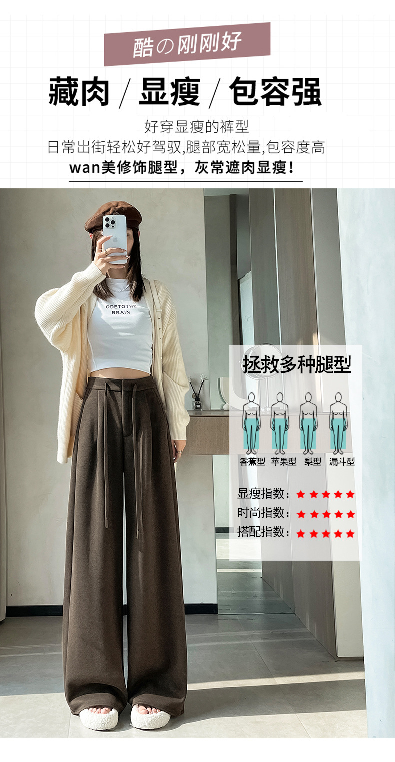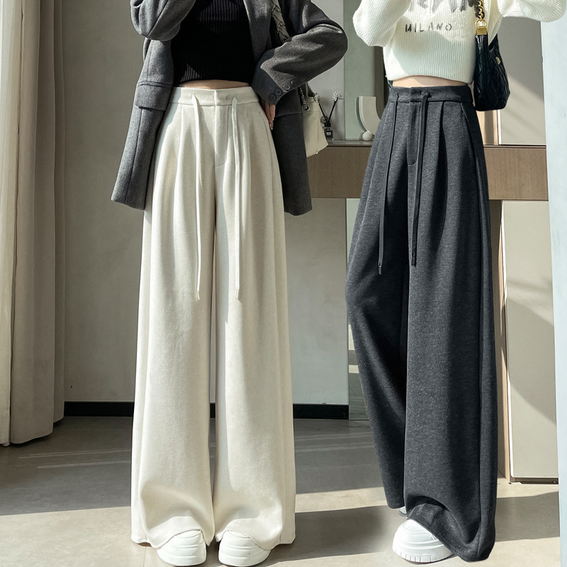 糯米羊绒阔腿裤女2025秋冬加绒加厚高腰垂坠感慵懒显高糯米休闲裤