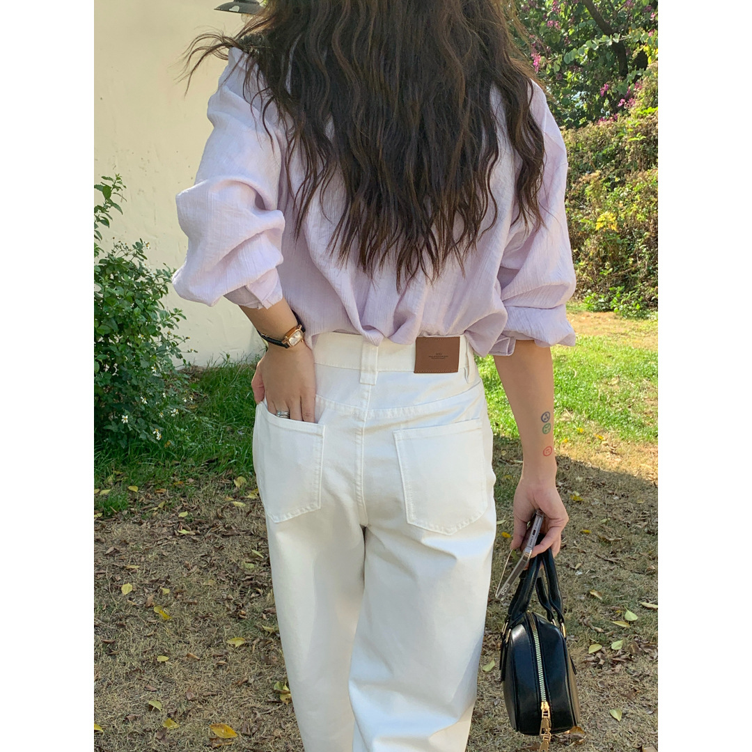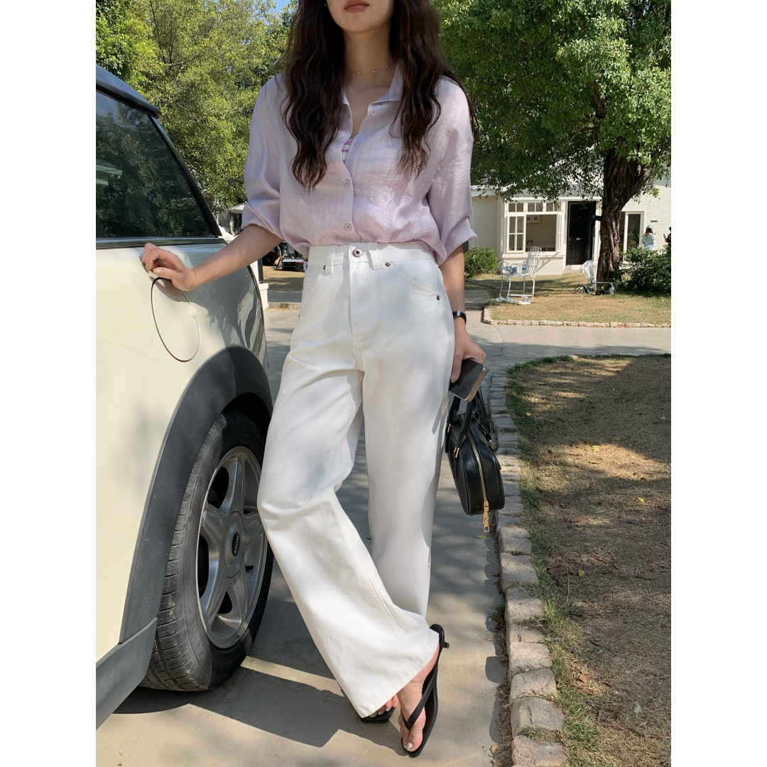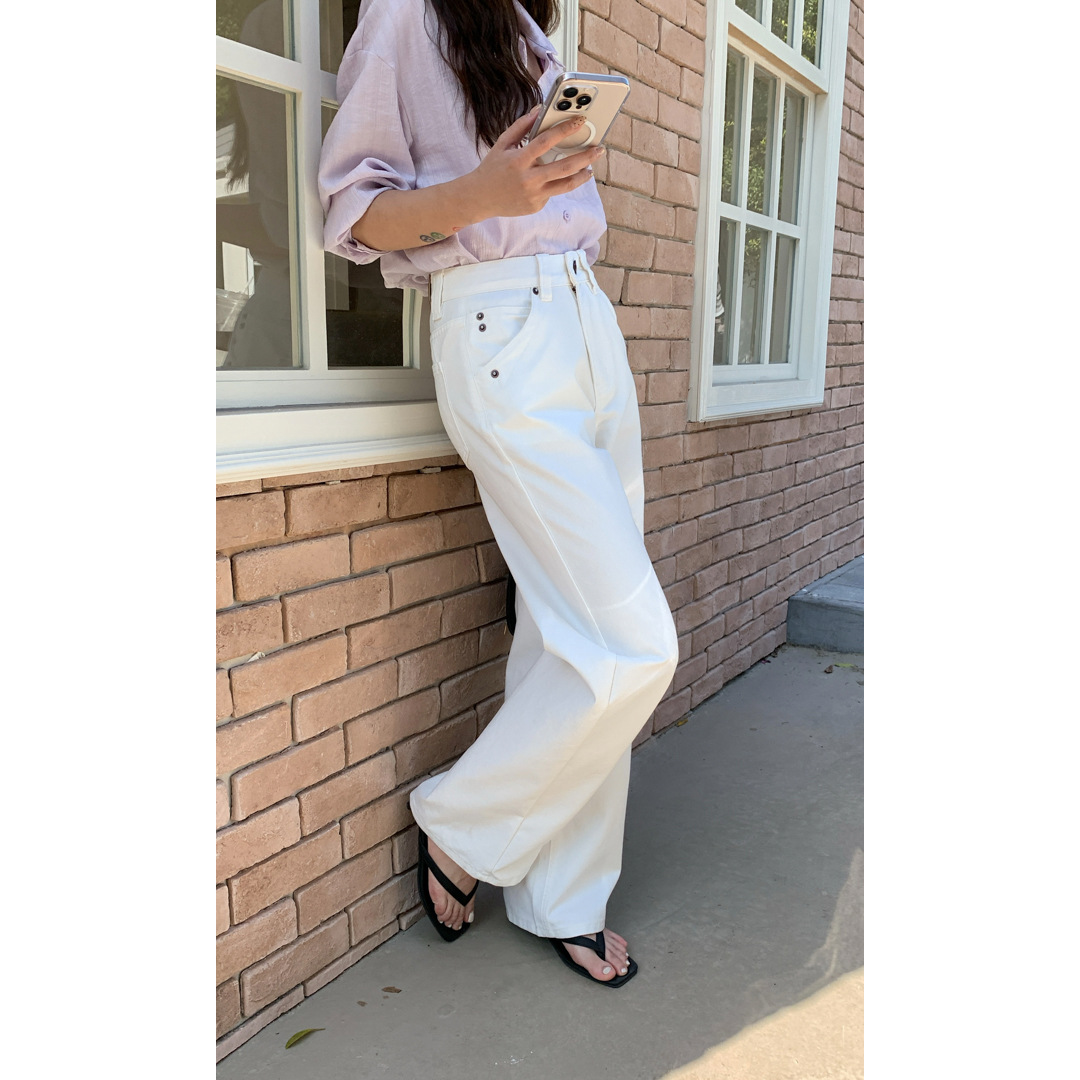 衣天堂 白色直筒牛仔裤女 四季基础简约高腰宽松显瘦百搭直筒长裤