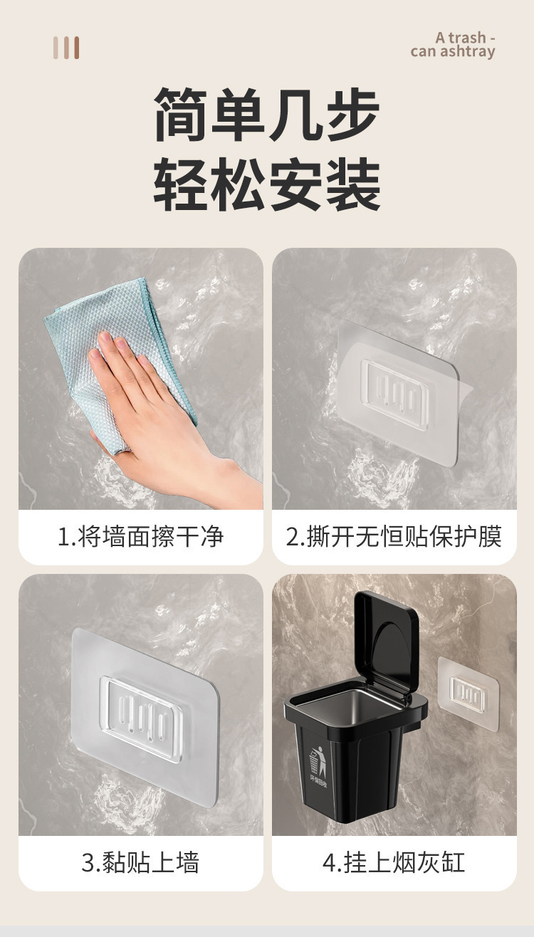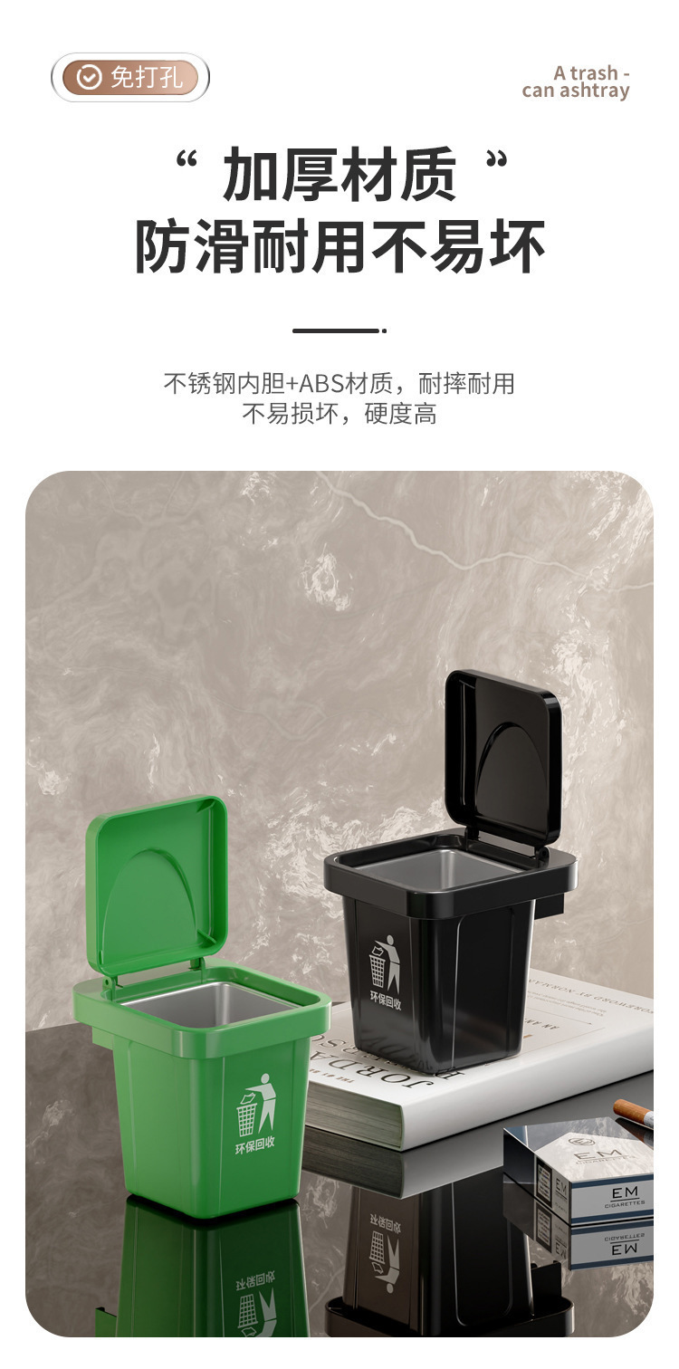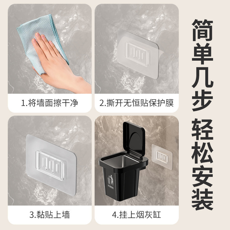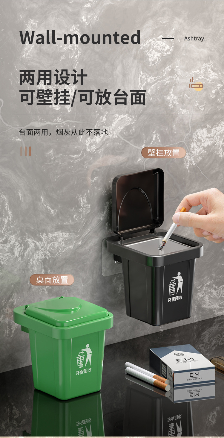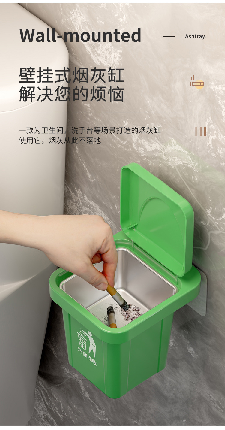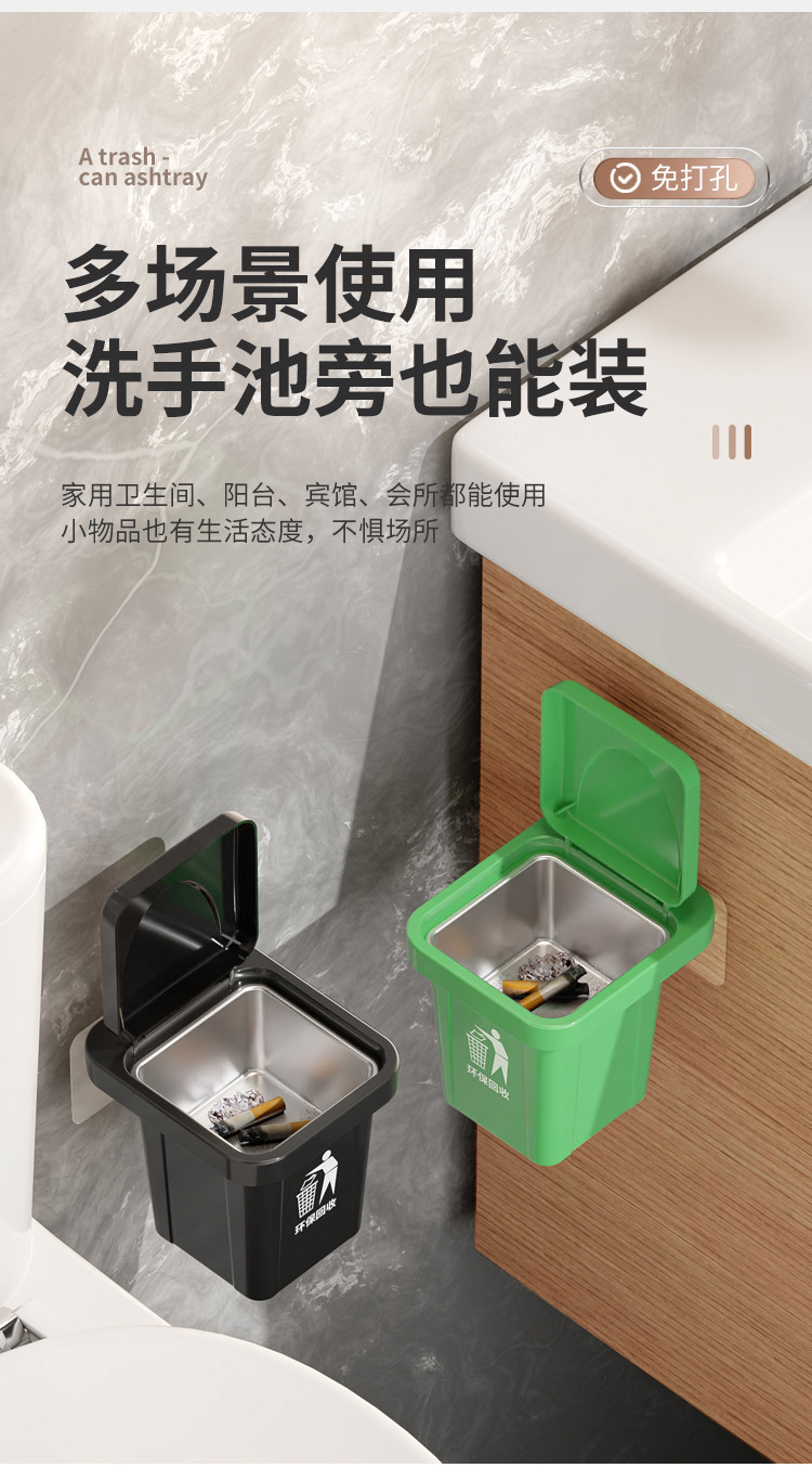 创意壁挂式垃圾桶烟灰缸收纳盒不锈钢内胆带盖防飞灰卫生间烟灰缸