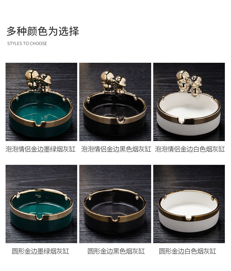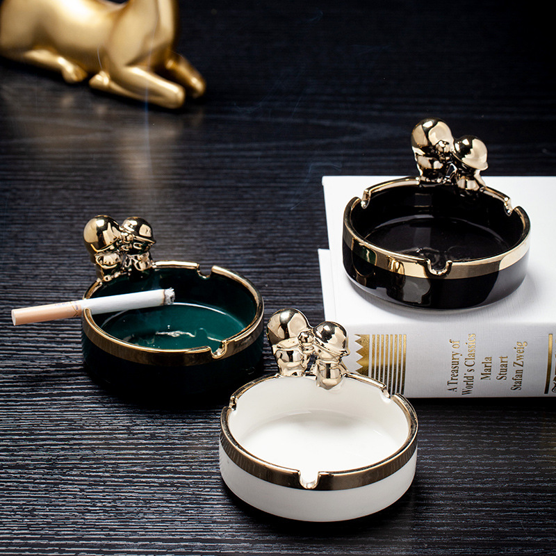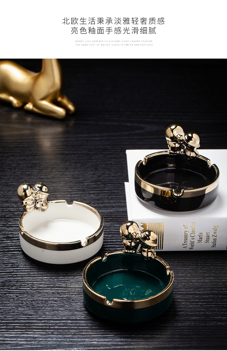 陶瓷烟灰缸家用客厅茶几桌面摆件创意轻奢时尚办公室酒店酒吧用品