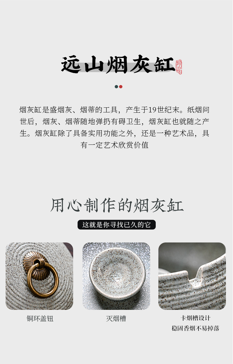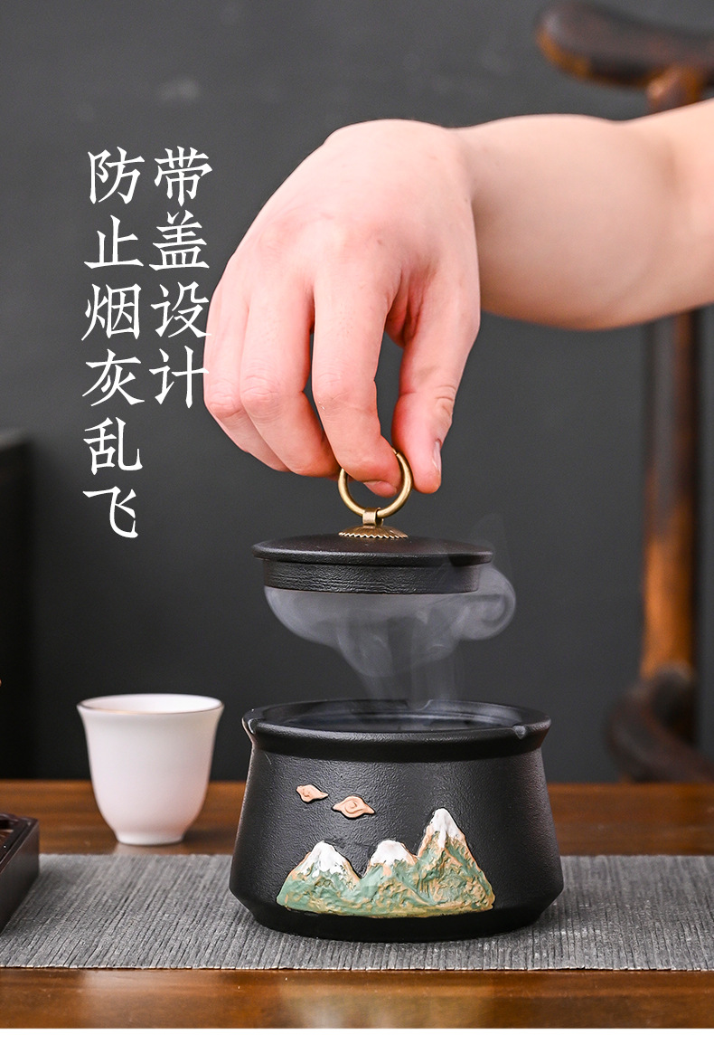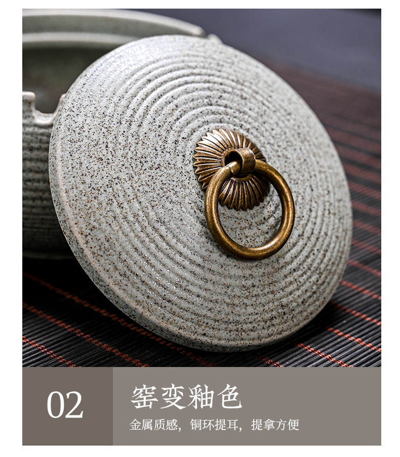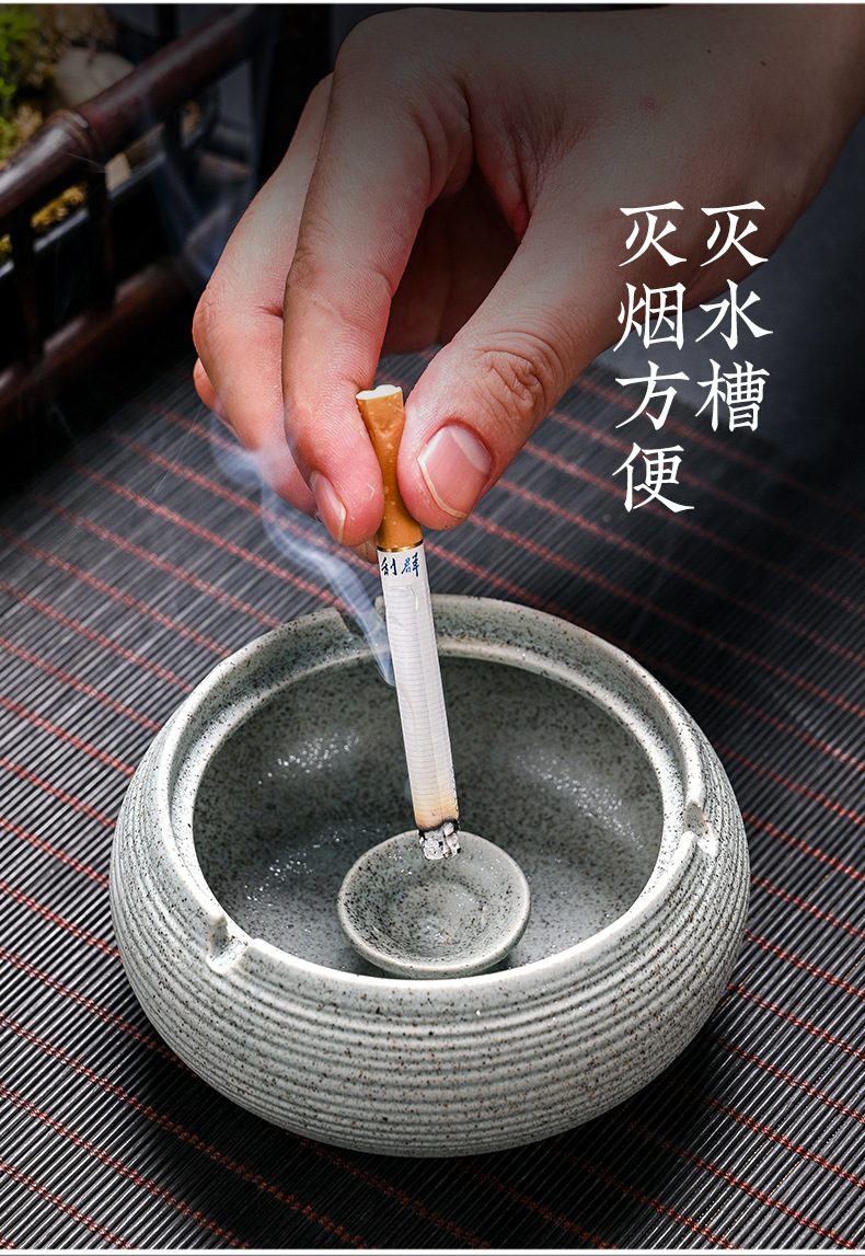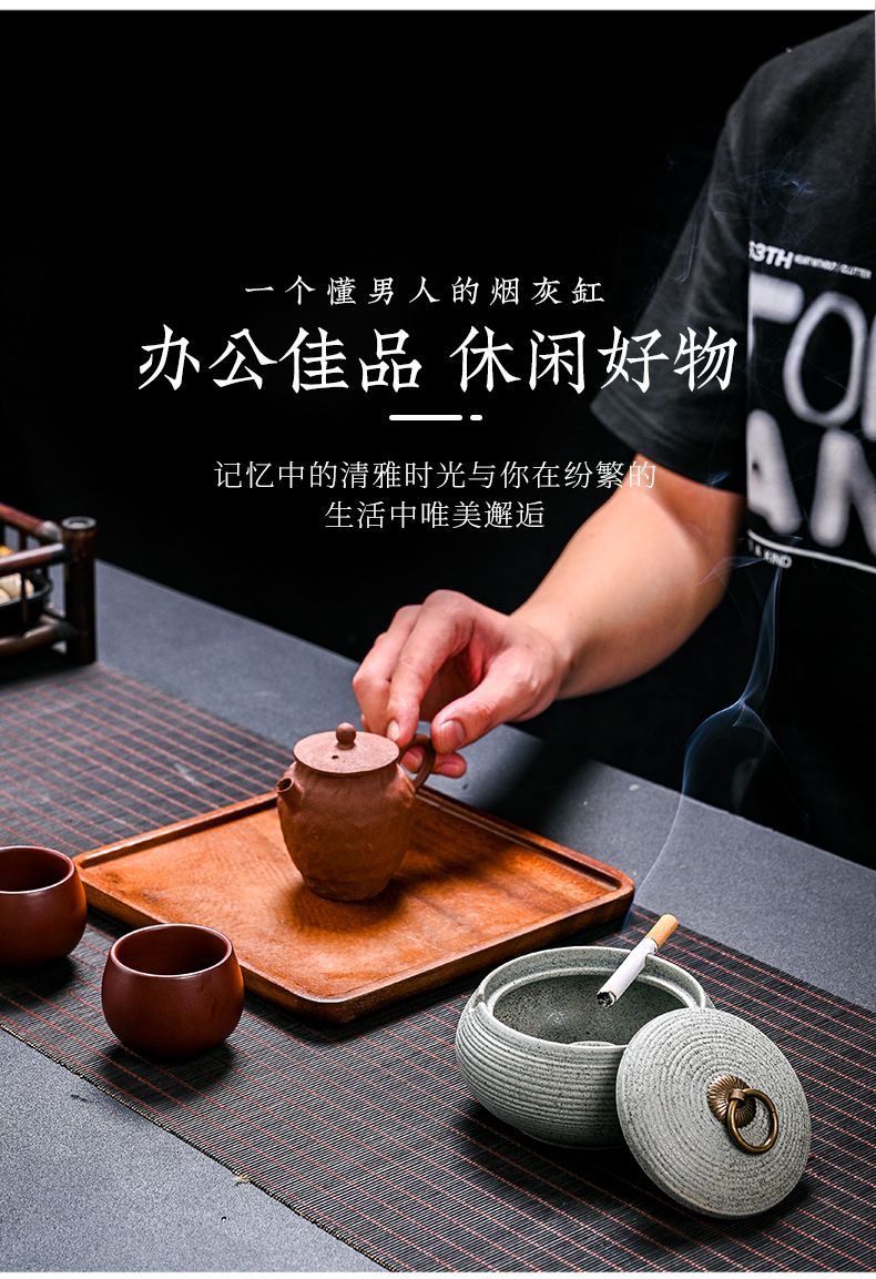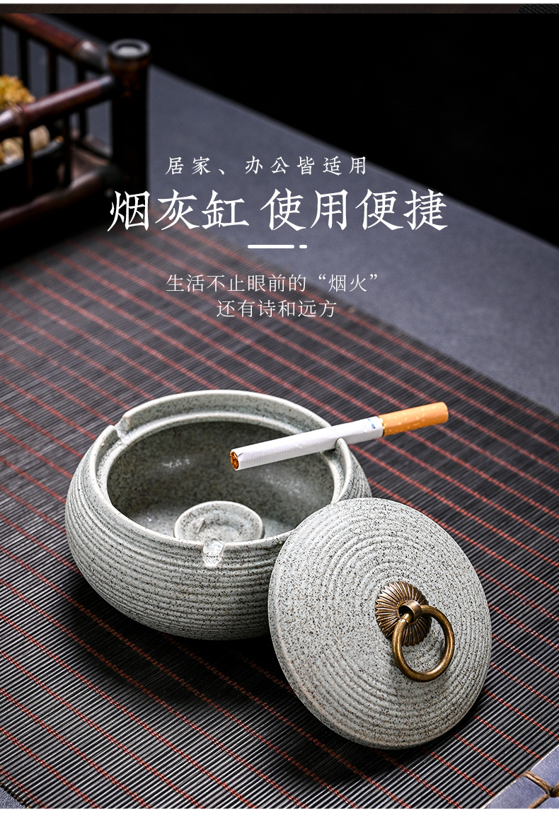 陶瓷烟灰缸带盖子防飞灰创意漏斗大号办公室个性摆件潮流雕刻logo