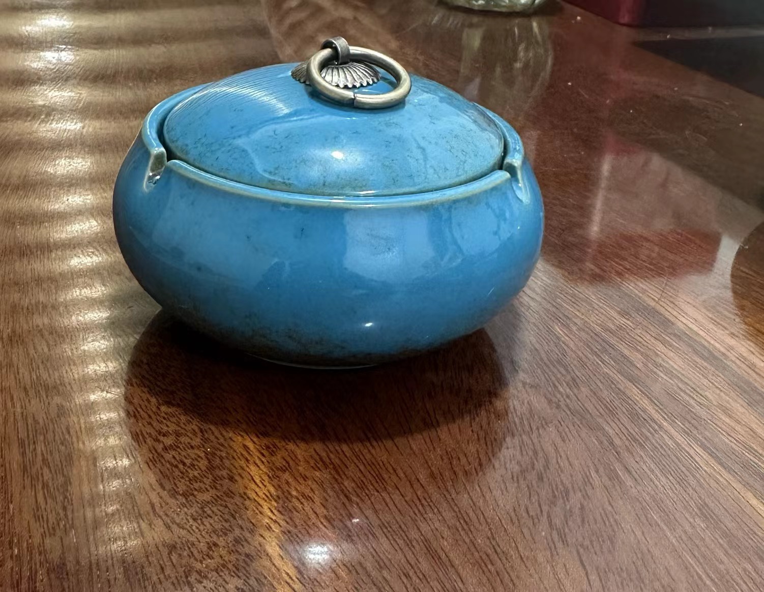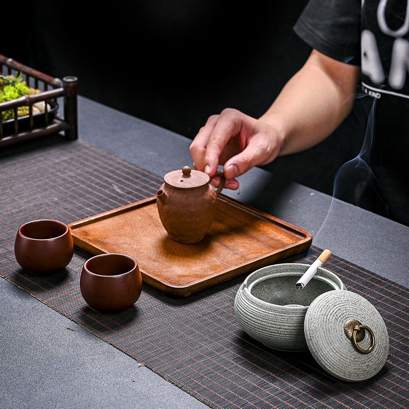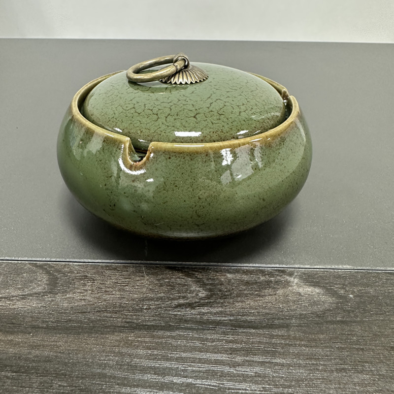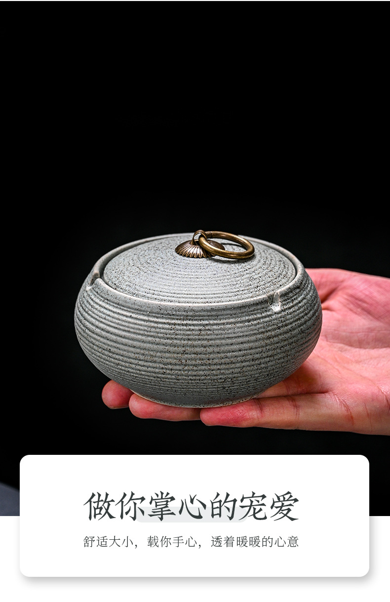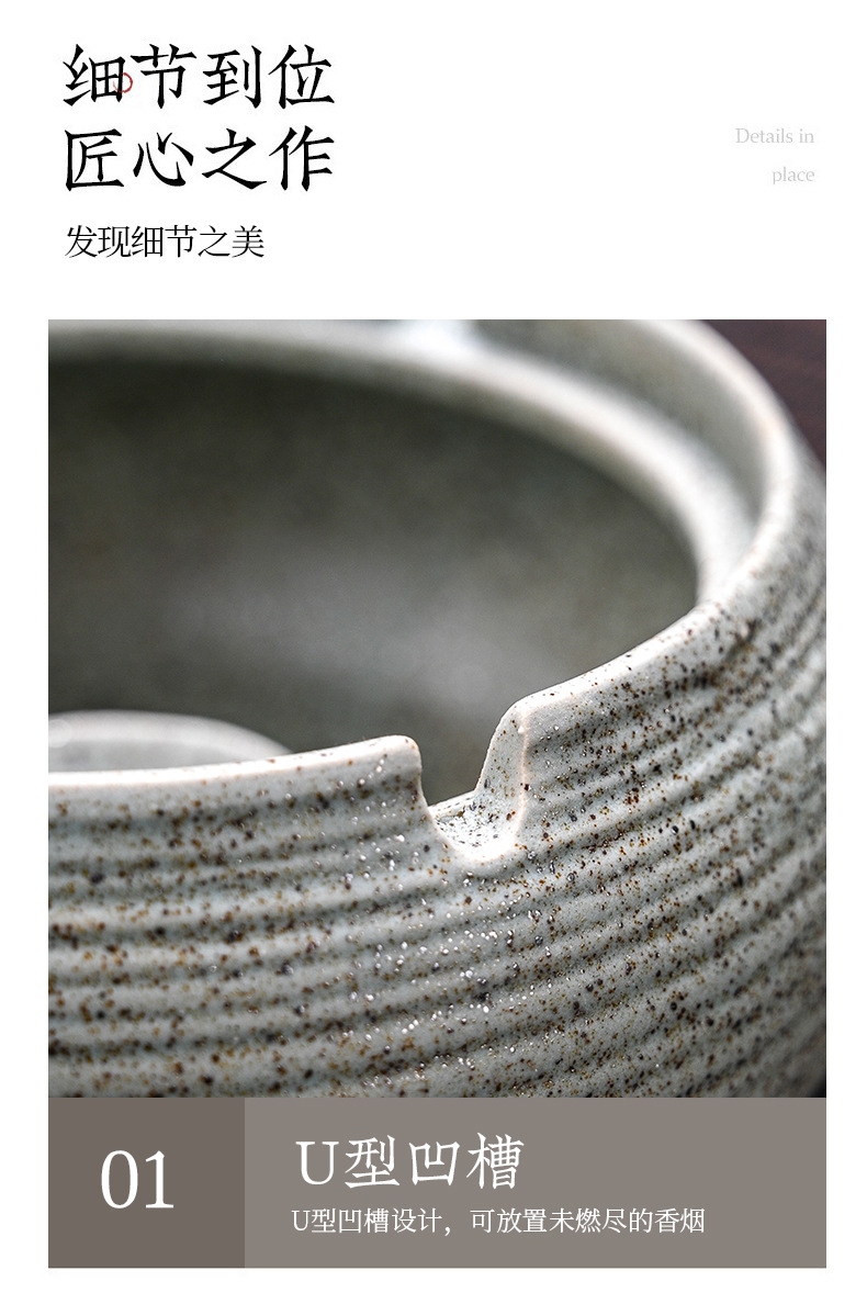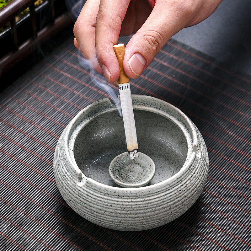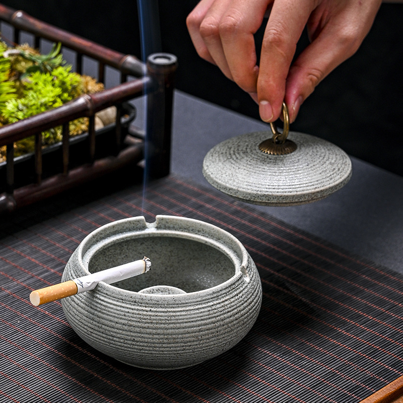 陶瓷烟灰缸带盖子防飞灰创意漏斗大号办公室个性摆件潮流雕刻logo