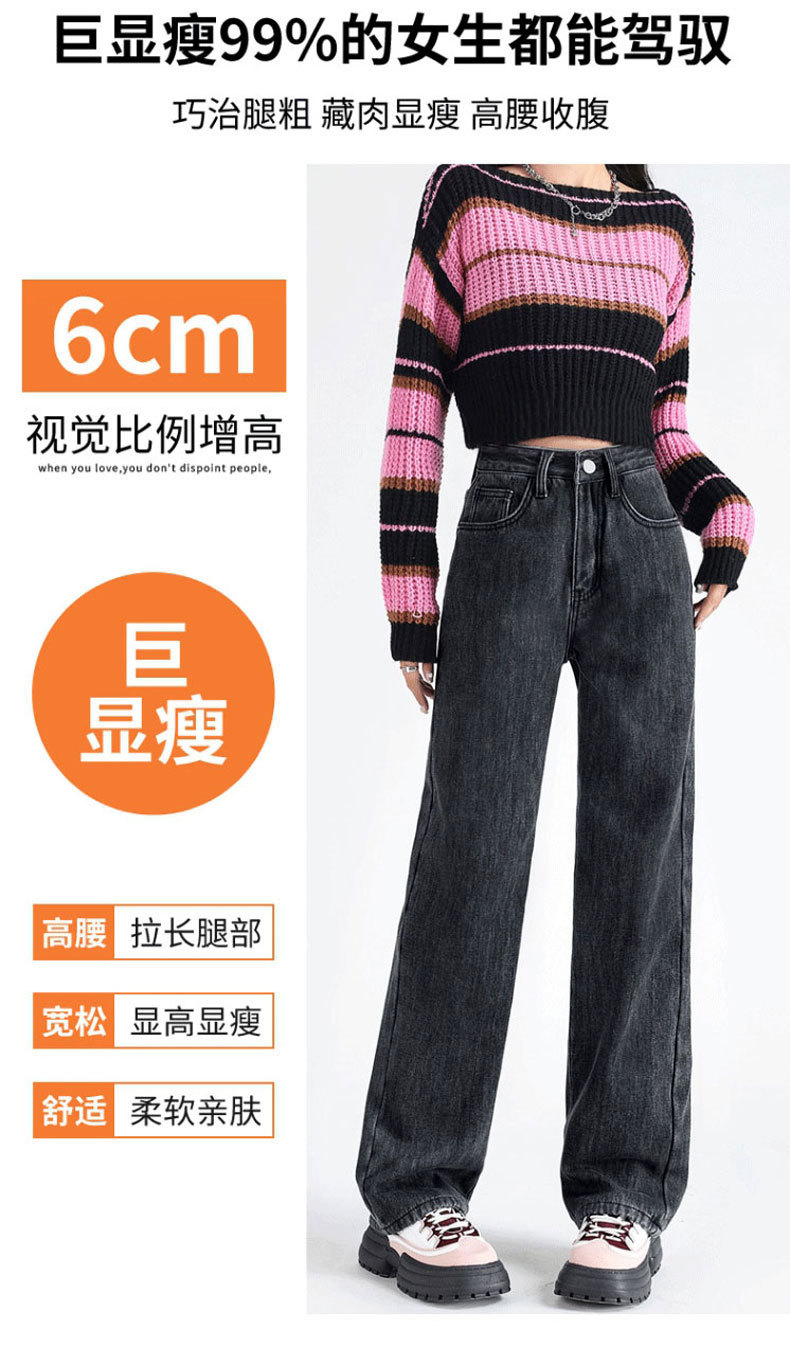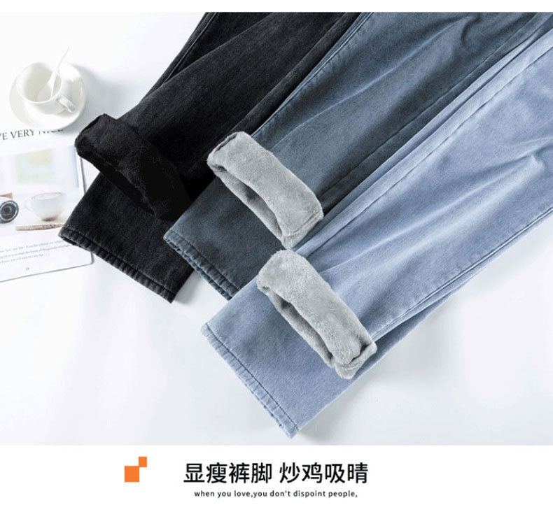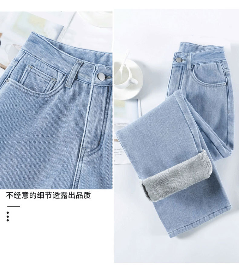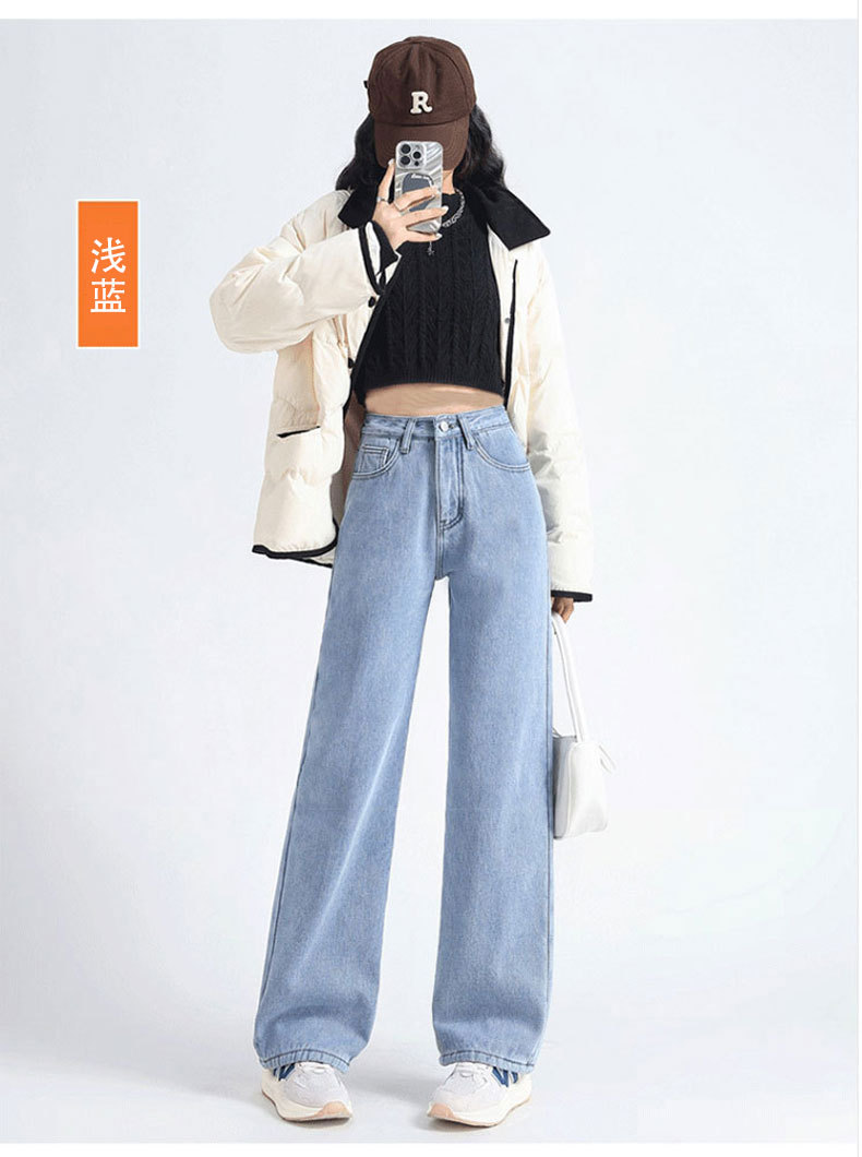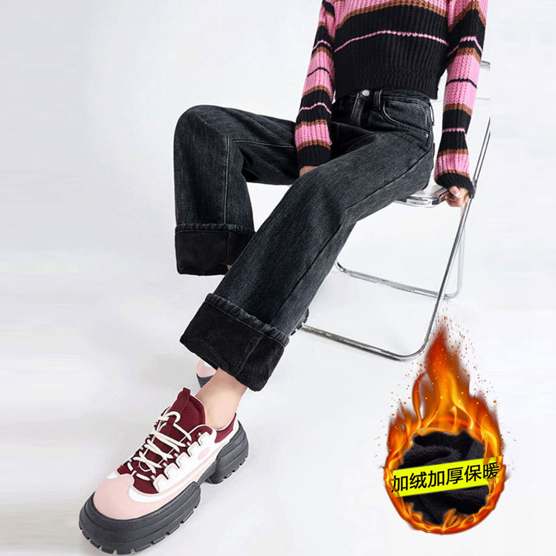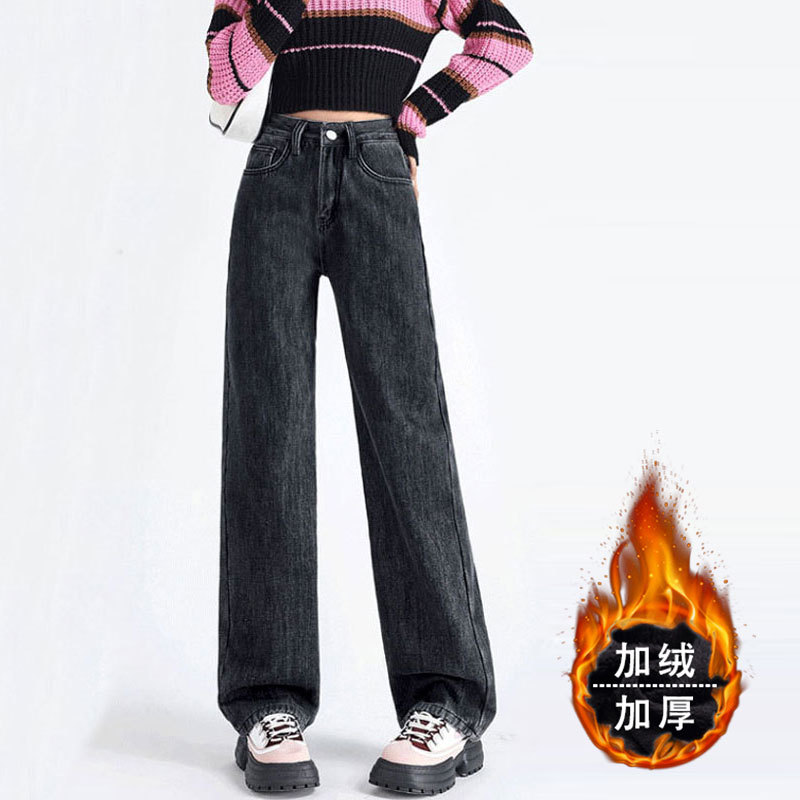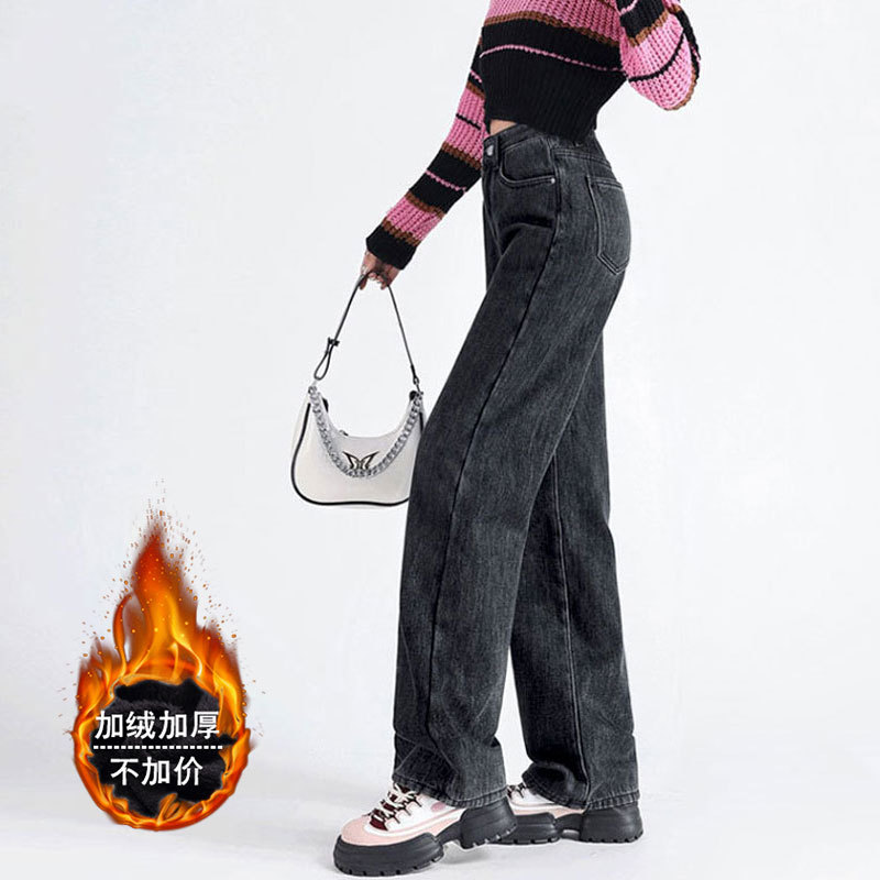 加绒牛仔裤女秋冬款韩版遮胯高腰宽松直筒加厚保暖拖地阔腿长裤子