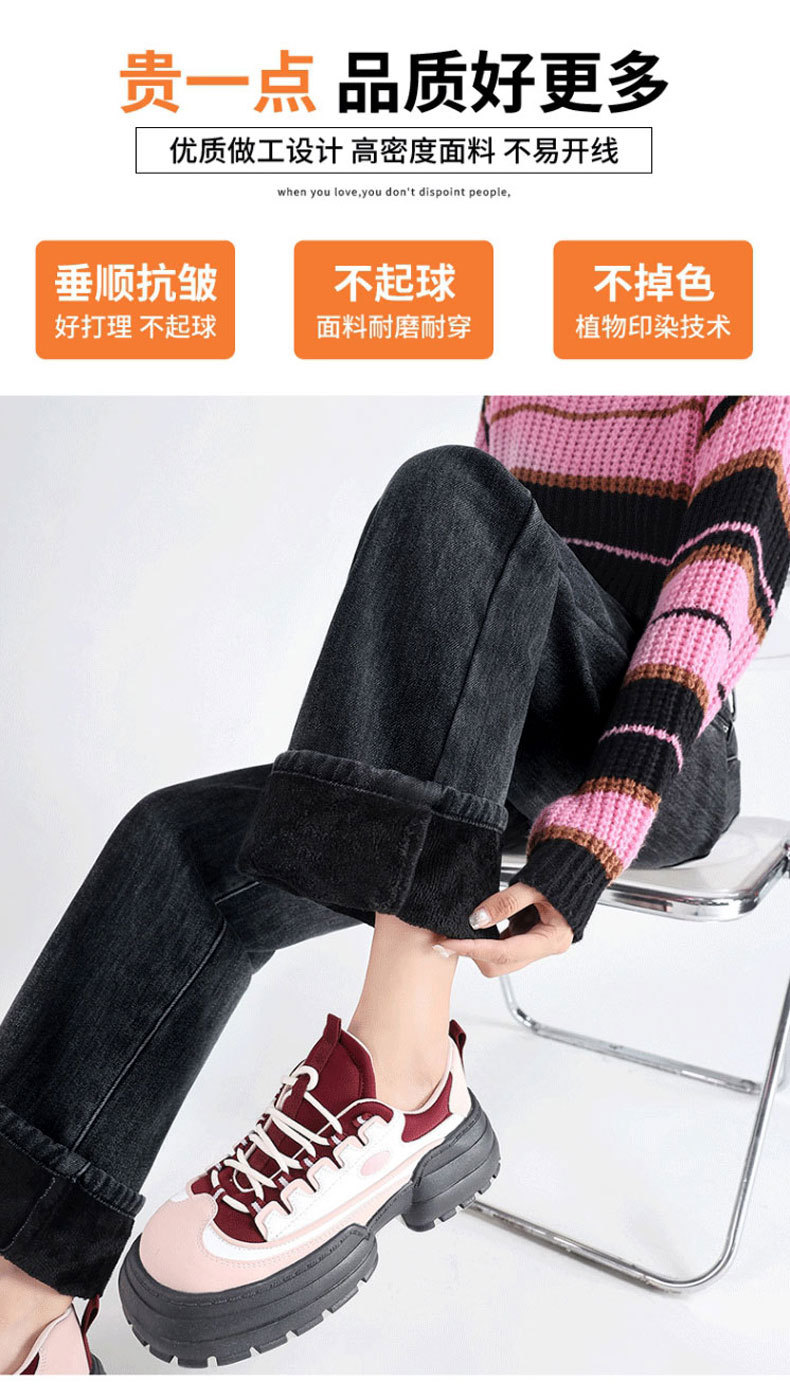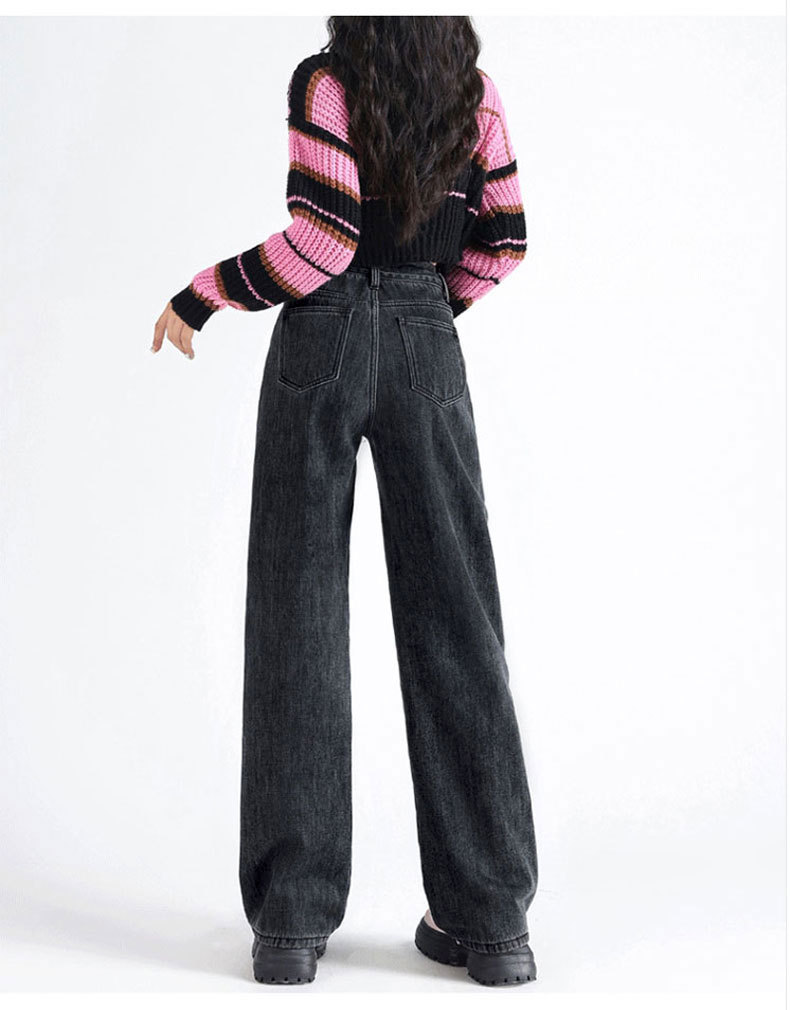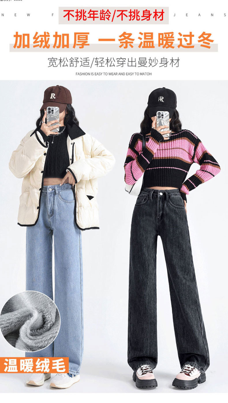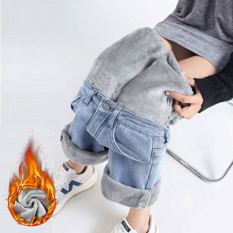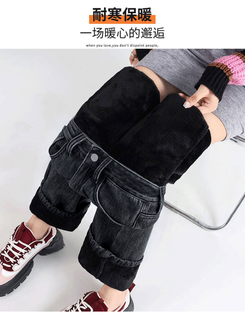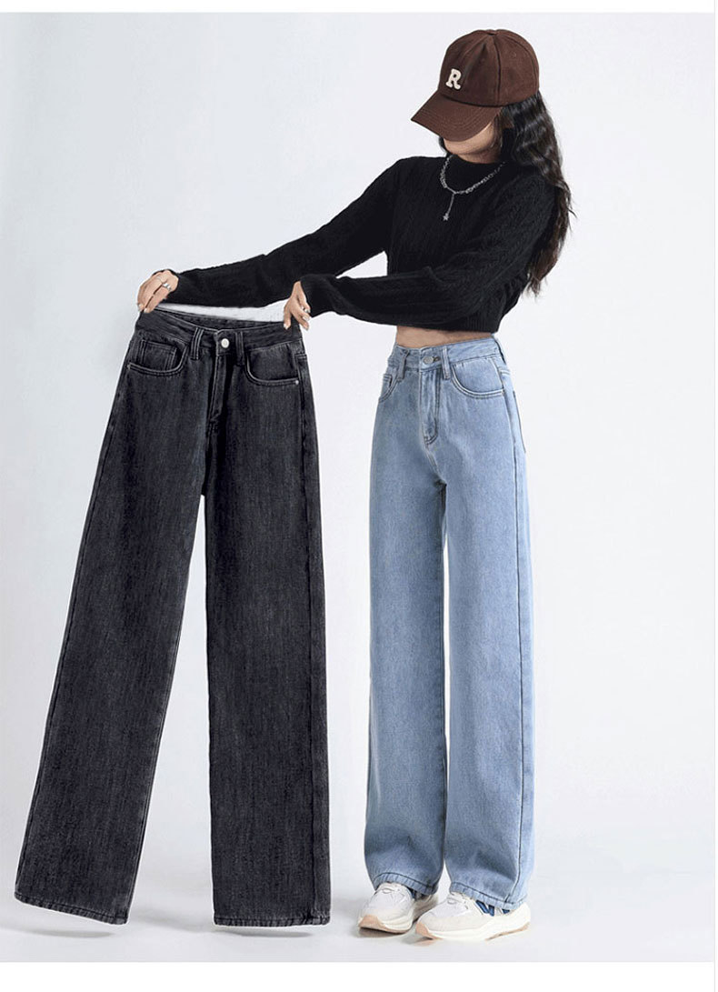 加绒牛仔裤女秋冬款韩版遮胯高腰宽松直筒加厚保暖拖地阔腿长裤子