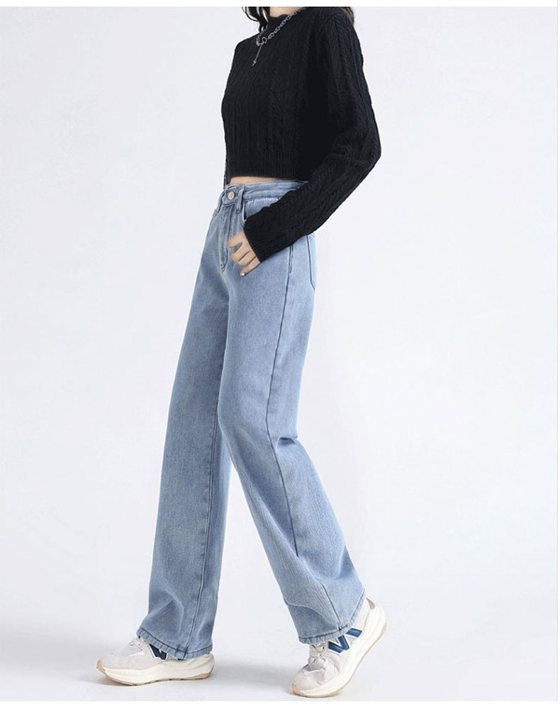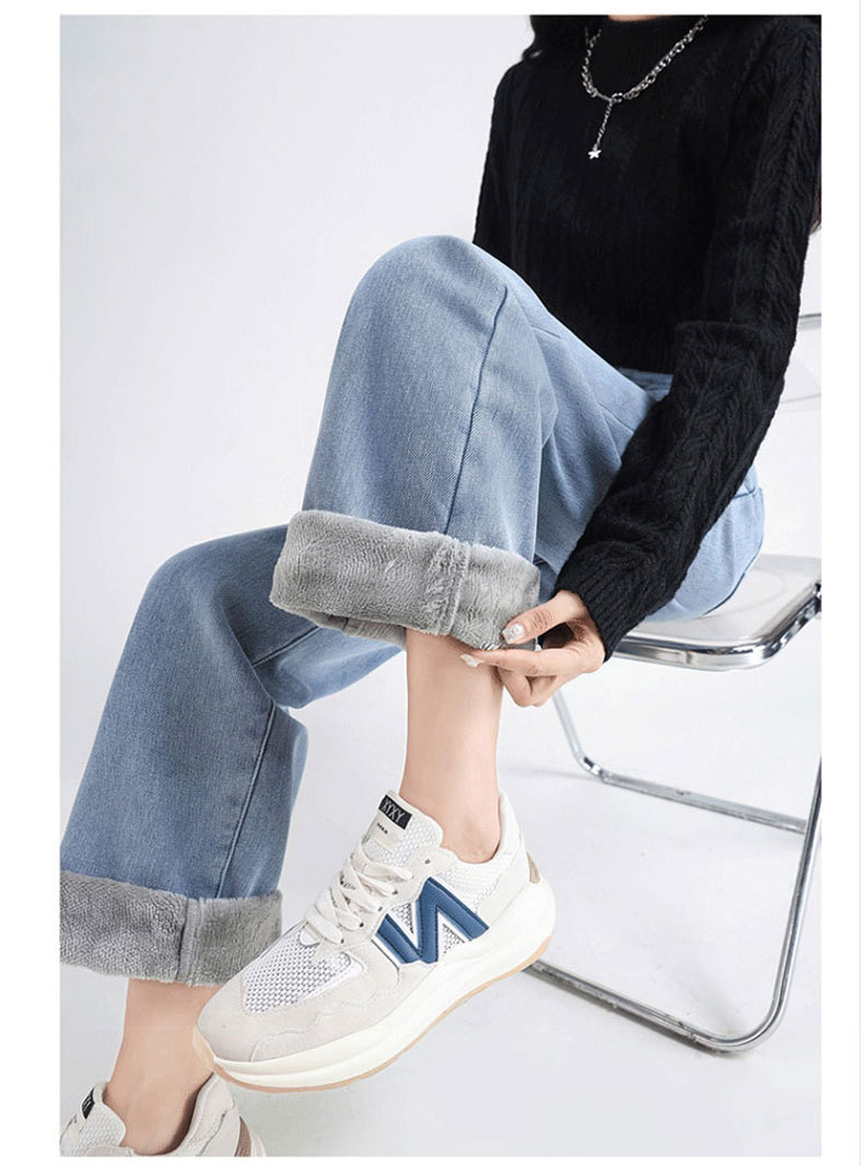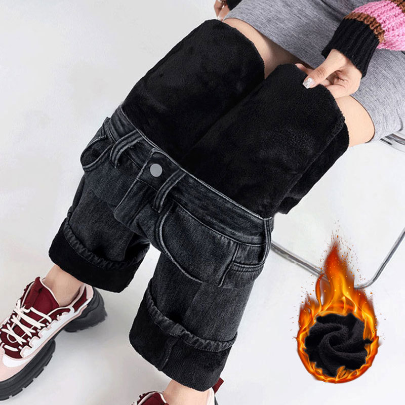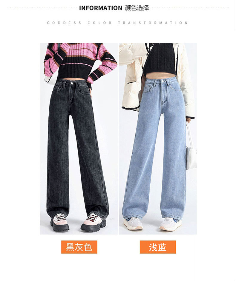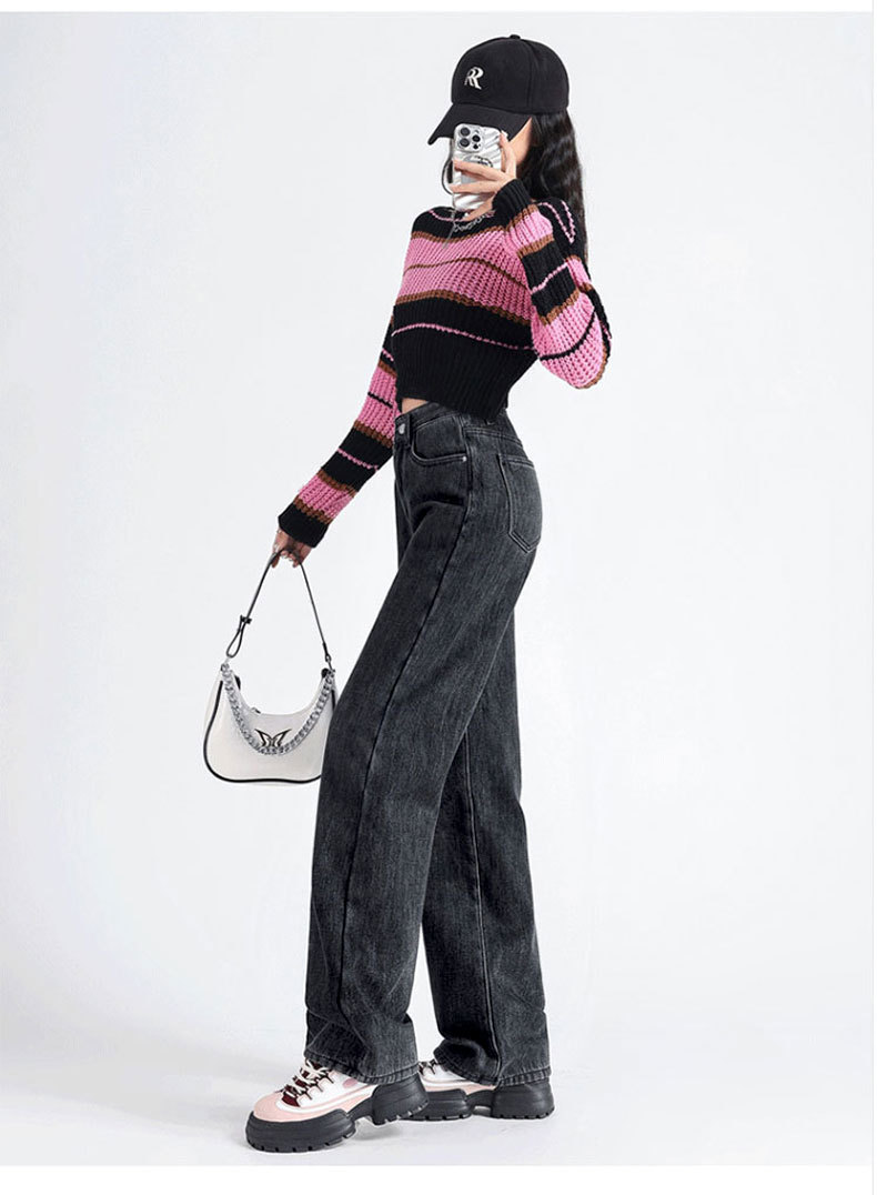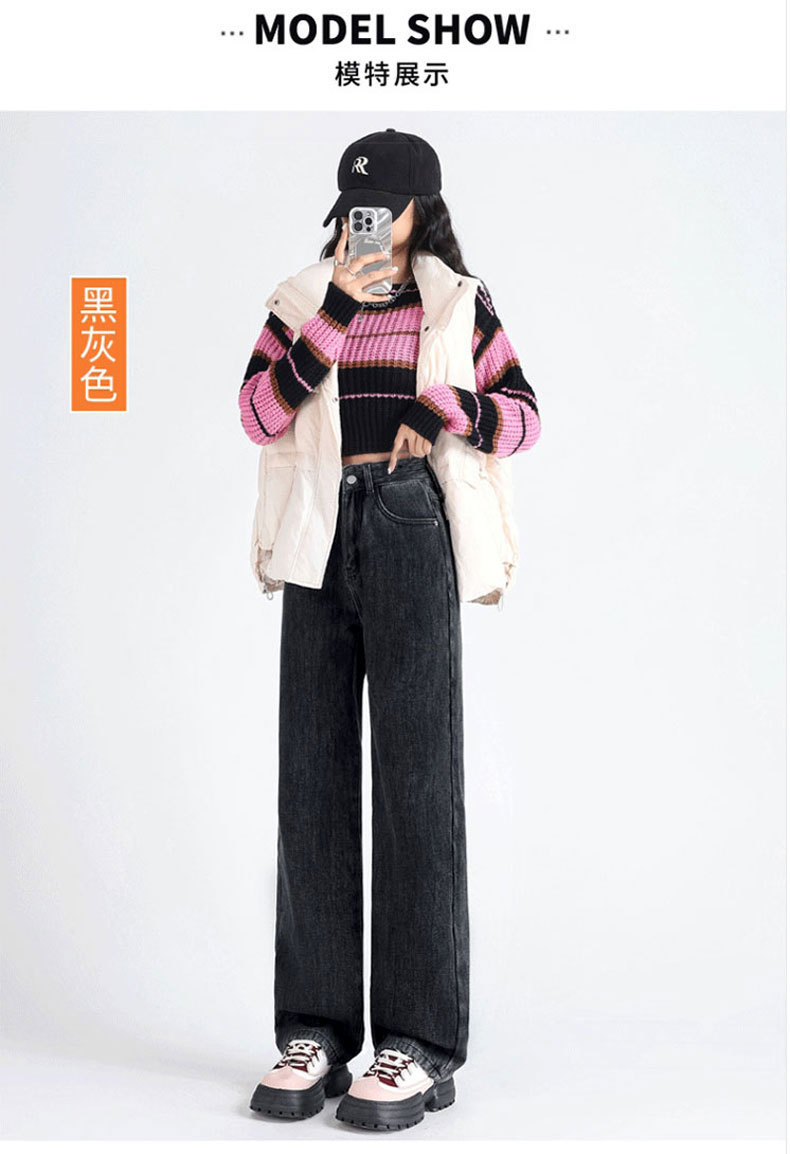 加绒牛仔裤女秋冬款韩版遮胯高腰宽松直筒加厚保暖拖地阔腿长裤子