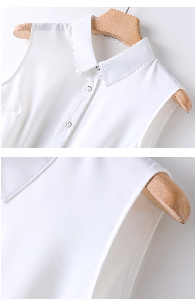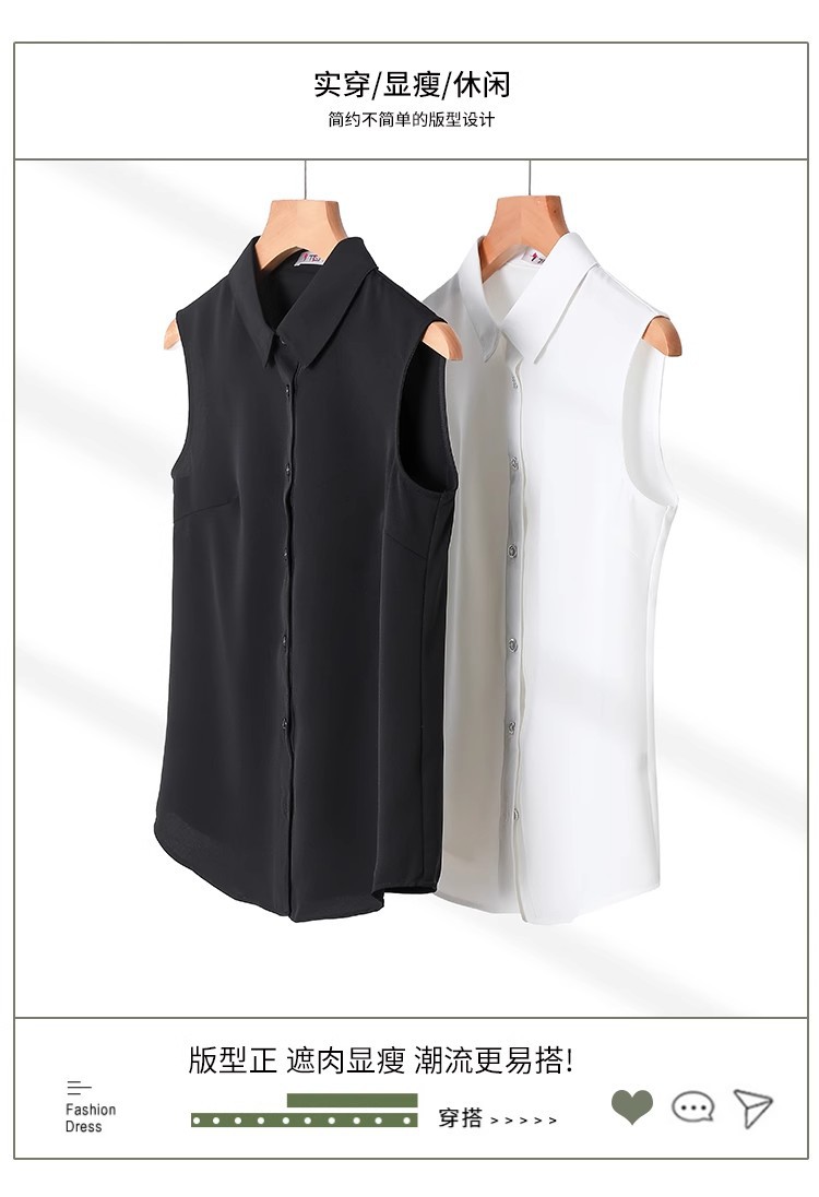 白色无袖衬衫领女款春秋夏内搭坎肩上衣职业打底背心雪纺衬衣叠穿