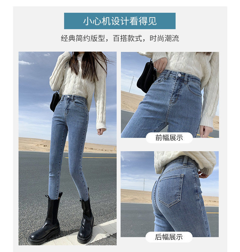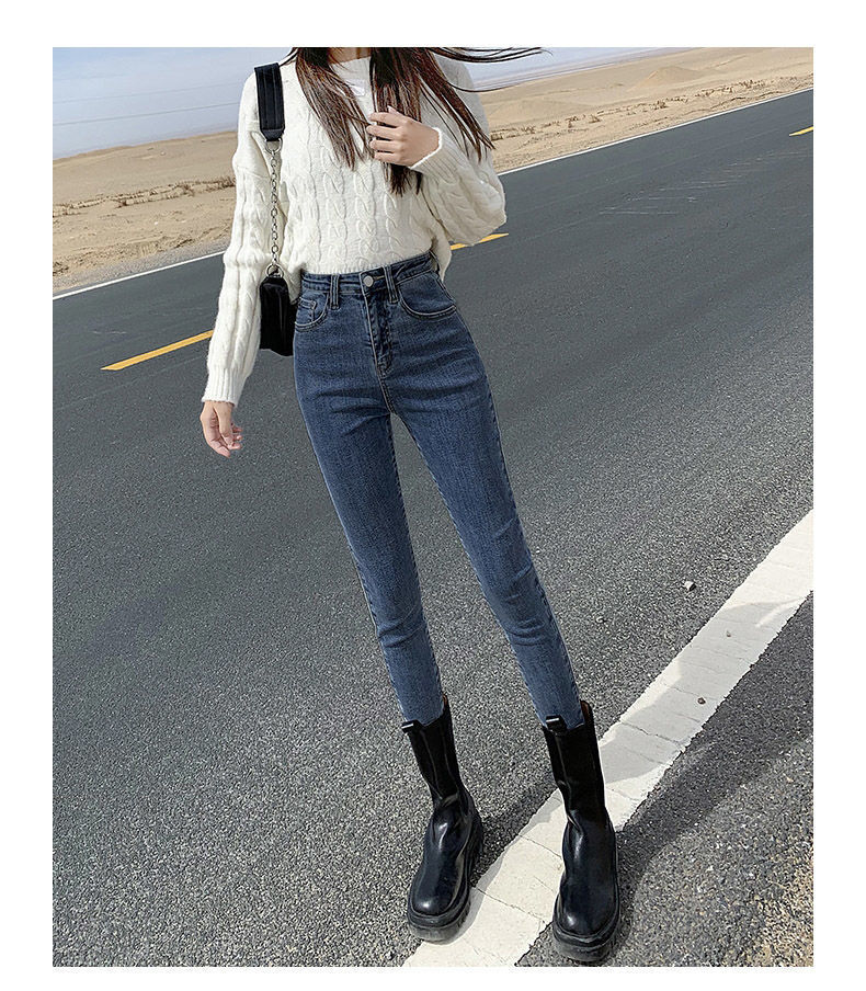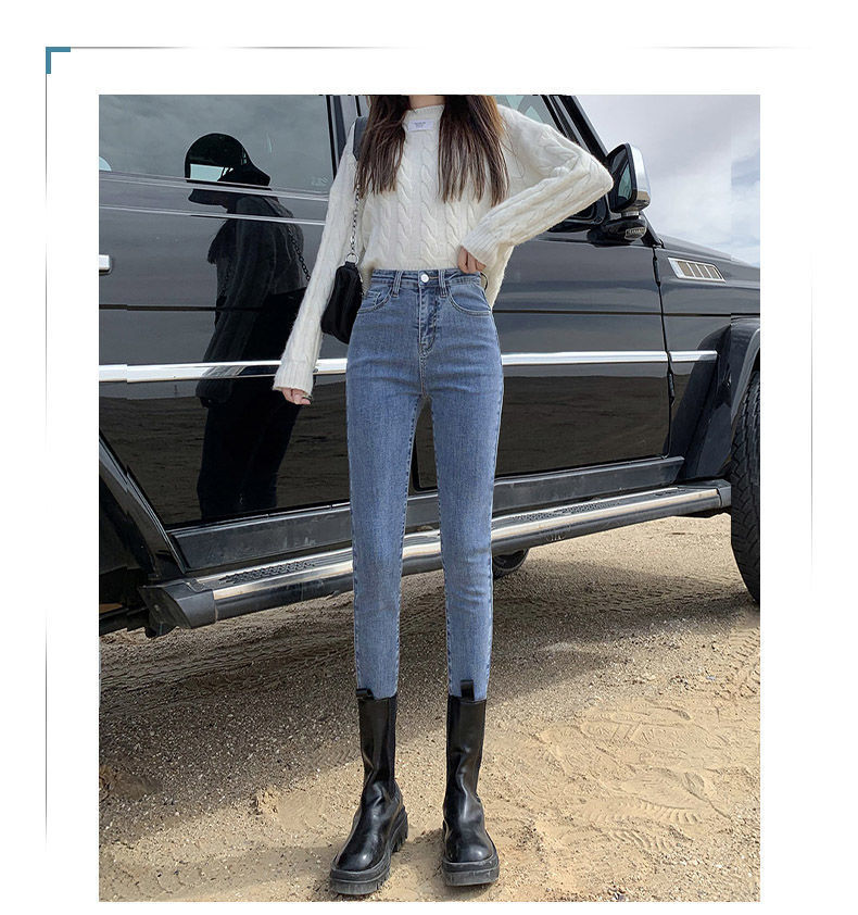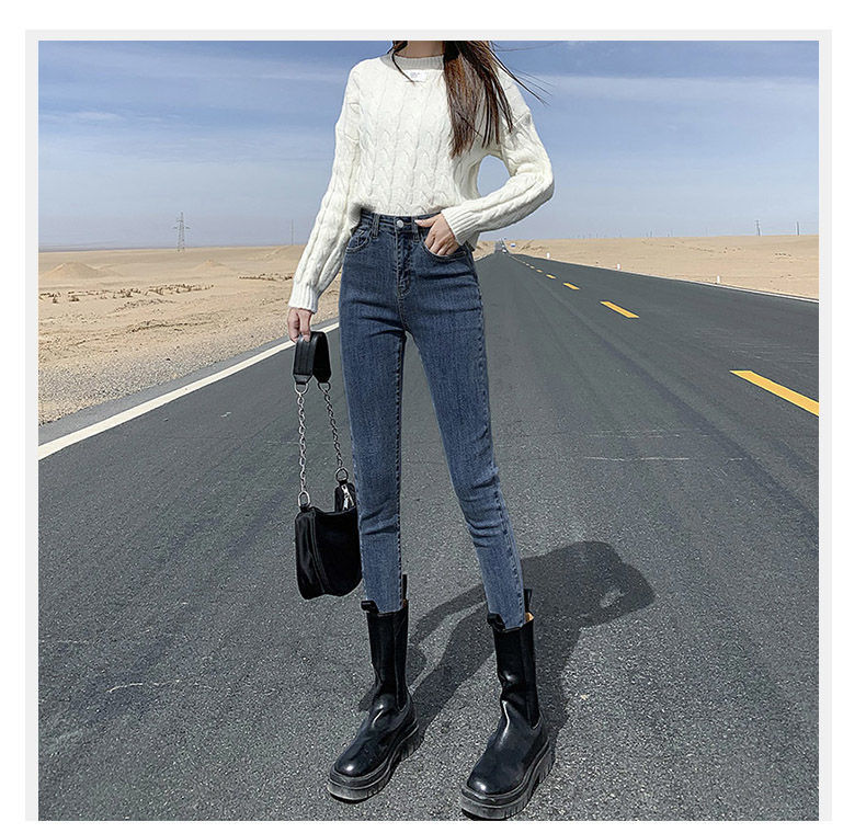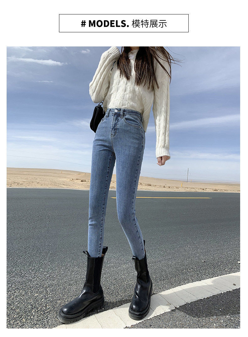 春秋新款韩版高腰弹力小脚牛仔裤女蓝灰色修身显瘦九分紧身铅笔裤