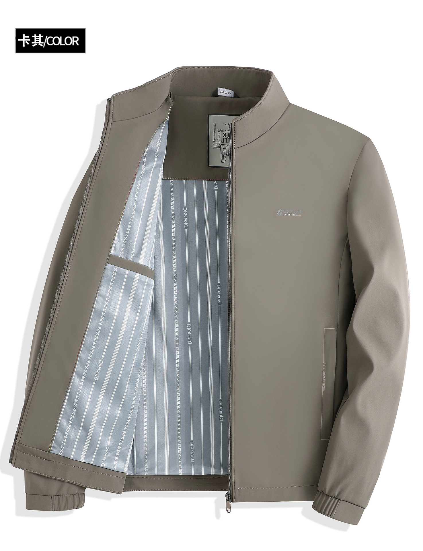 中年男士春秋薄款休闲爸爸装立领商务新款百搭夹克简约拉链款外套