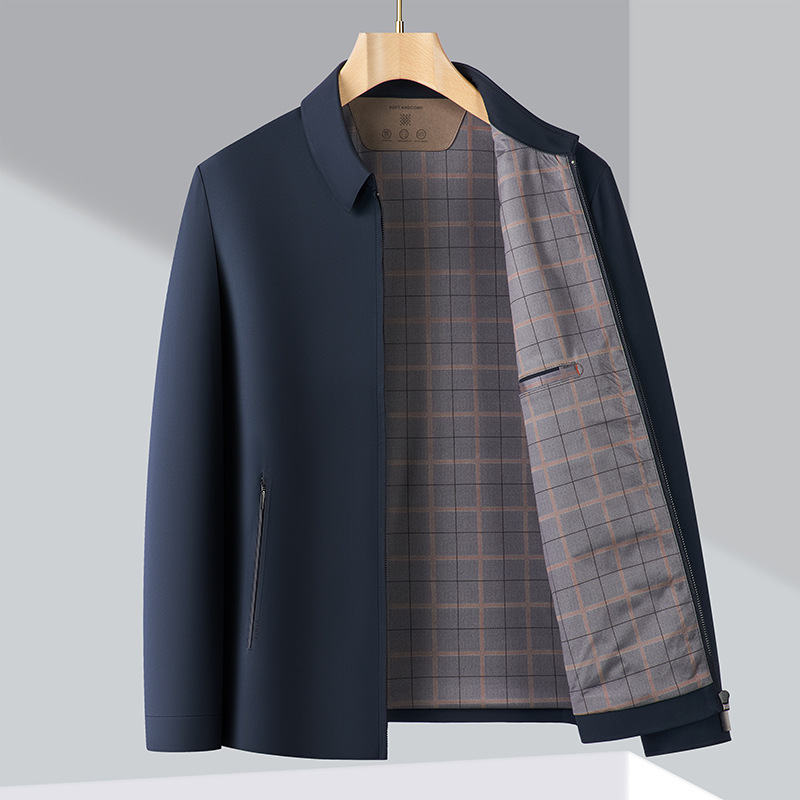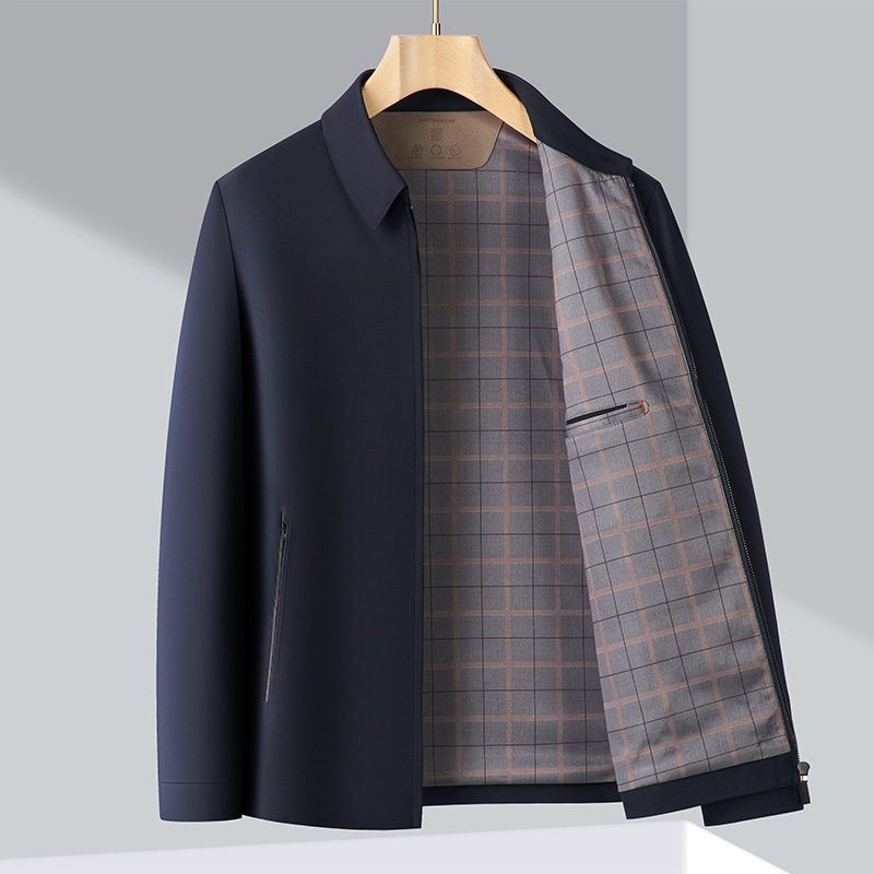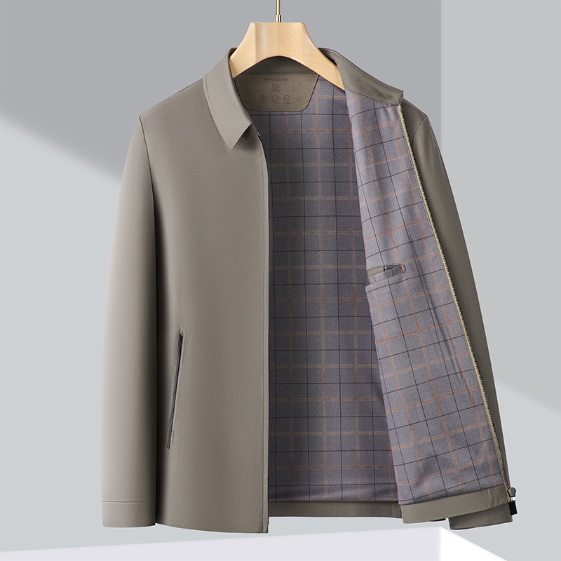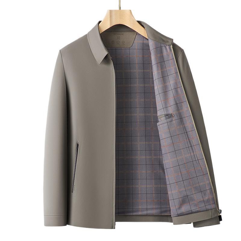 高档男士桑蚕丝夹克2025秋冬商务休闲免烫中老年品牌男装翻领外套