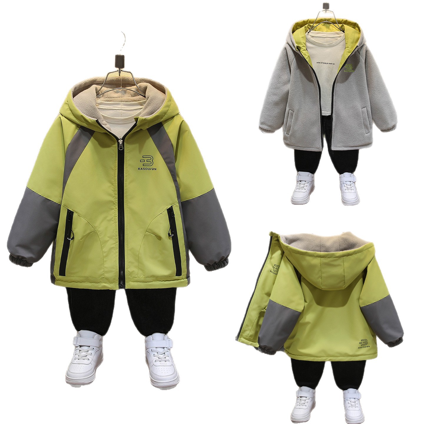 男童秋季外套加绒2025新款中大童上衣春秋装风衣双面穿儿童冲锋衣