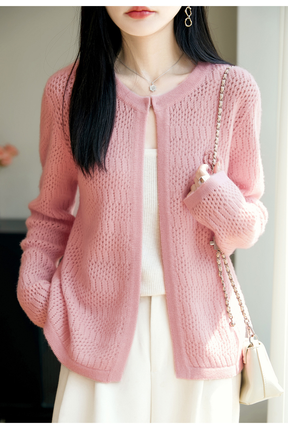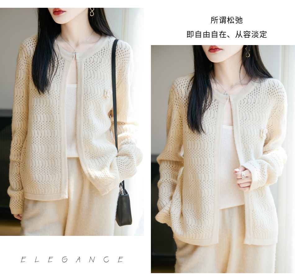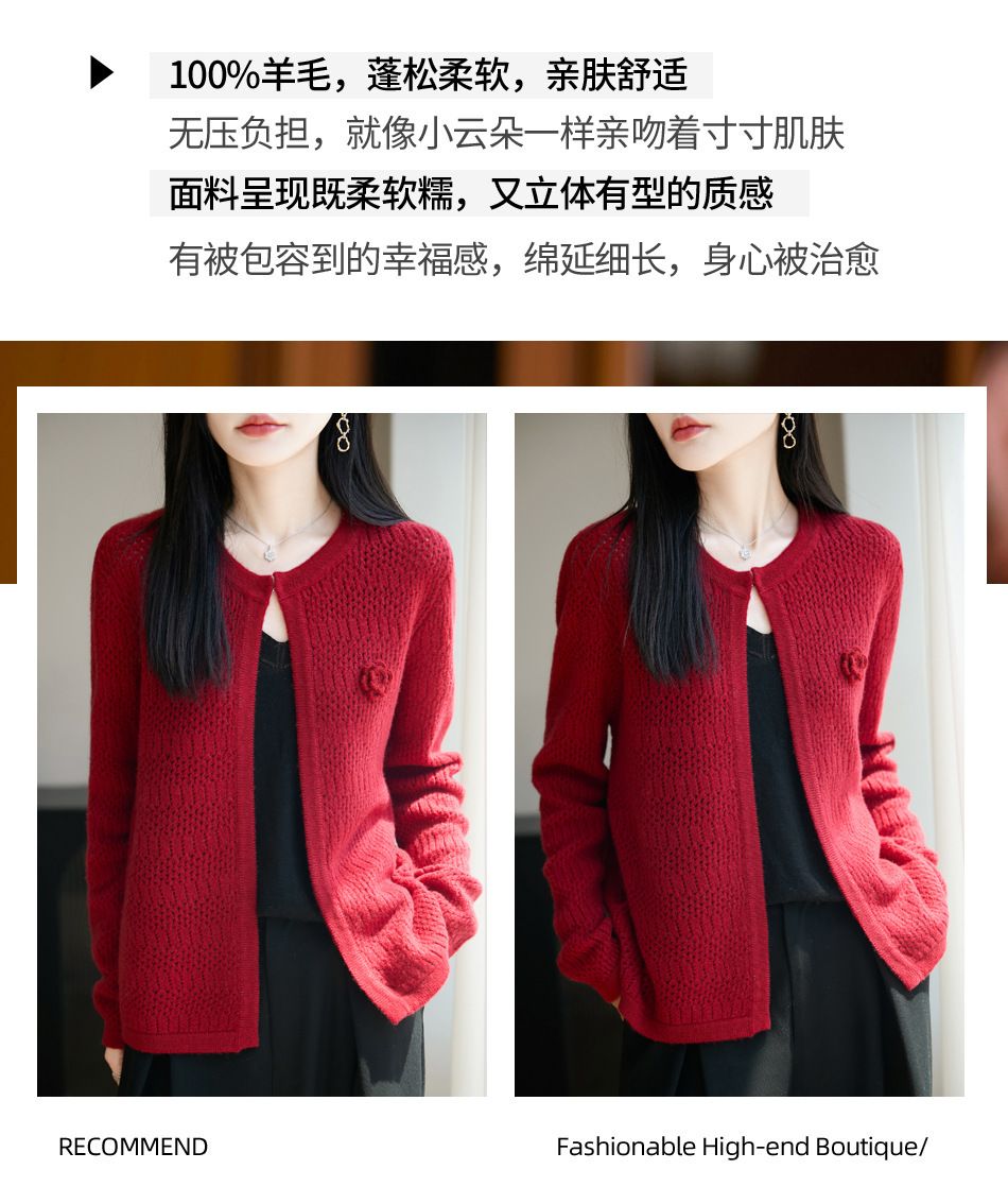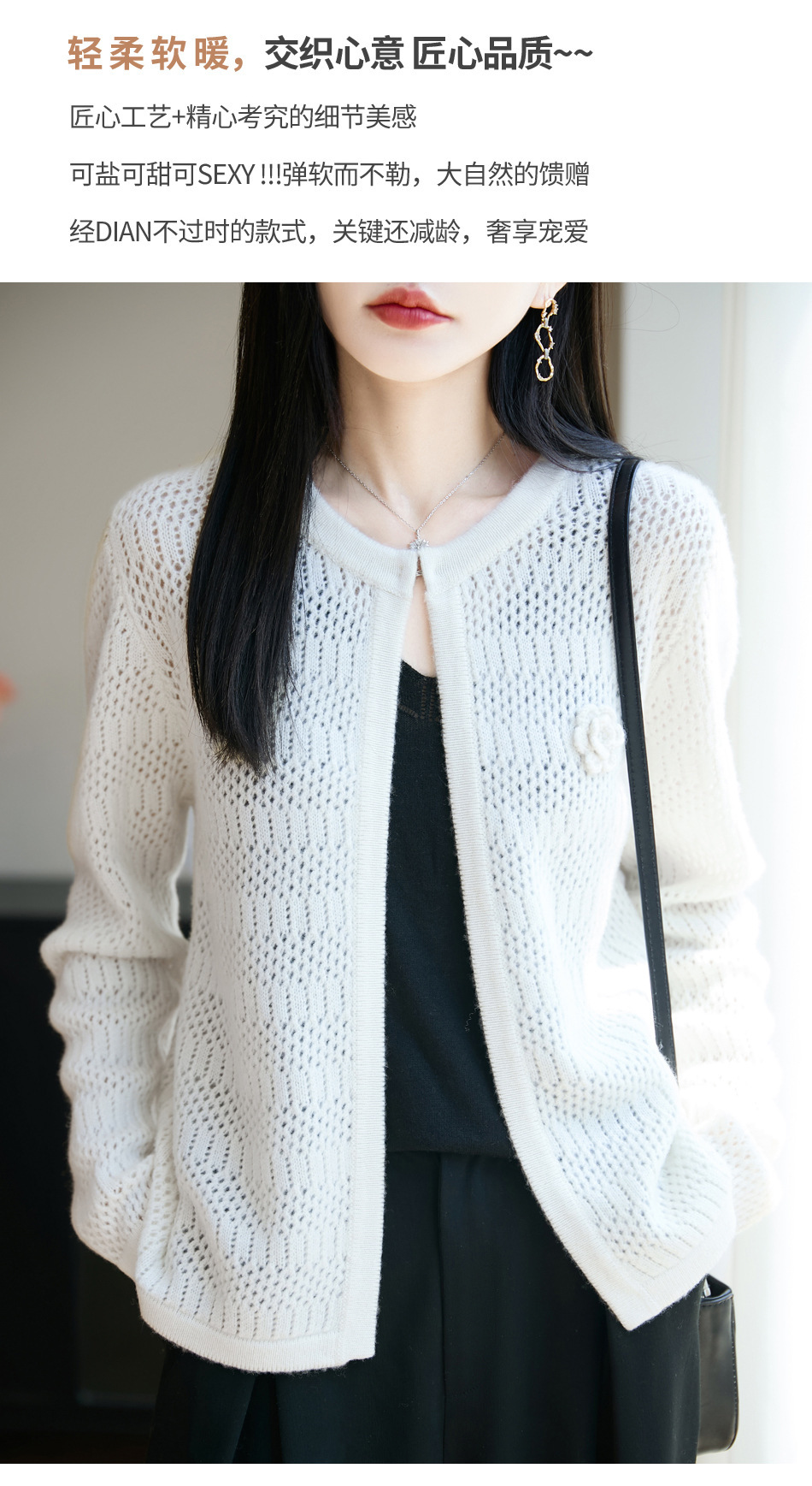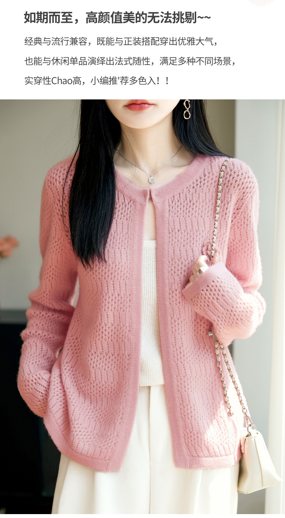 2025年秋季新款100羊毛镂空针织开衫披肩外套女外搭上衣春秋毛衣