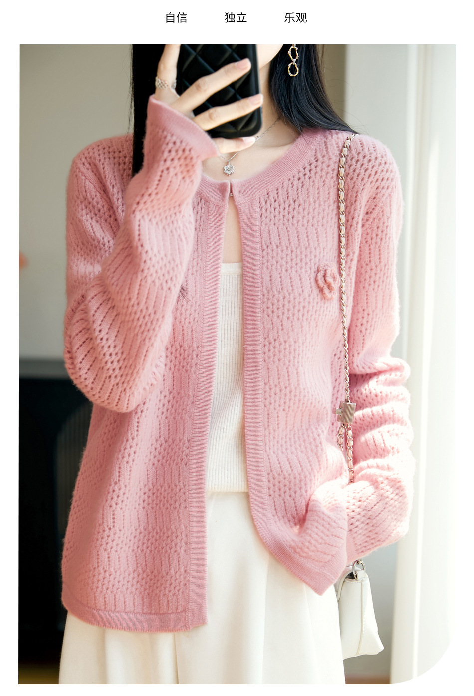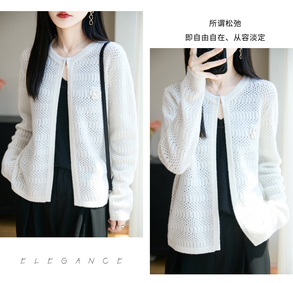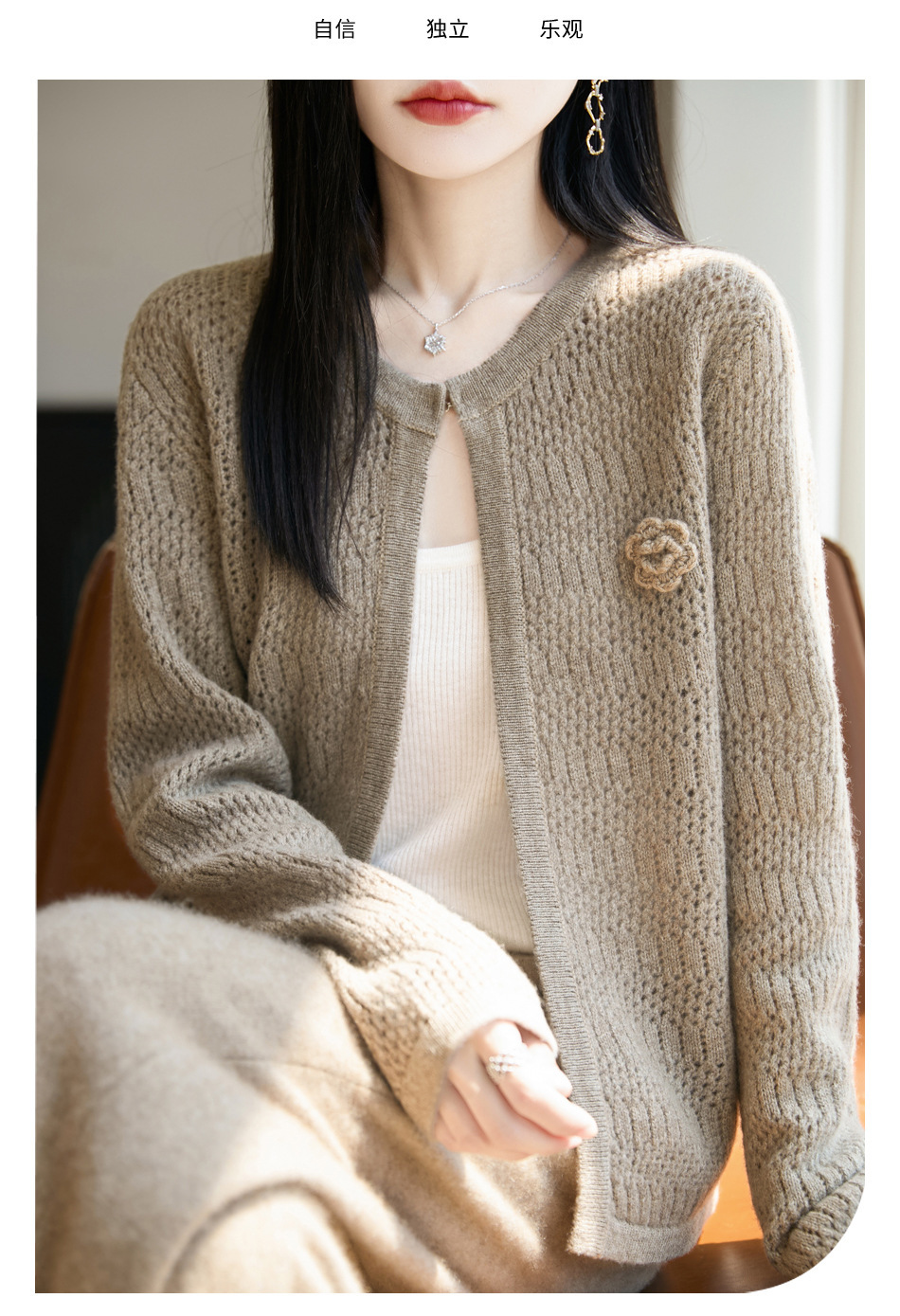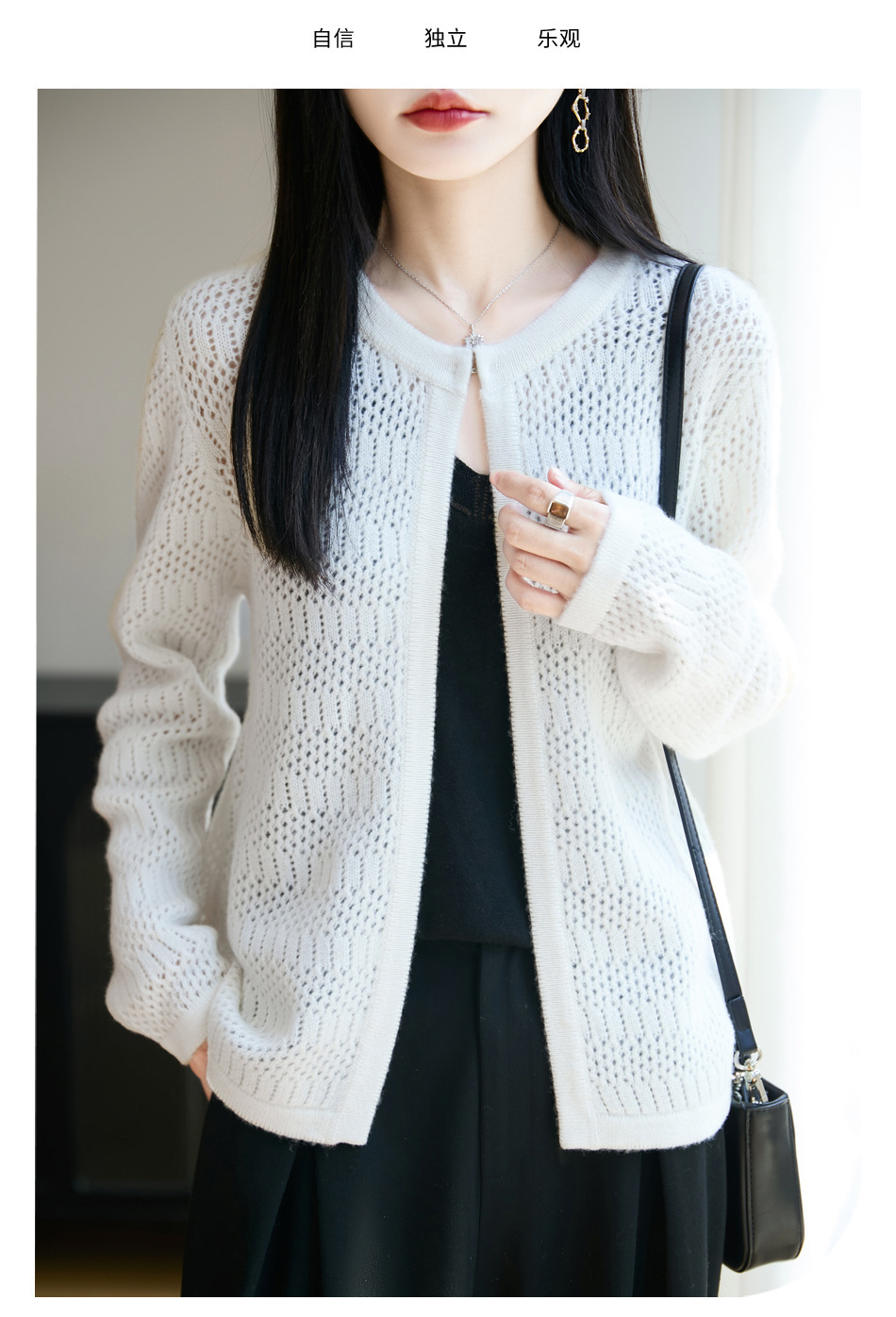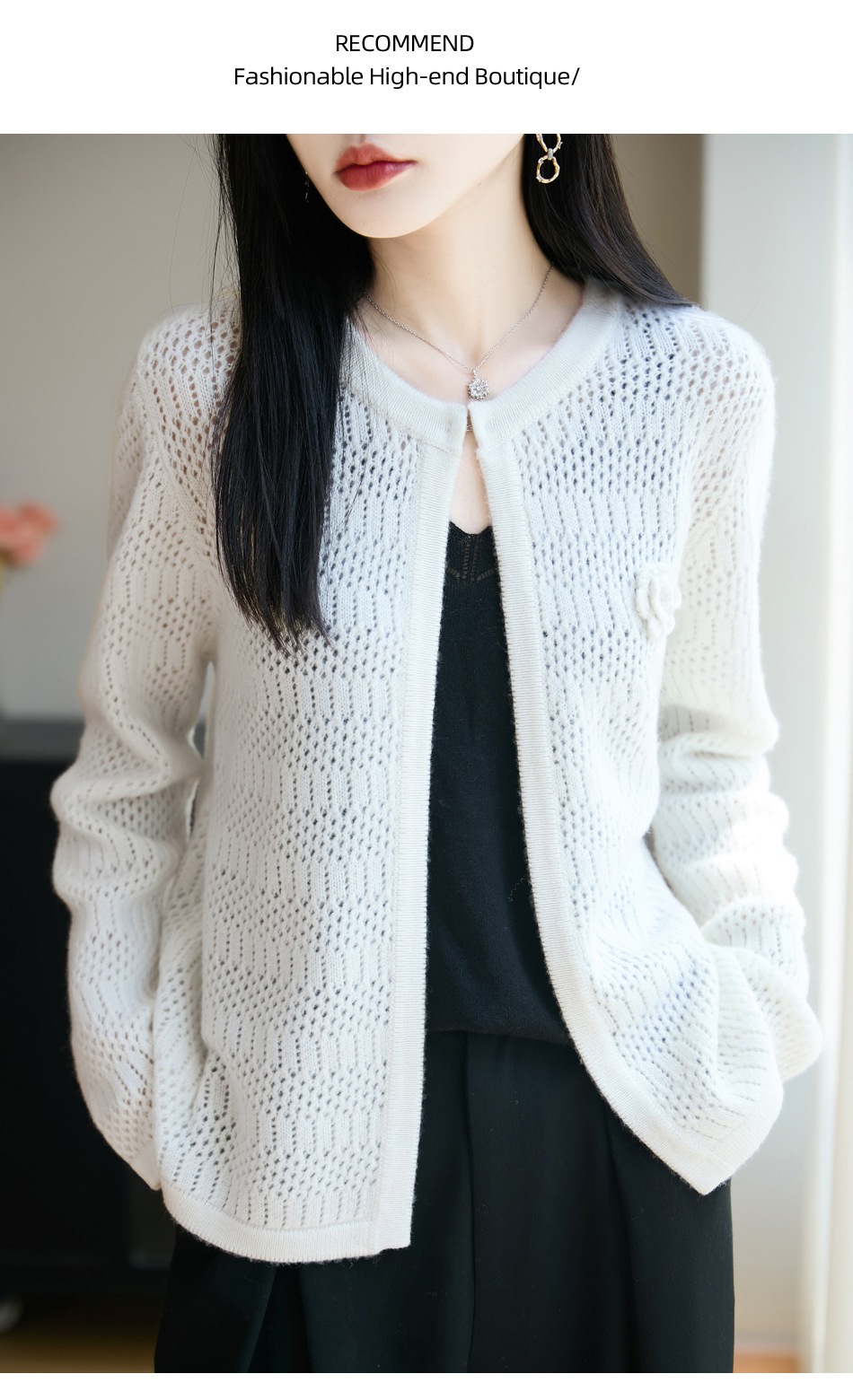 2025年秋季新款100羊毛镂空针织开衫披肩外套女外搭上衣春秋毛衣