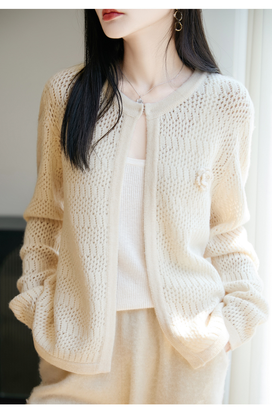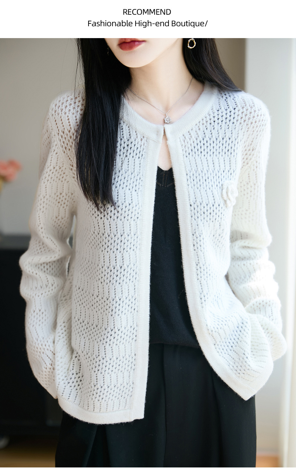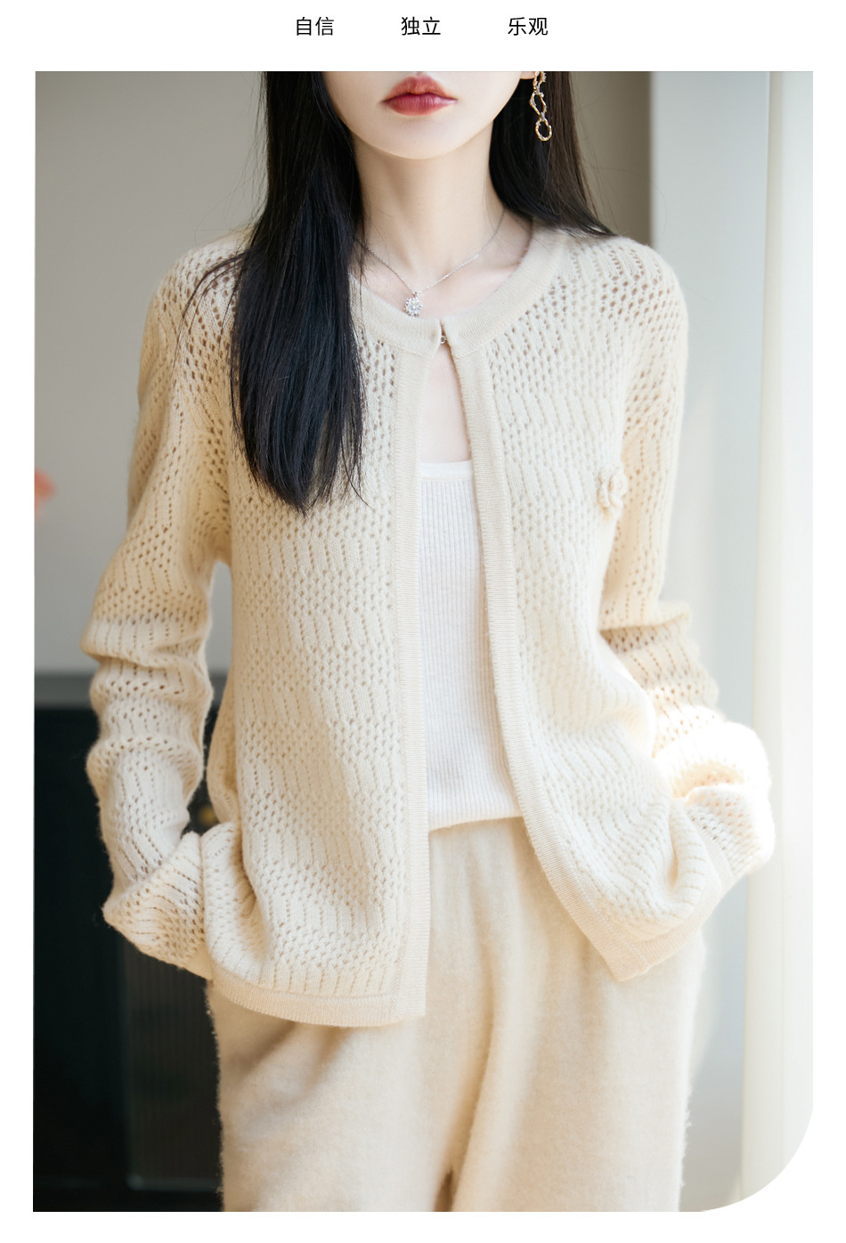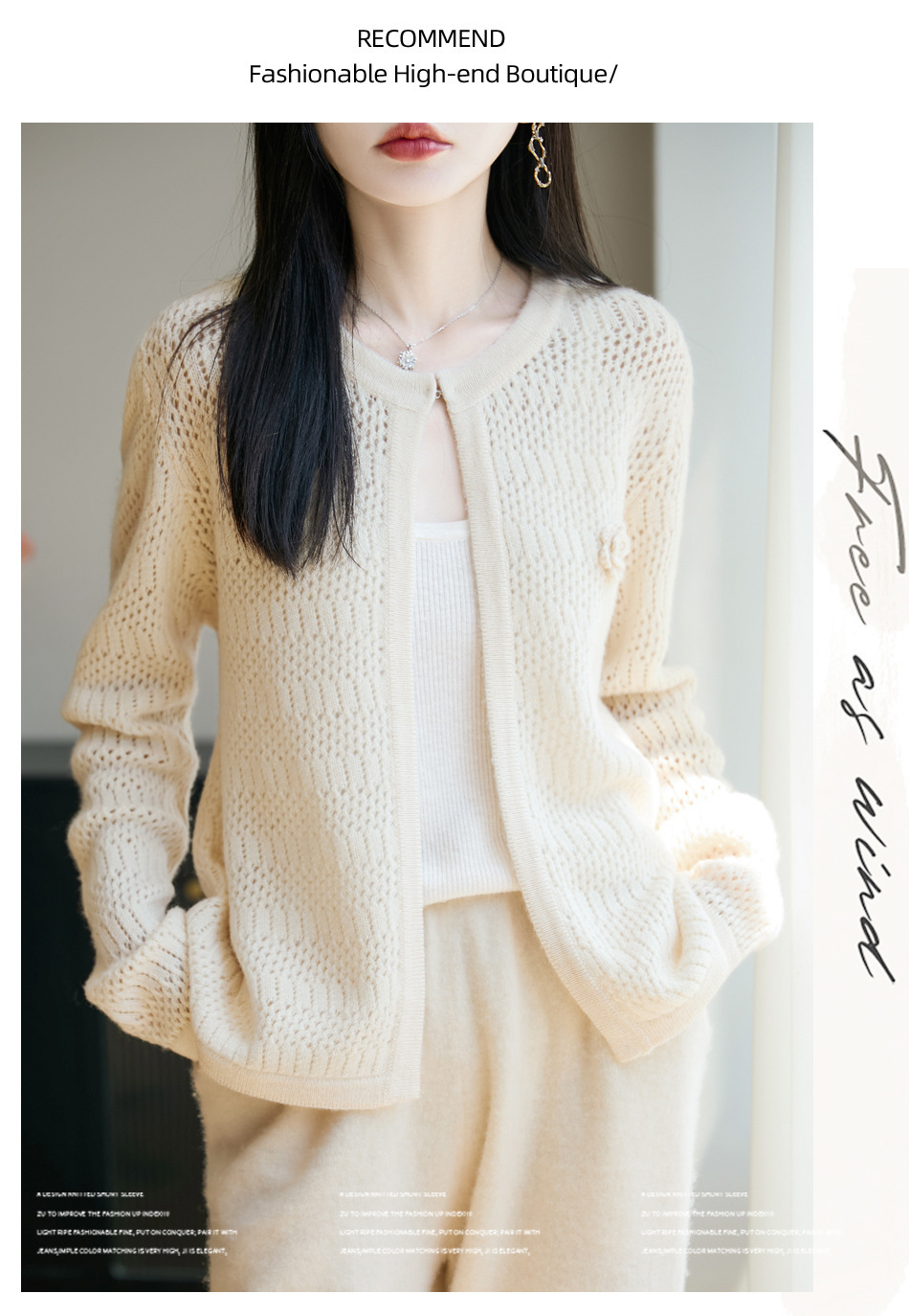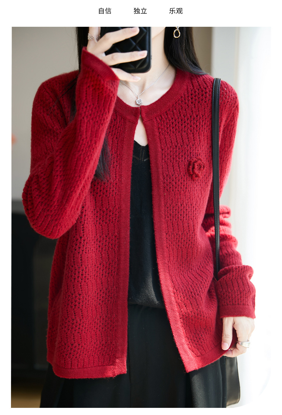 2025年秋季新款100羊毛镂空针织开衫披肩外套女外搭上衣春秋毛衣