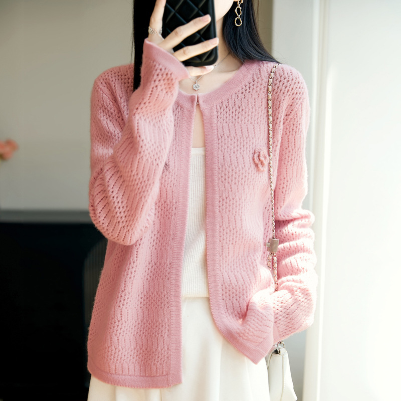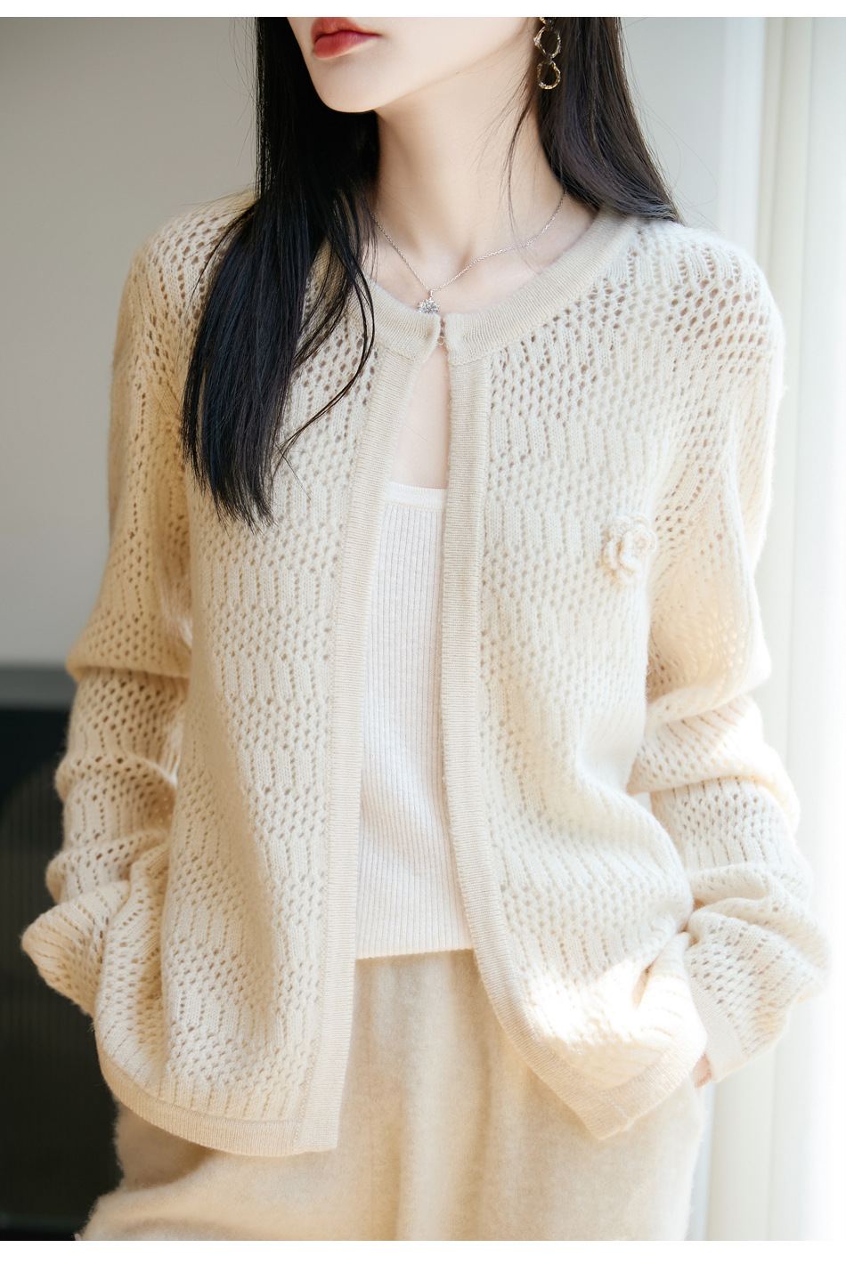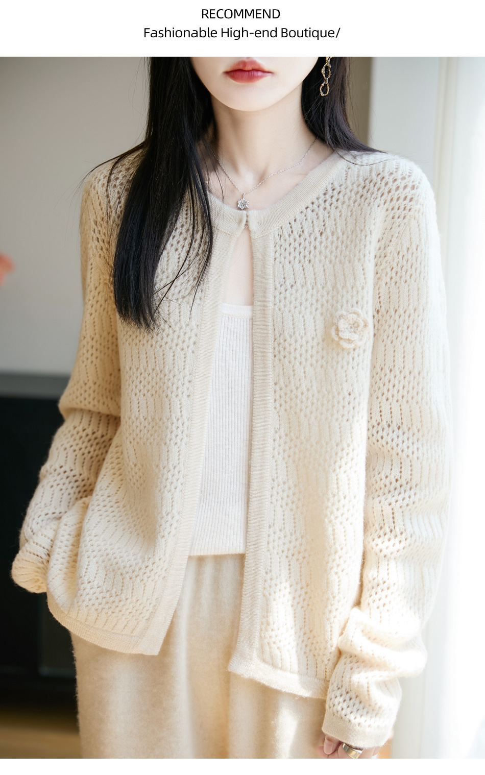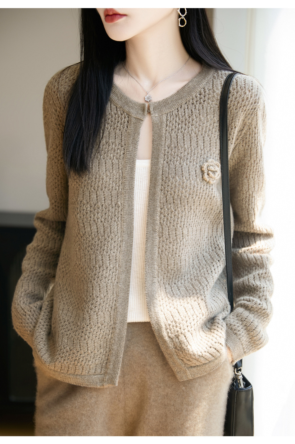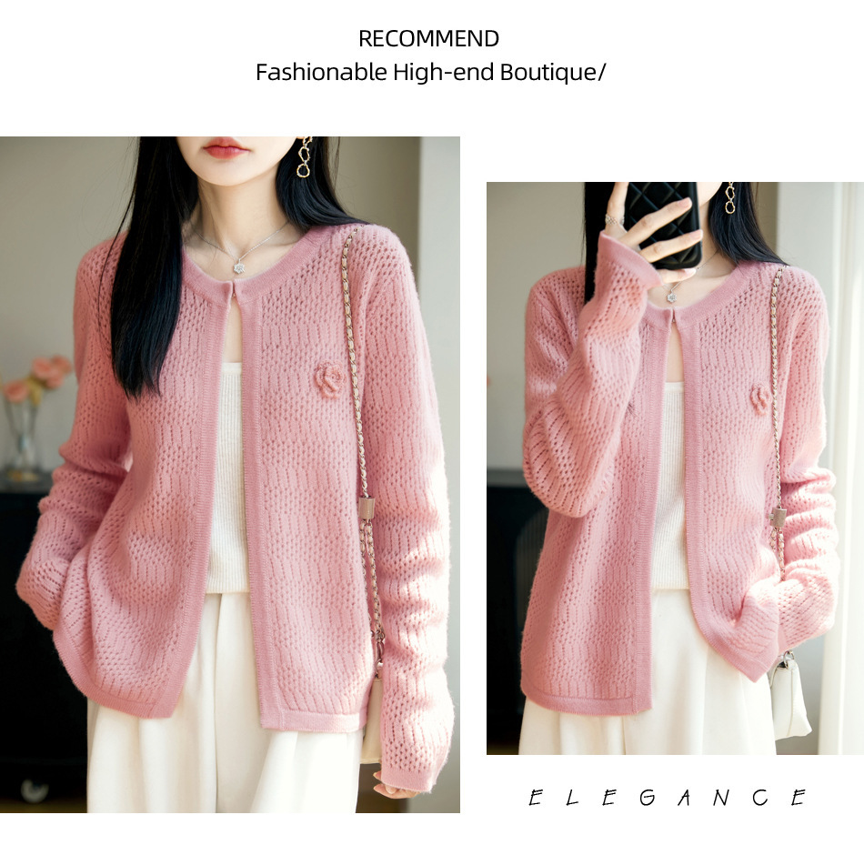 2025年秋季新款100羊毛镂空针织开衫披肩外套女外搭上衣春秋毛衣