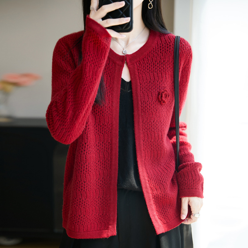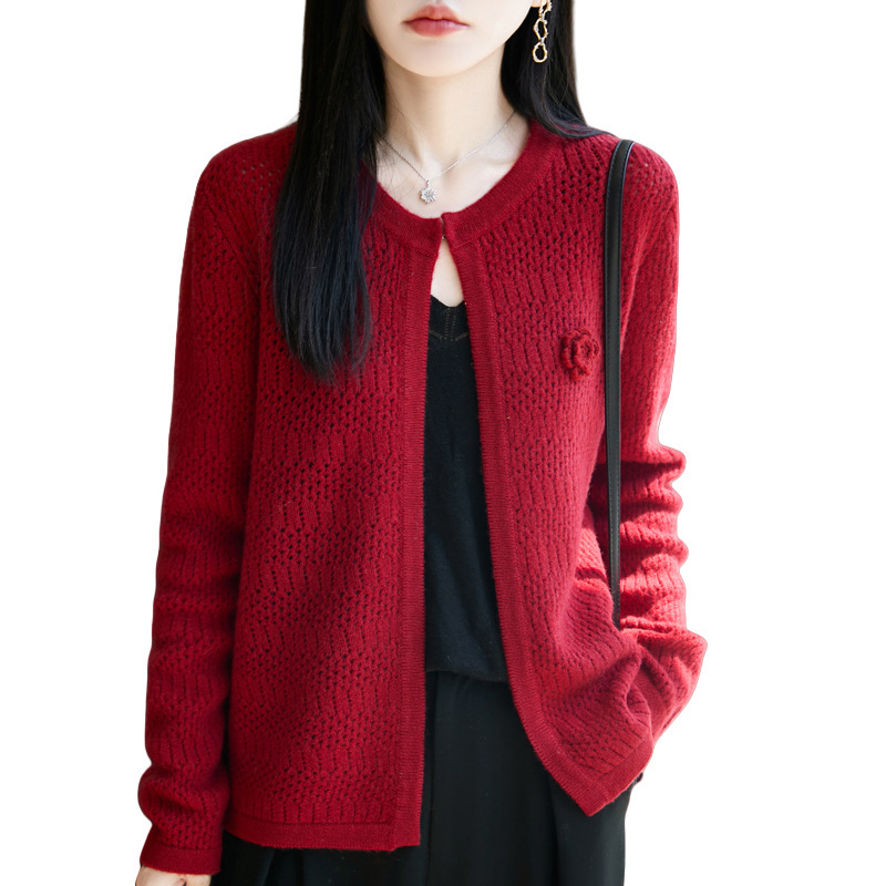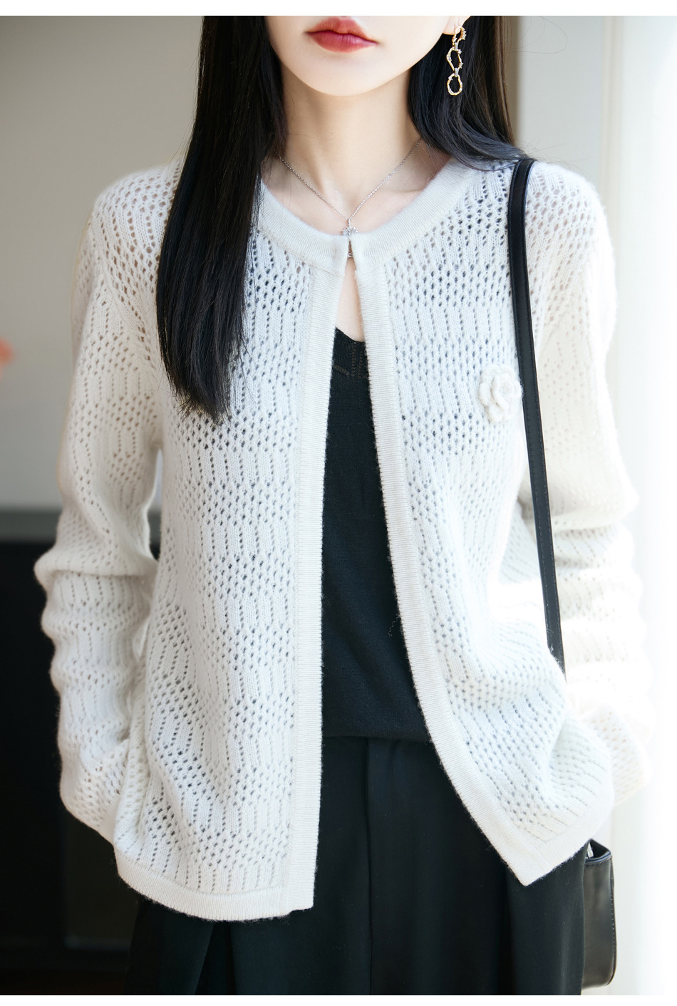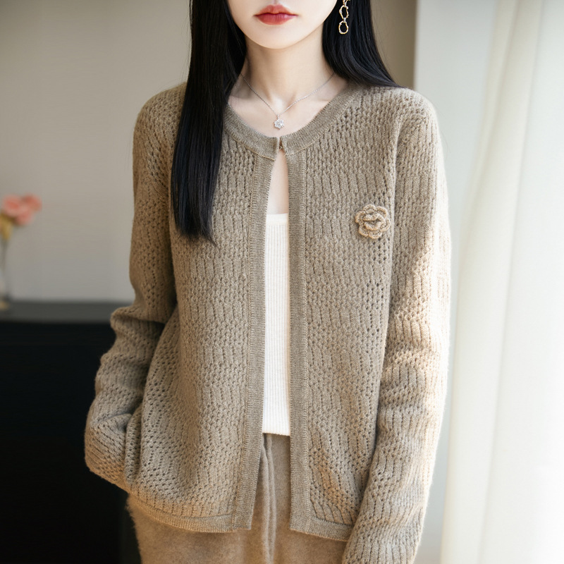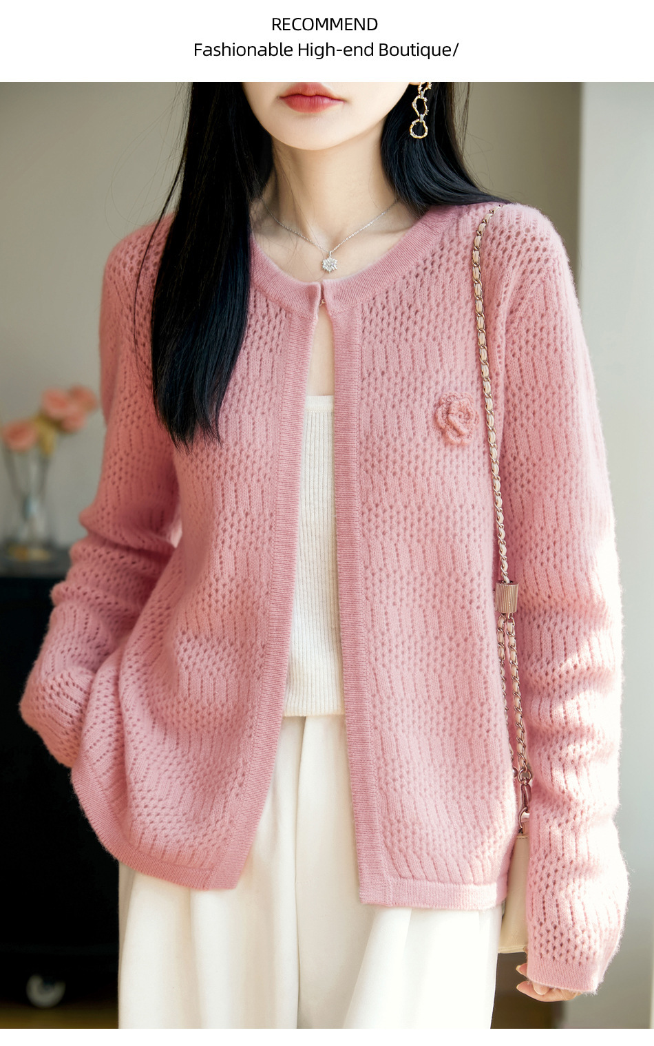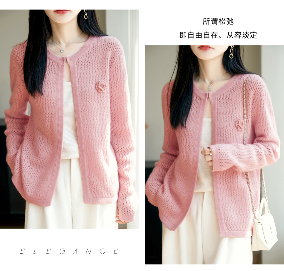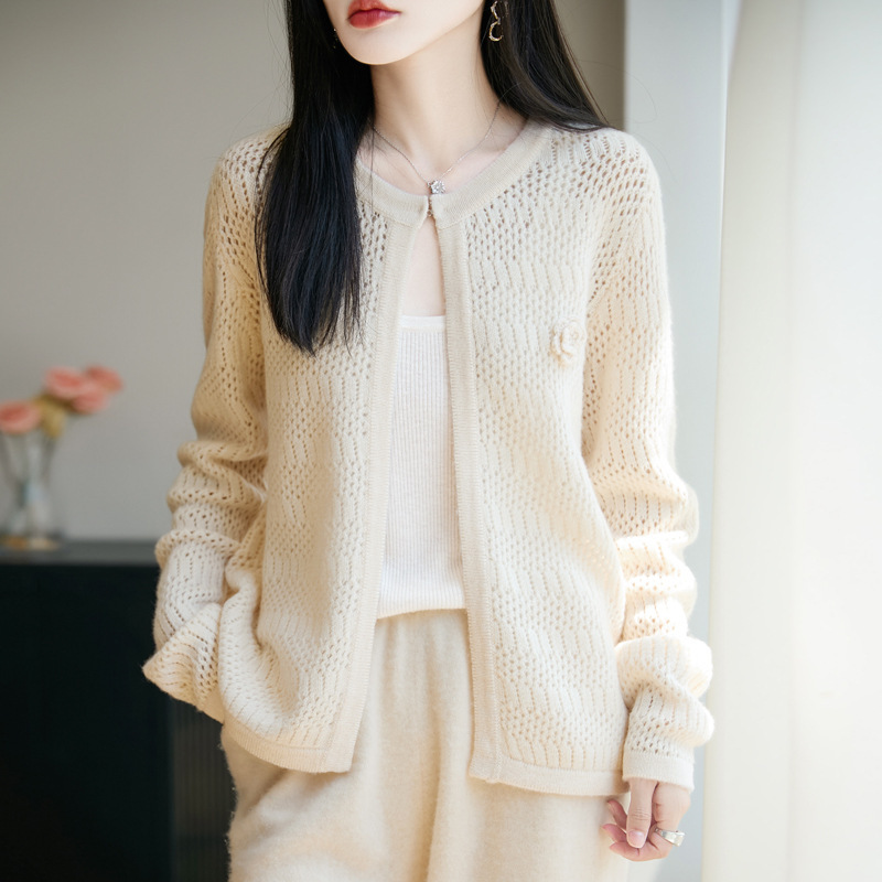 2025年秋季新款100羊毛镂空针织开衫披肩外套女外搭上衣春秋毛衣