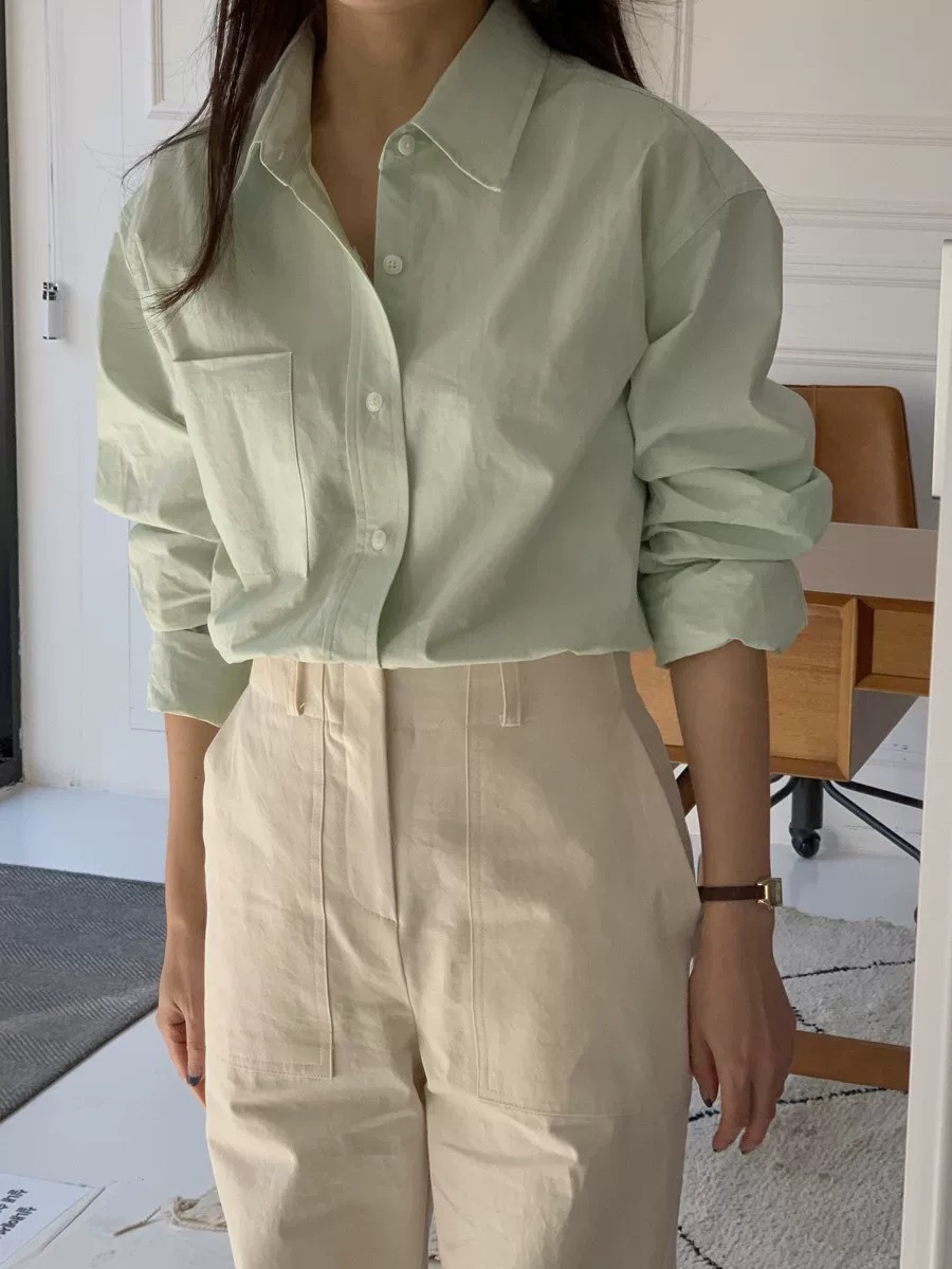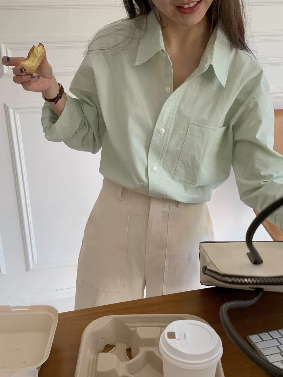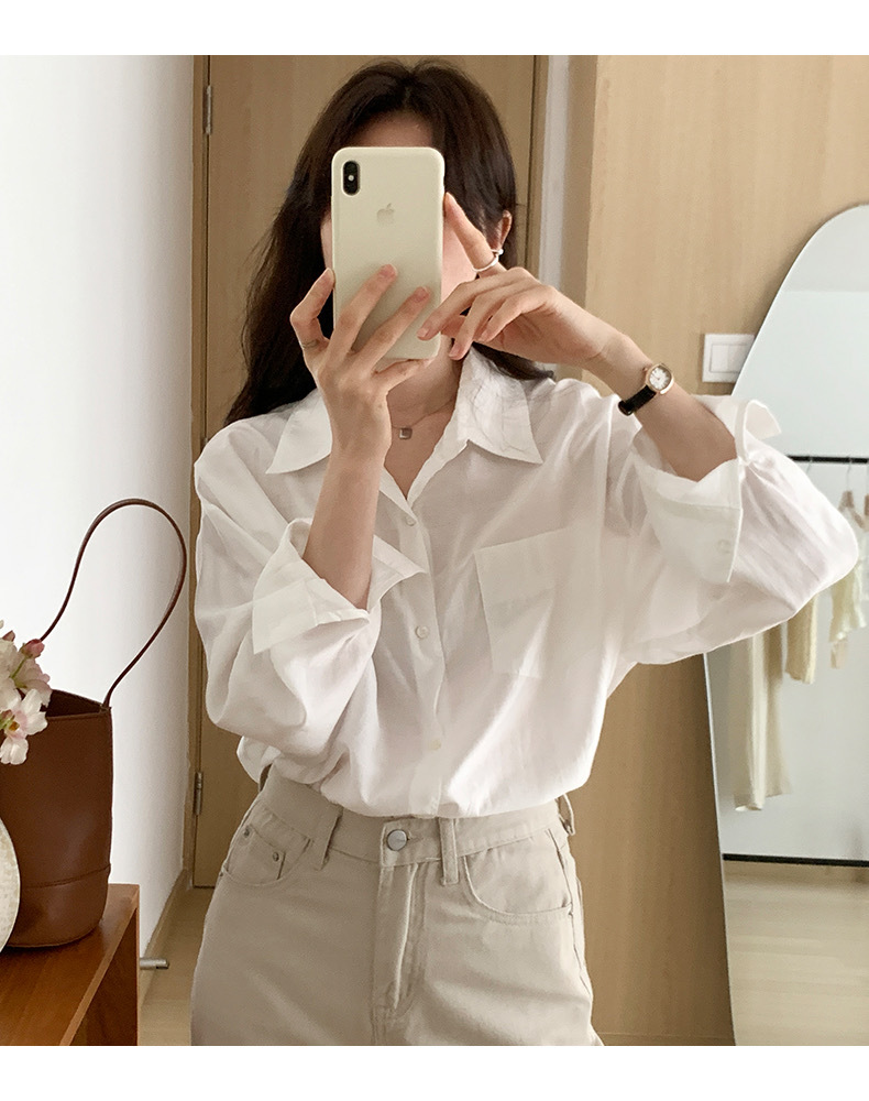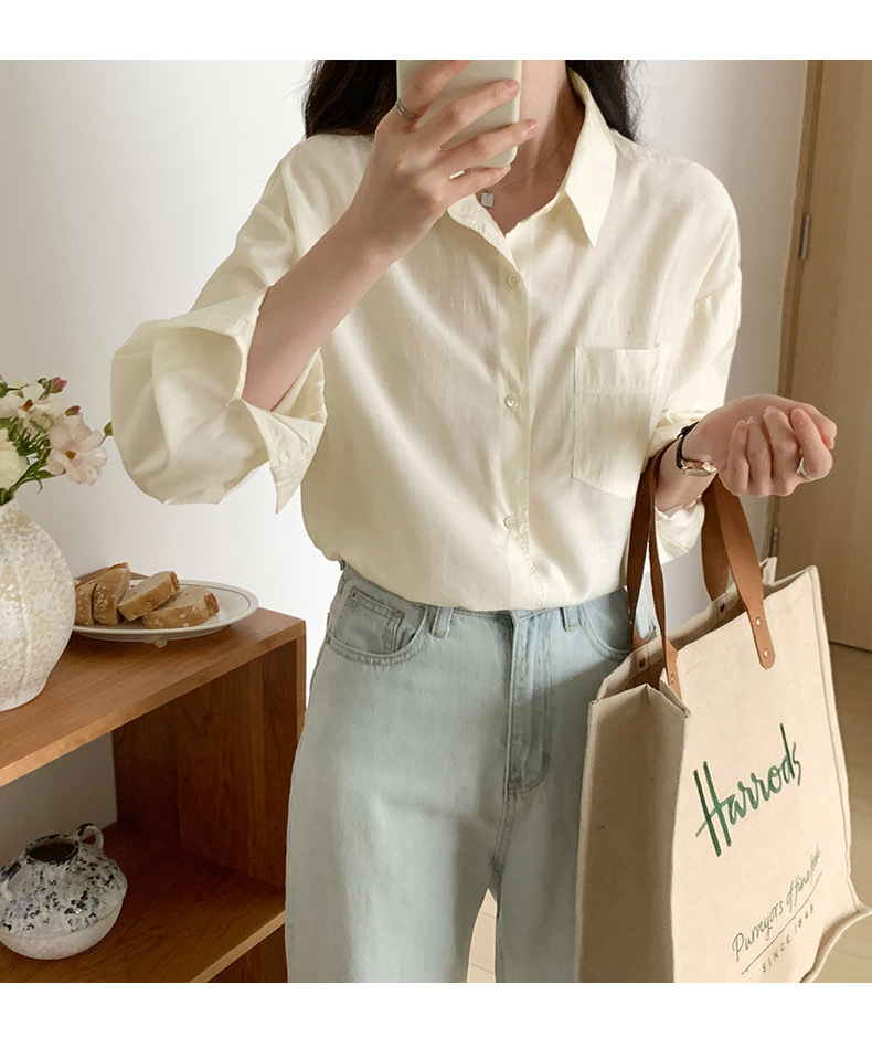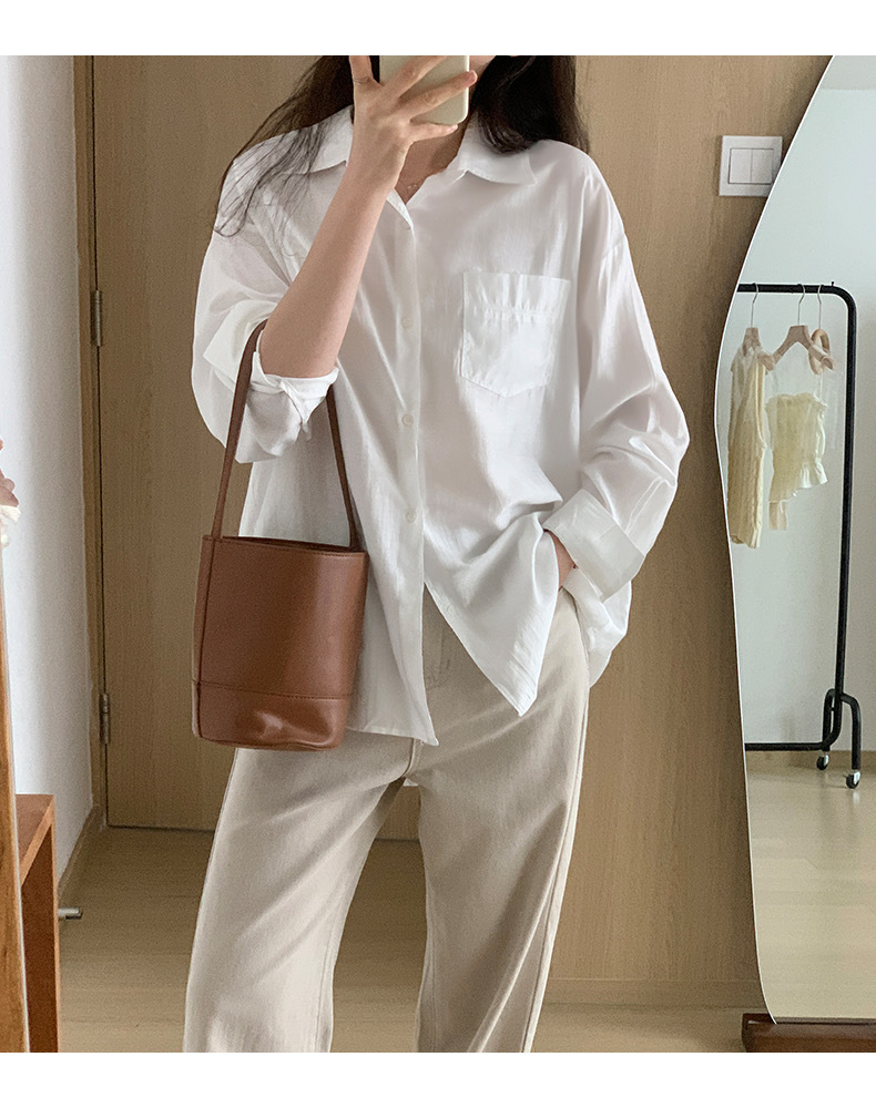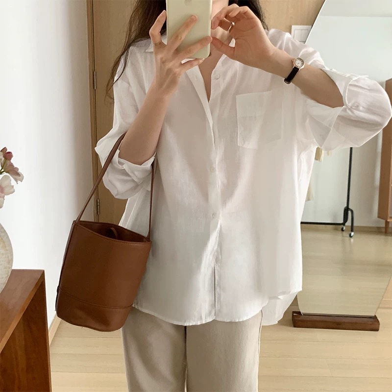 春夏新款韩系百搭长袖防晒衬衫女宽松慵懒风衬衣休闲显瘦外套女