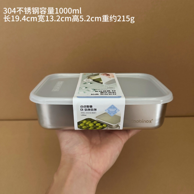 304不锈钢冷冻保鲜盒饭盒密封盒水果冻肉分装盒冰箱收纳备菜盒