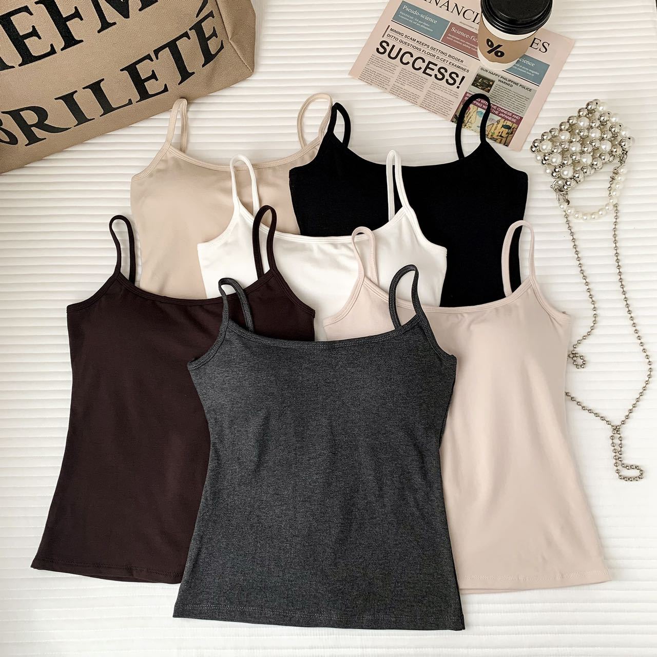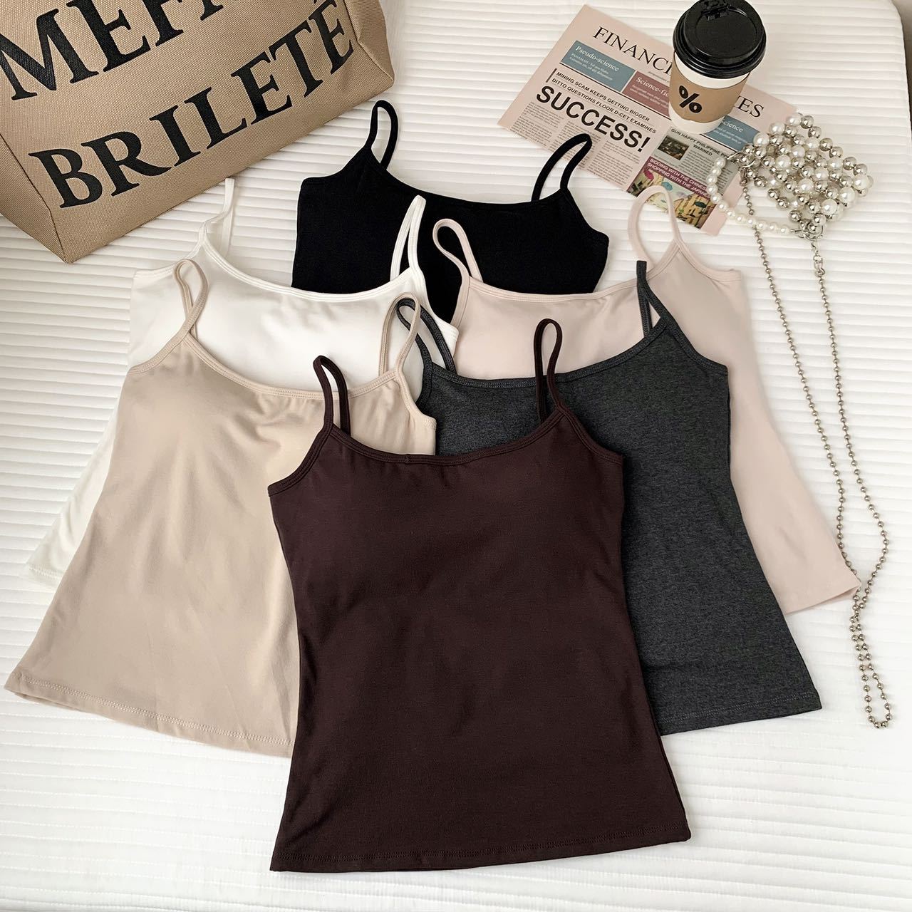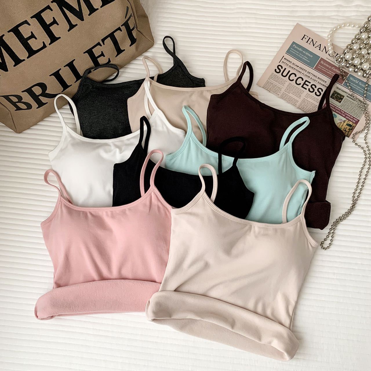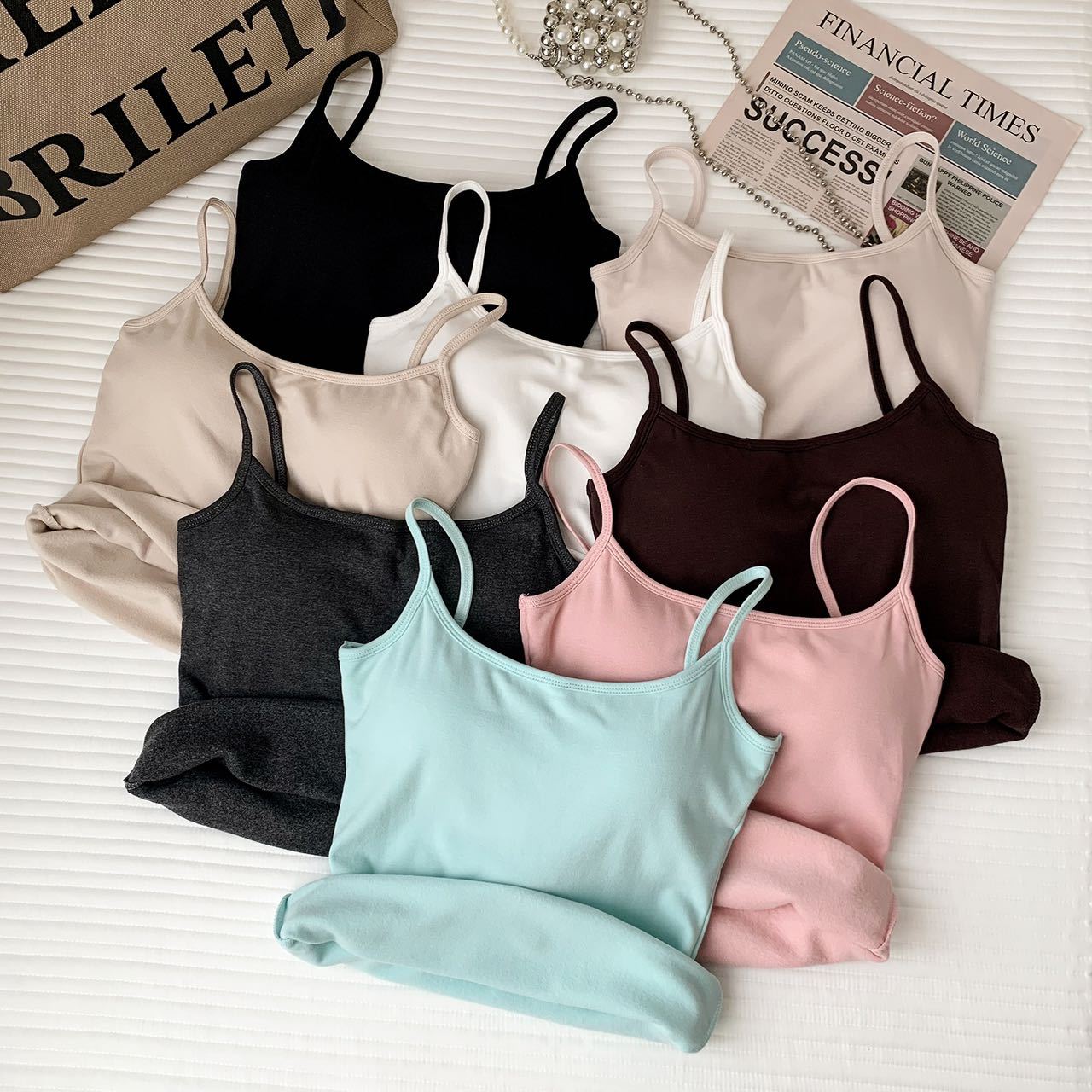 纯欲带胸垫小吊带磨毛背心女秋季修身紧身长款内搭棕色打底衫上衣