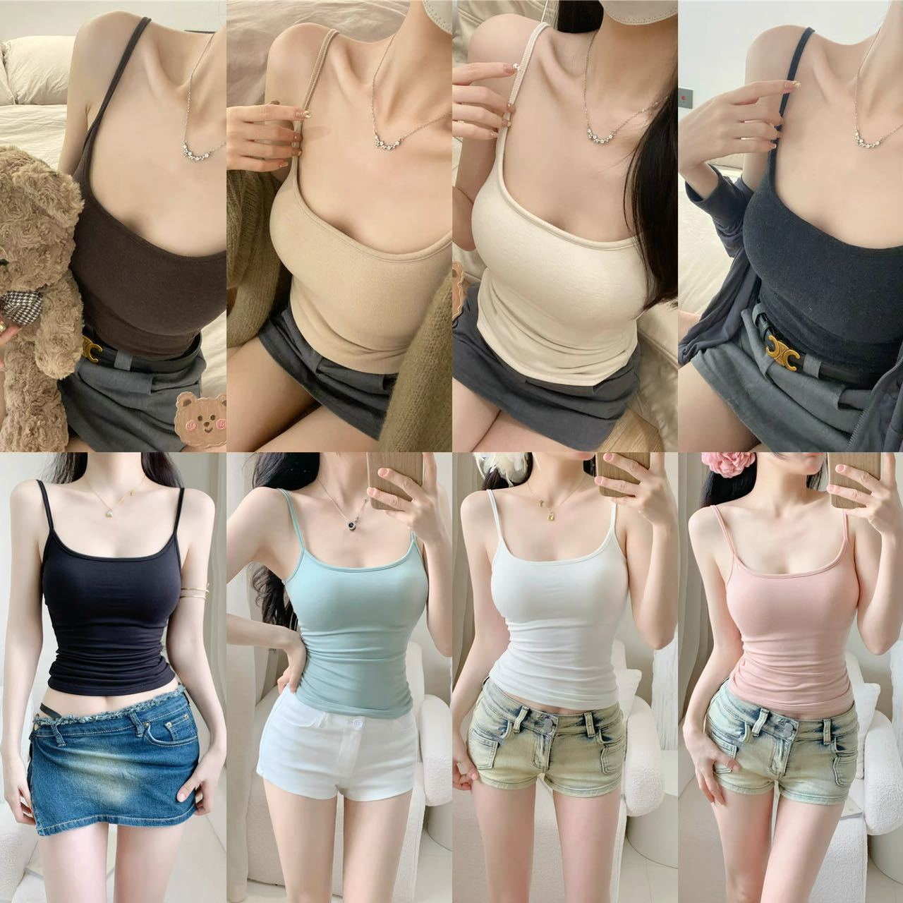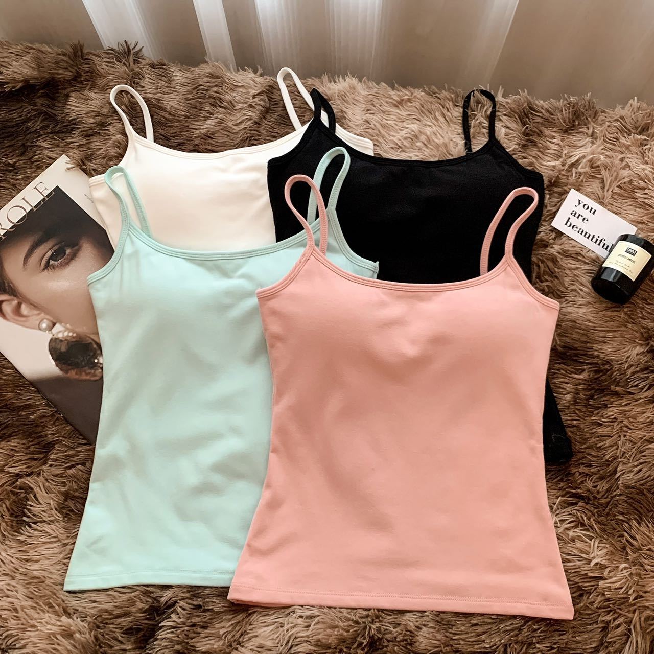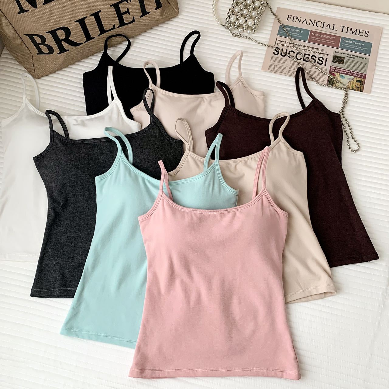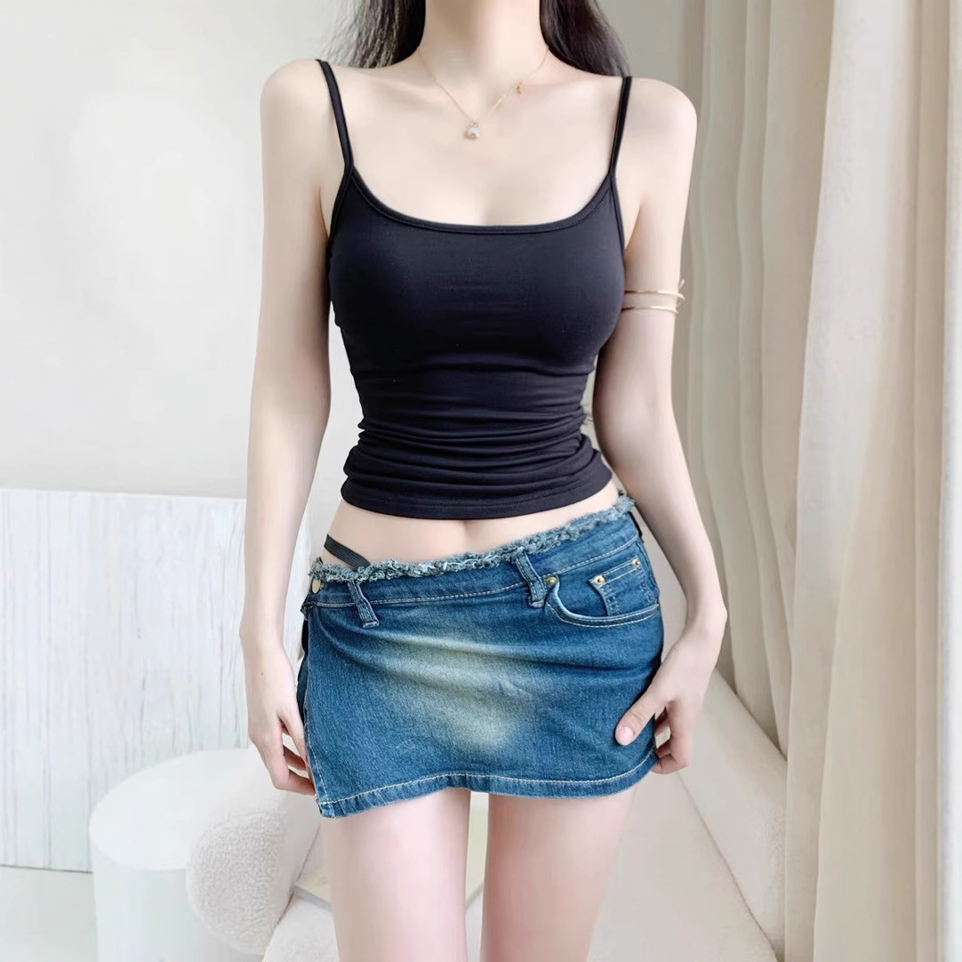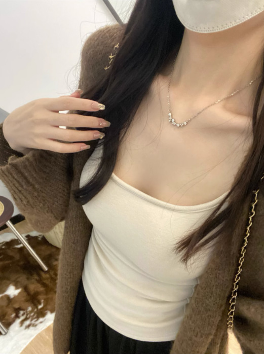纯欲带胸垫小吊带磨毛背心女秋季修身紧身长款内搭棕色打底衫上衣