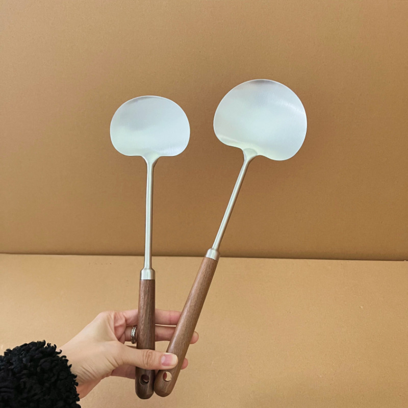 304不锈钢胡桃木蘑菇铲不粘锅专用铁铲炒勺家用迷你炒菜铲子小号