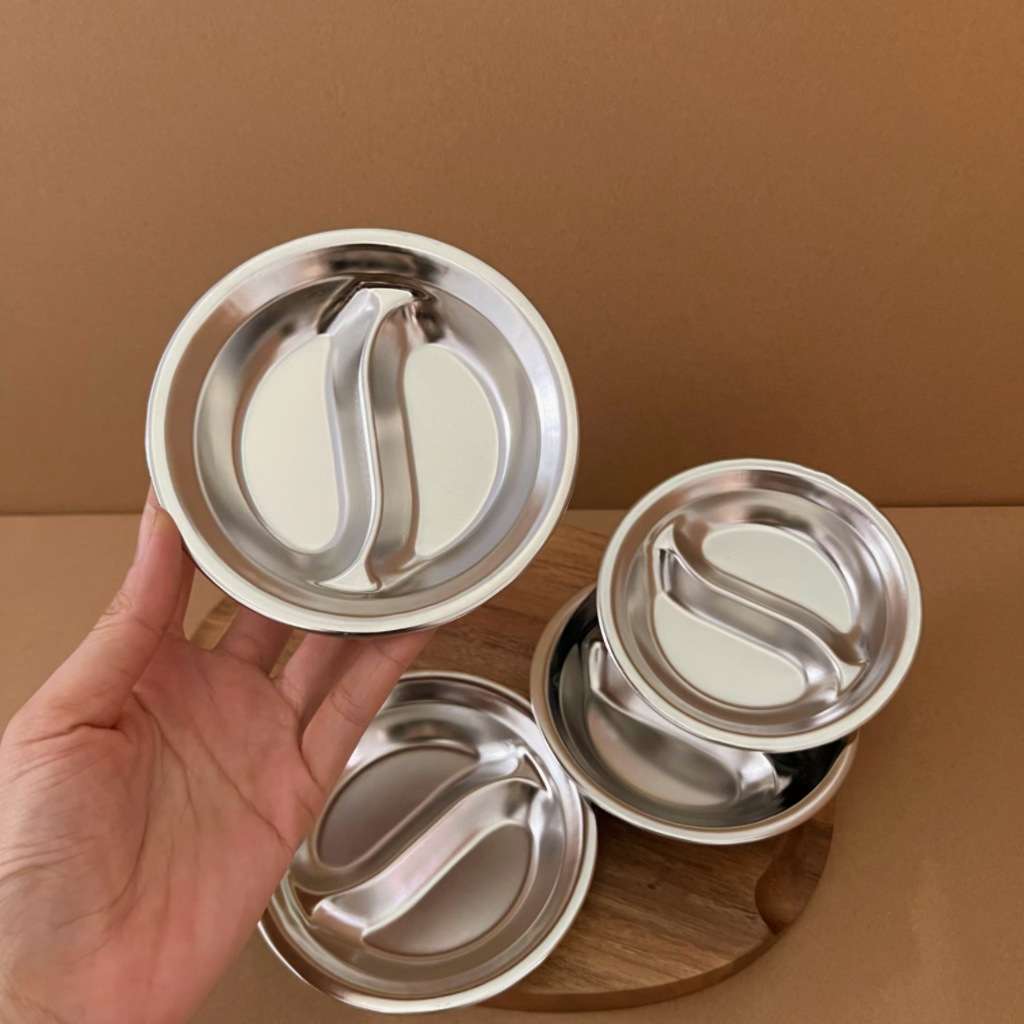 304不锈钢酱料碟韩式商用双格小菜碟番茄酱黑椒芥末调味碟蘸料碟