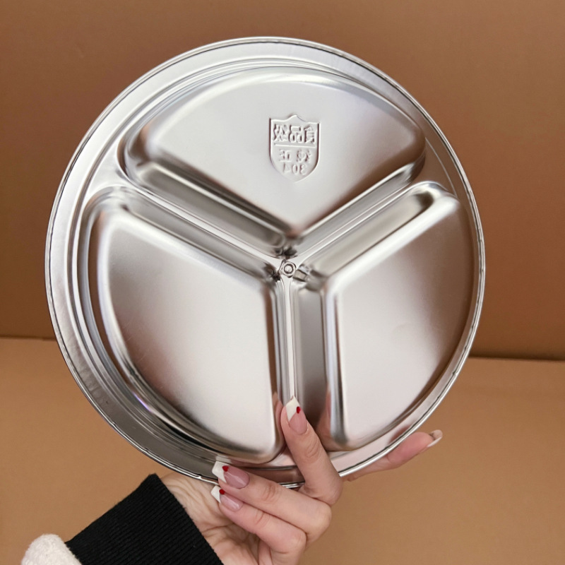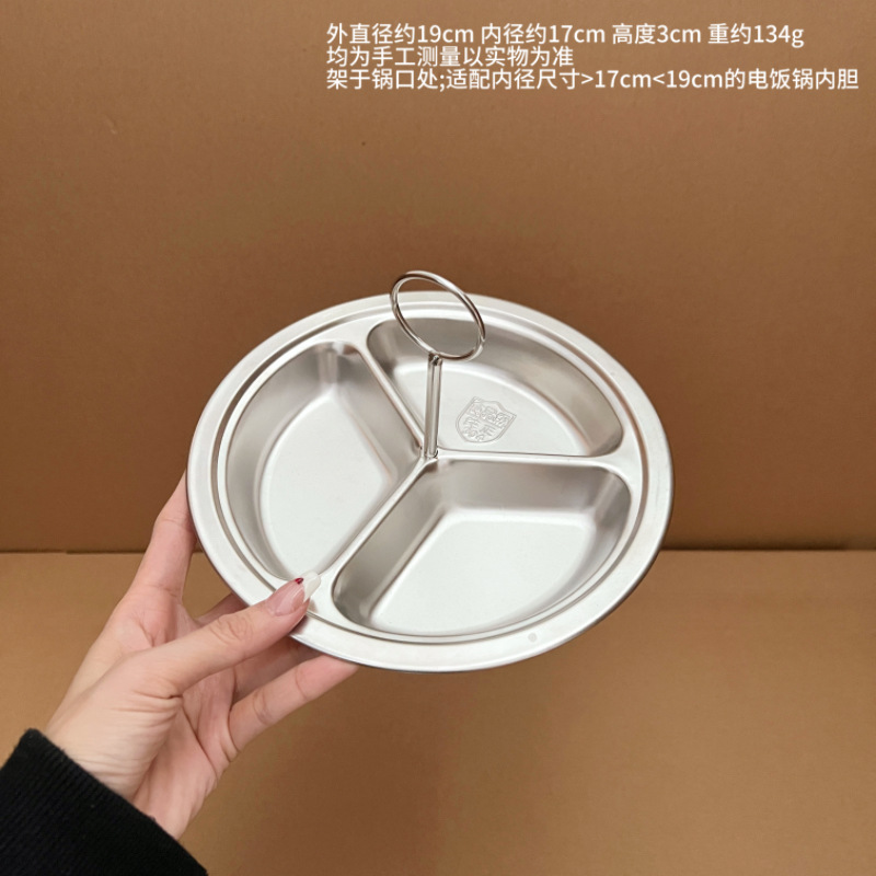 304不锈钢蒸屉带提手三格蒸盘家用分格电饭煲内蒸笼篦子分隔蒸碗