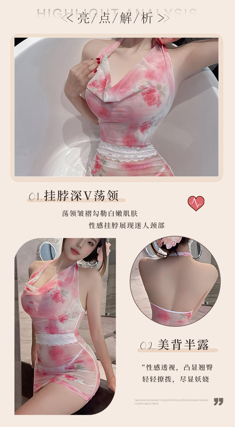 樊蕾qqny性感露胸荡领连衣裙调情性趣透视包臀裙诱惑情趣内衣1009