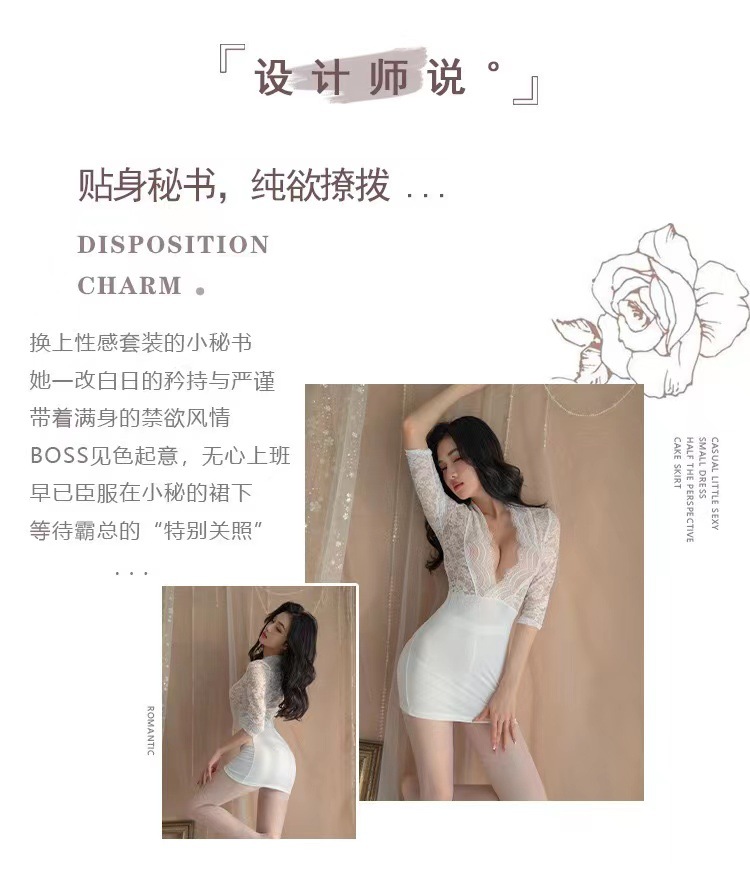 情趣内衣女秘书套装蕾丝性感包臀裙透明勾人大码开裆免脱诱惑制服