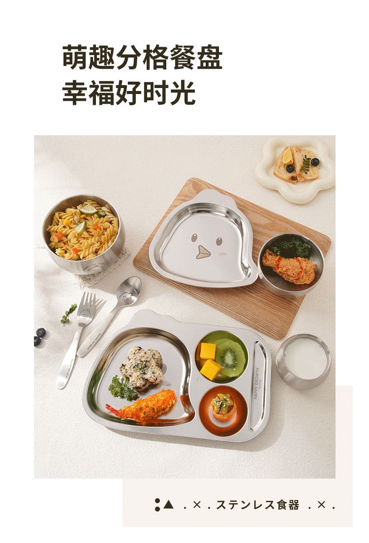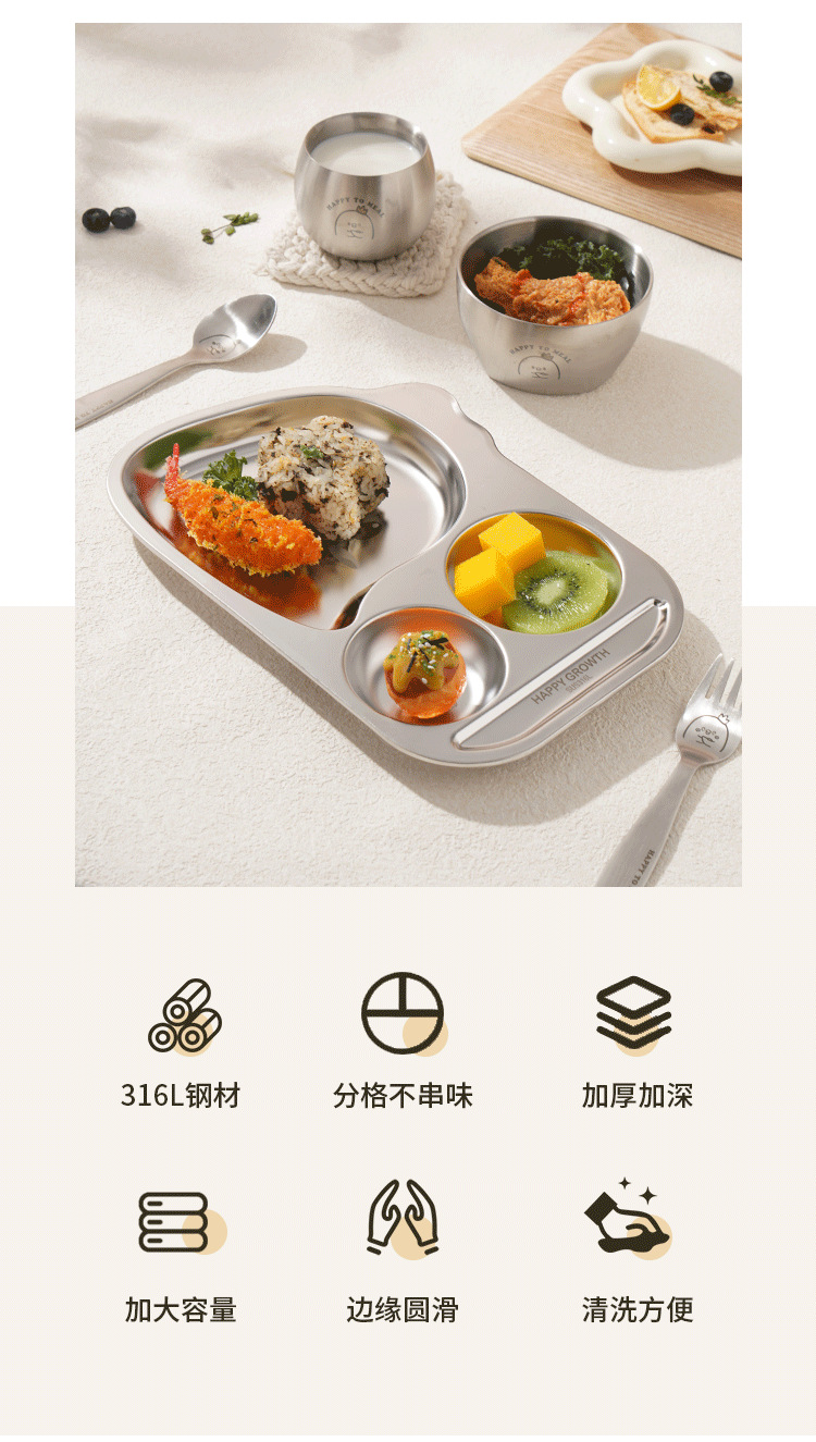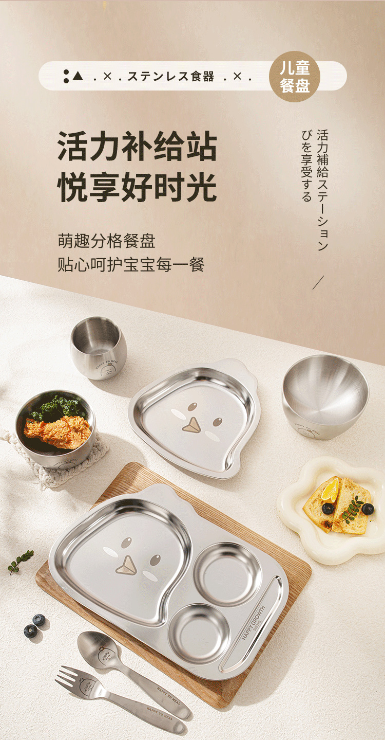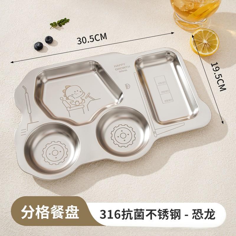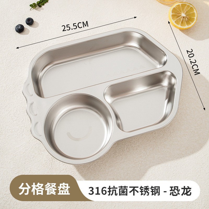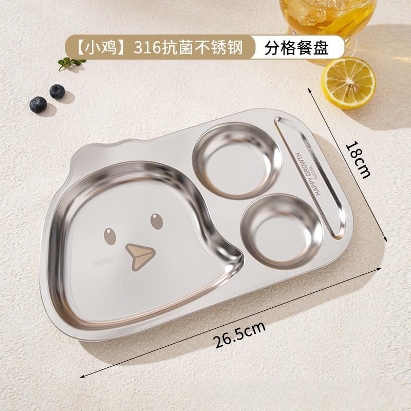 小吃盘餐盘316不锈钢儿童可爱卡通餐具家用骨碟零食创意方形餐盘
