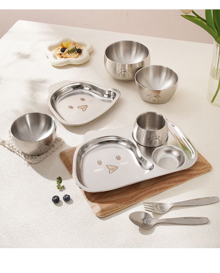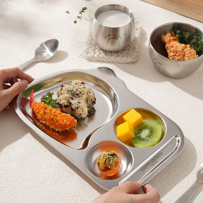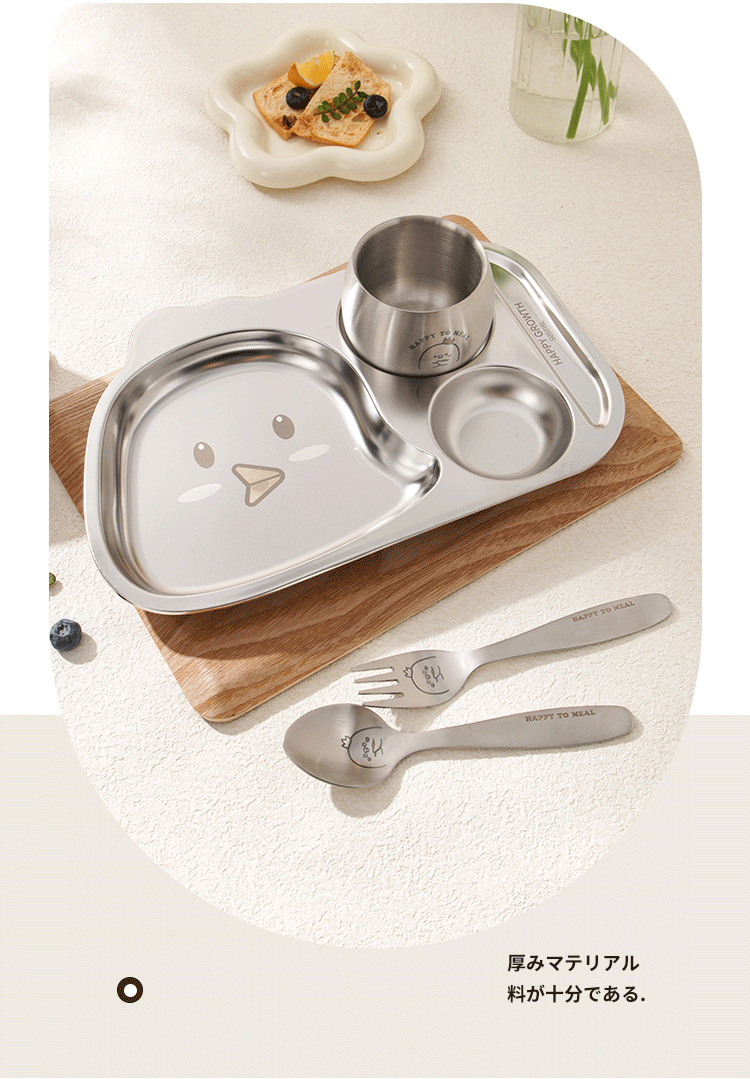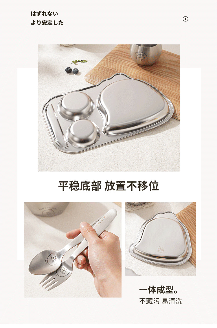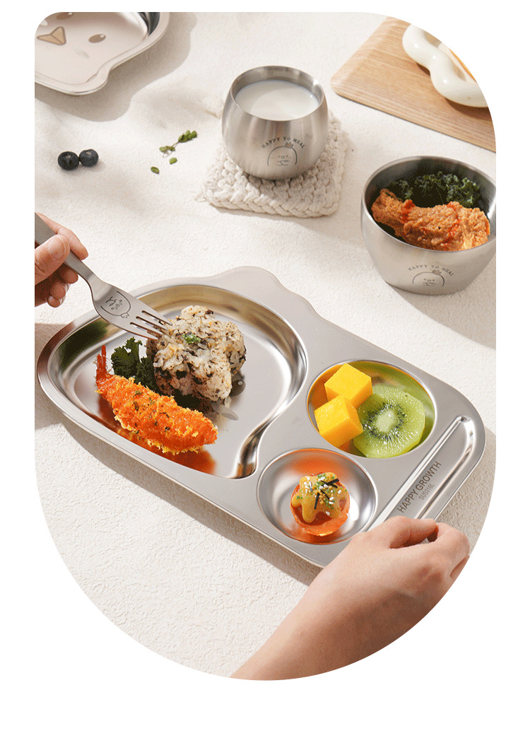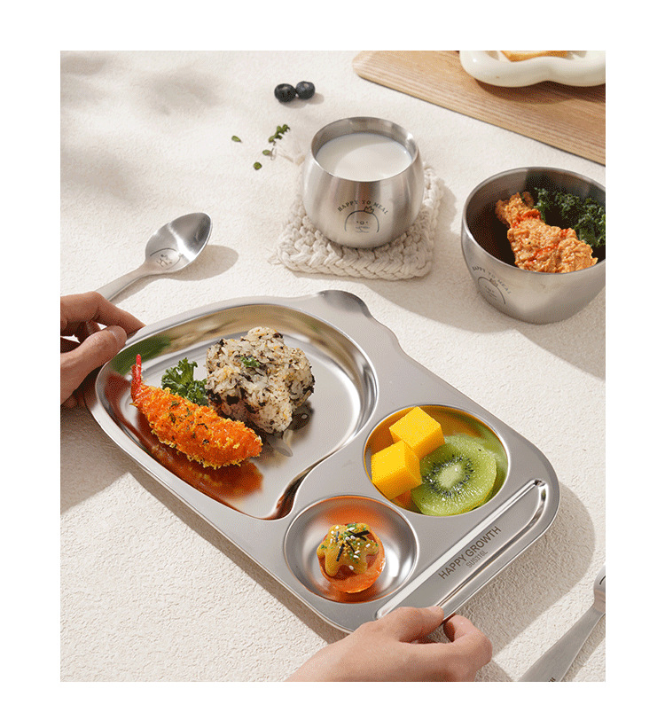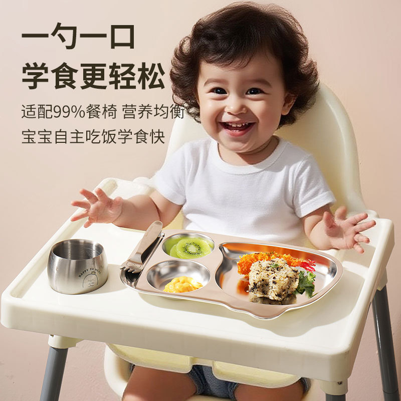 小吃盘餐盘316不锈钢儿童可爱卡通餐具家用骨碟零食创意方形餐盘
