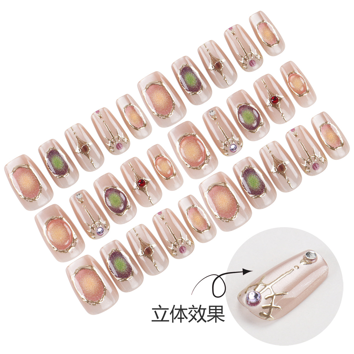 精品穿戴甲高级感裸色渐变猫眼短款指甲贴片光疗显白复古预制甲片