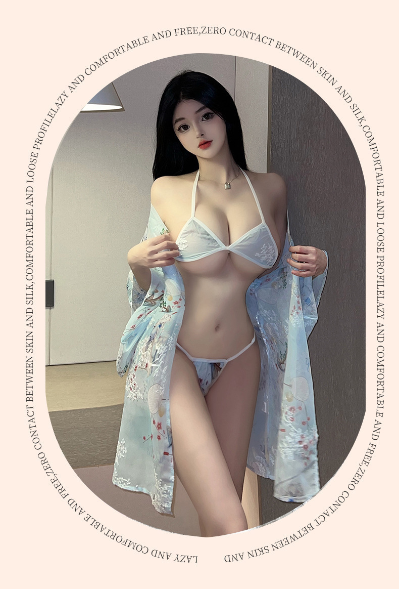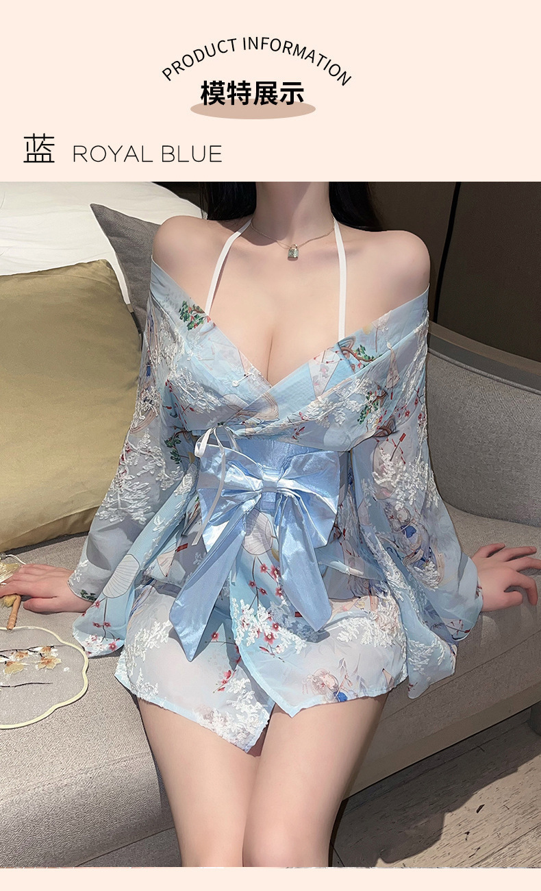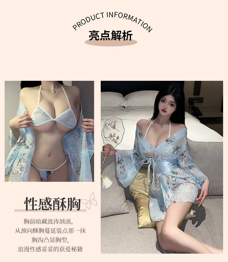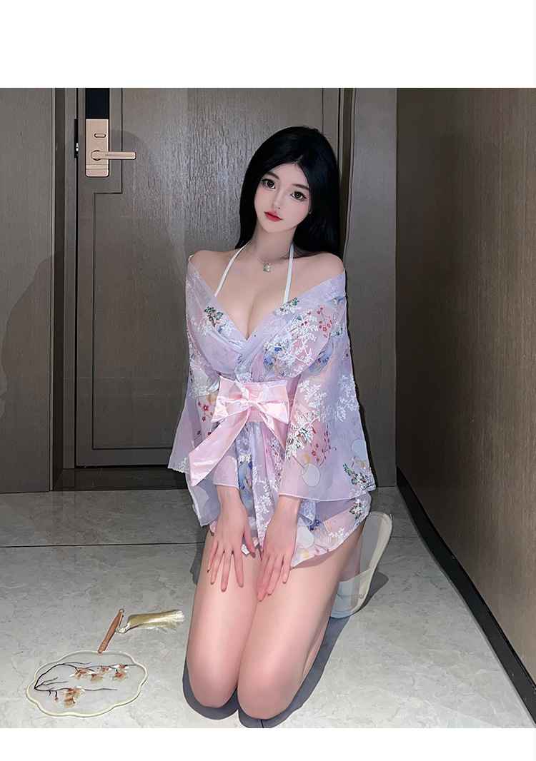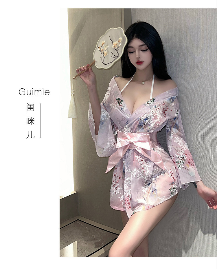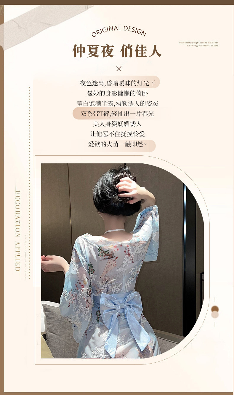 大码新款情趣内衣印花日系蝴蝶结和服浴袍制服诱惑性感新日式睡衣