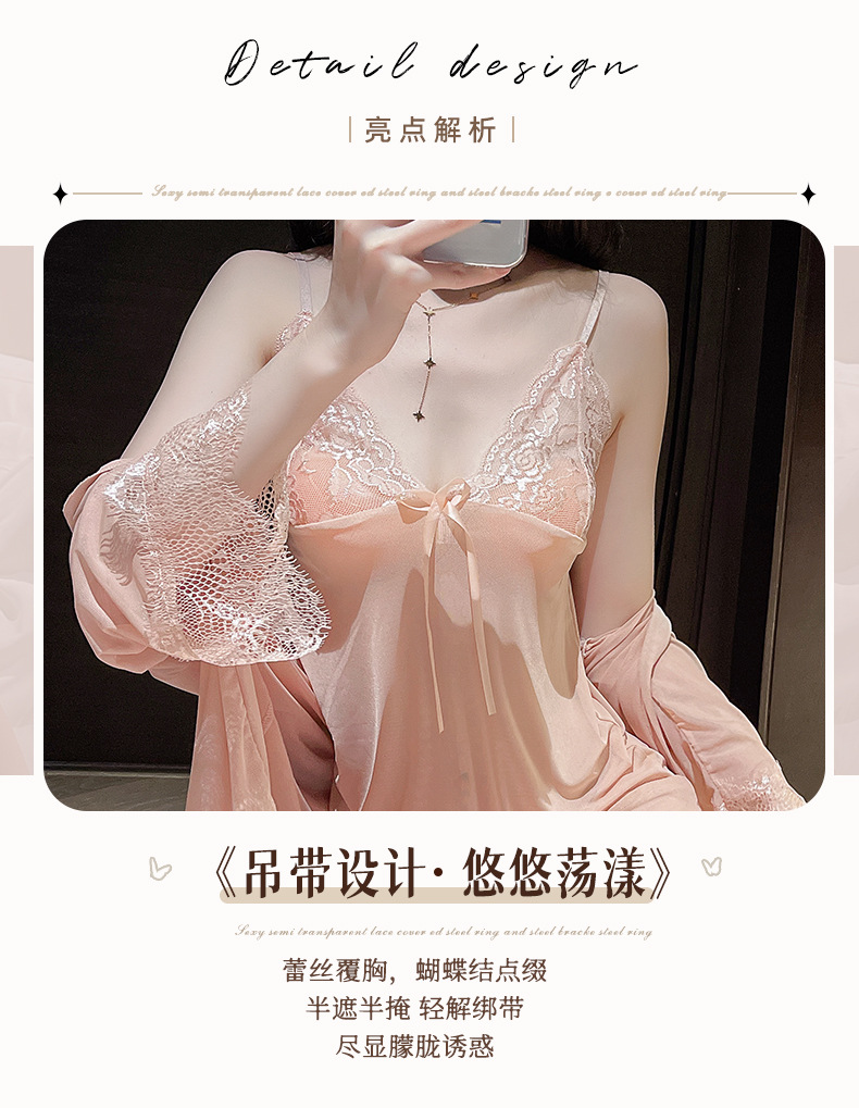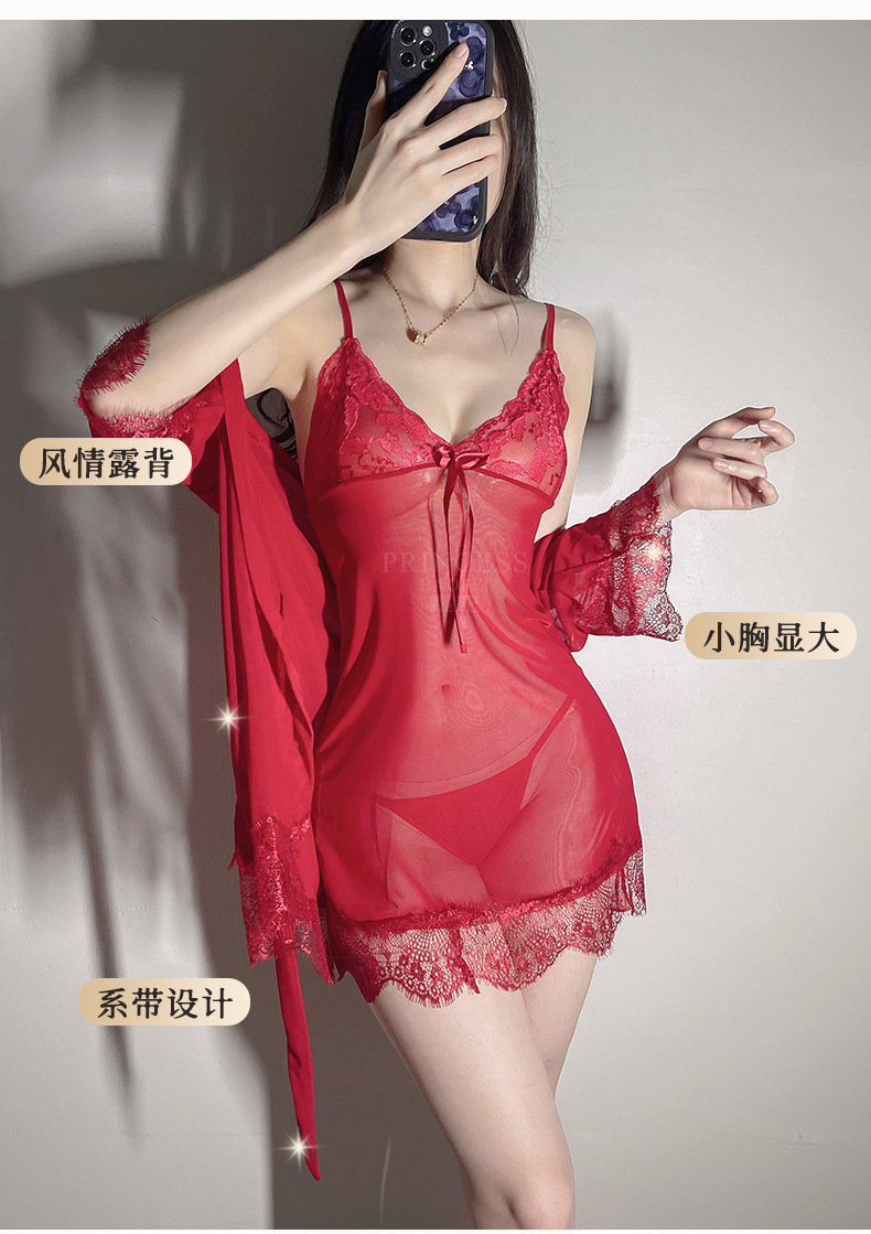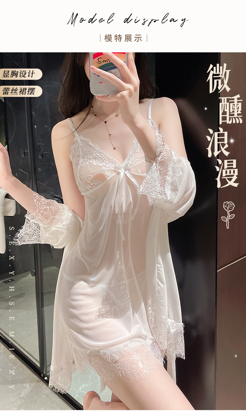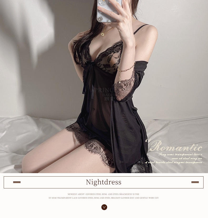 暴妃情趣内衣性感透明网纱睡衣纯欲蕾丝吊带睡裙外袍家居服套装女
