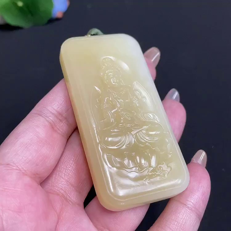 和田玉挂件 观音 货品总重约[含绳]75.5g尺寸72:35:11mm工艺品