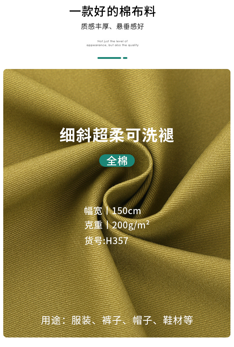 全棉斜纹超柔面料 200g洗褪洗水棉布料 休闲衬衫时装工装裤面料