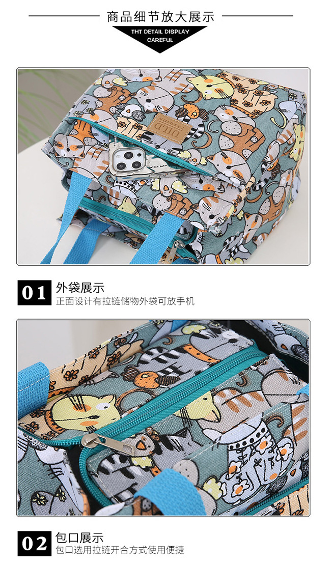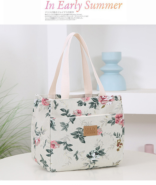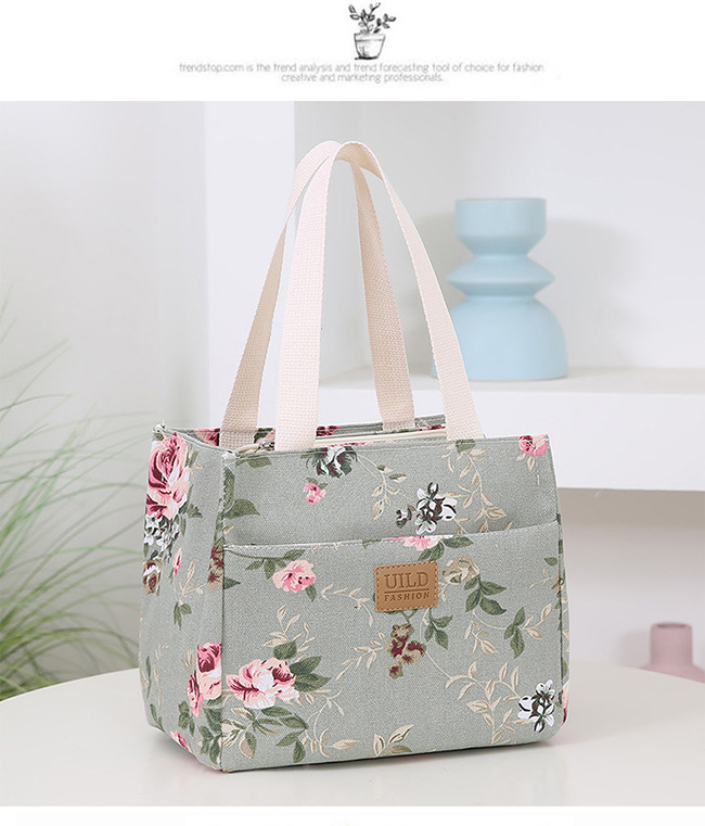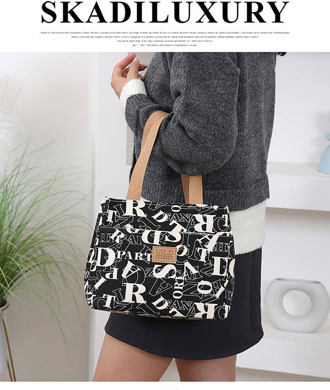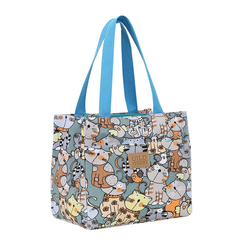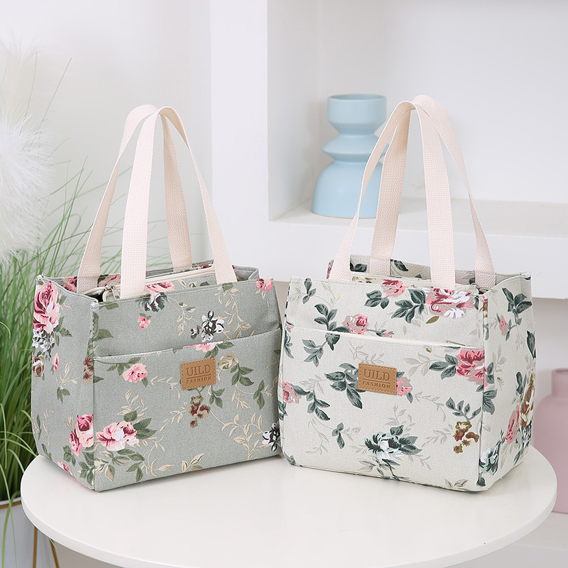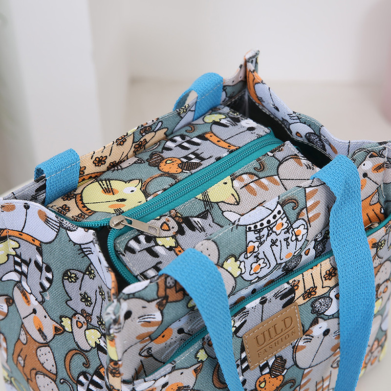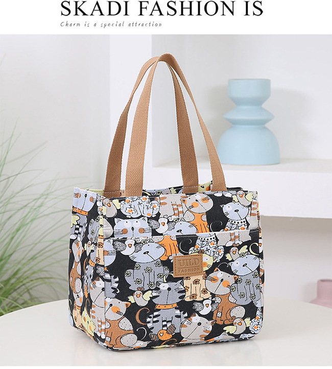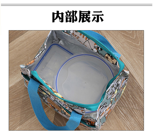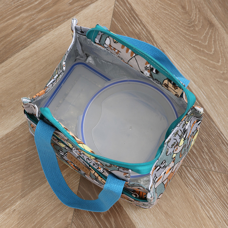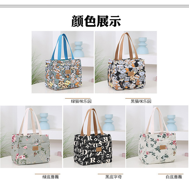 新款时尚女士手提印花帆布包加厚大容量铝箔便当保温手提袋批发