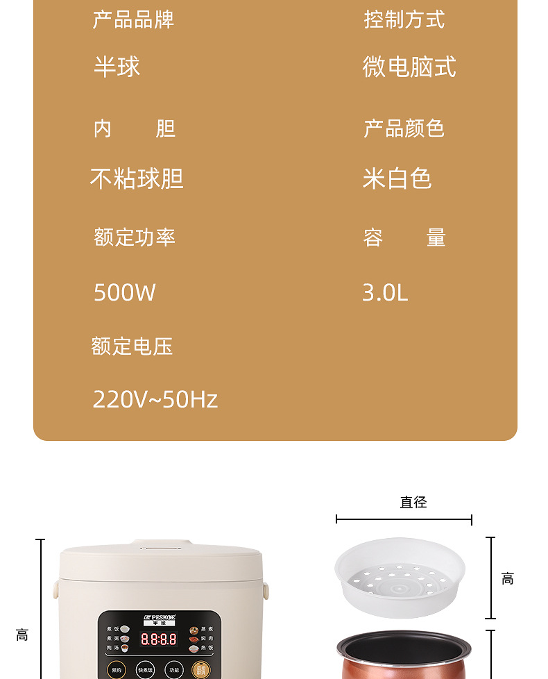 正半球迷你智能电饭煲2-3人用多功能预约家用电饭锅方形跨境批发