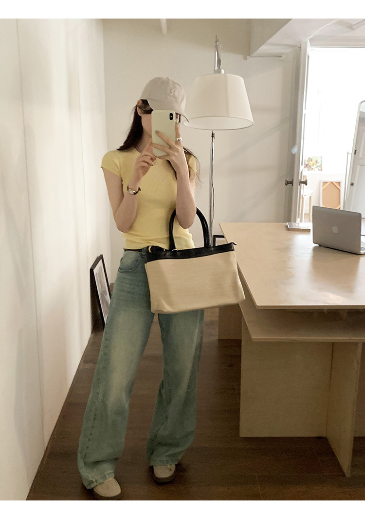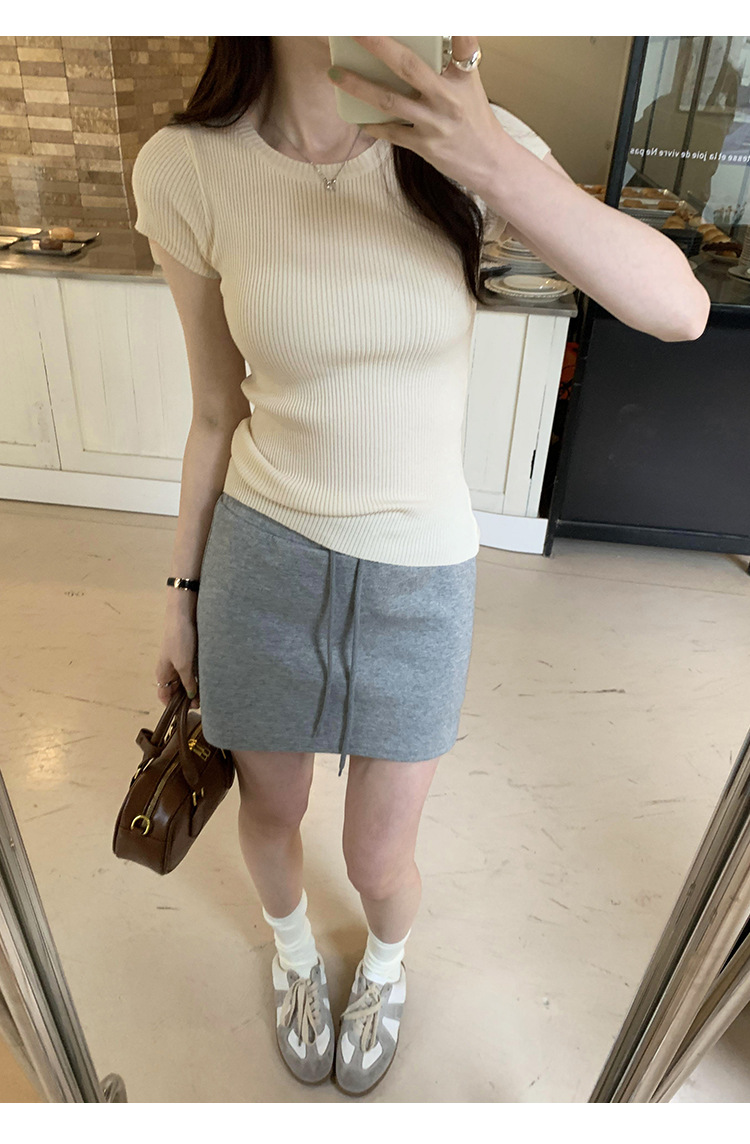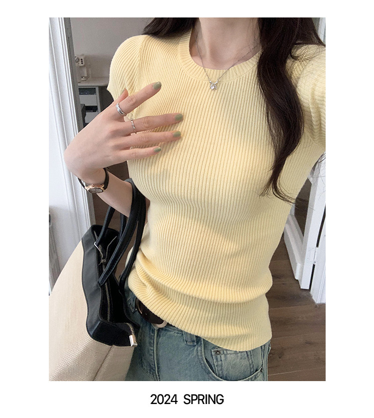 休闲百搭圆领纯色修身弹性针织衫短袖T恤女春夏2025新款显瘦上衣