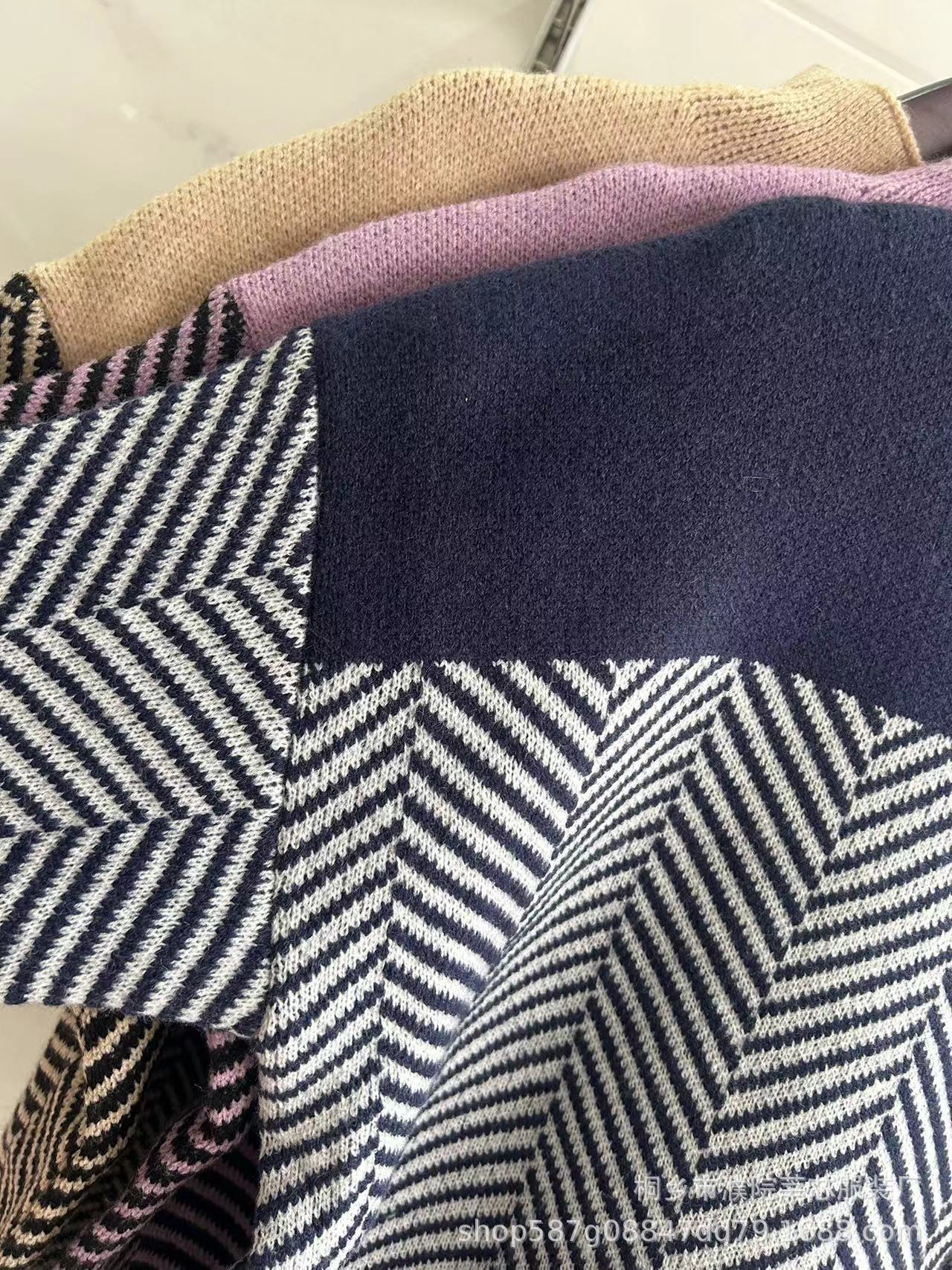 复古拼色半高领针织衫2025秋冬新款宽松慵懒风设计感内搭套头毛衣